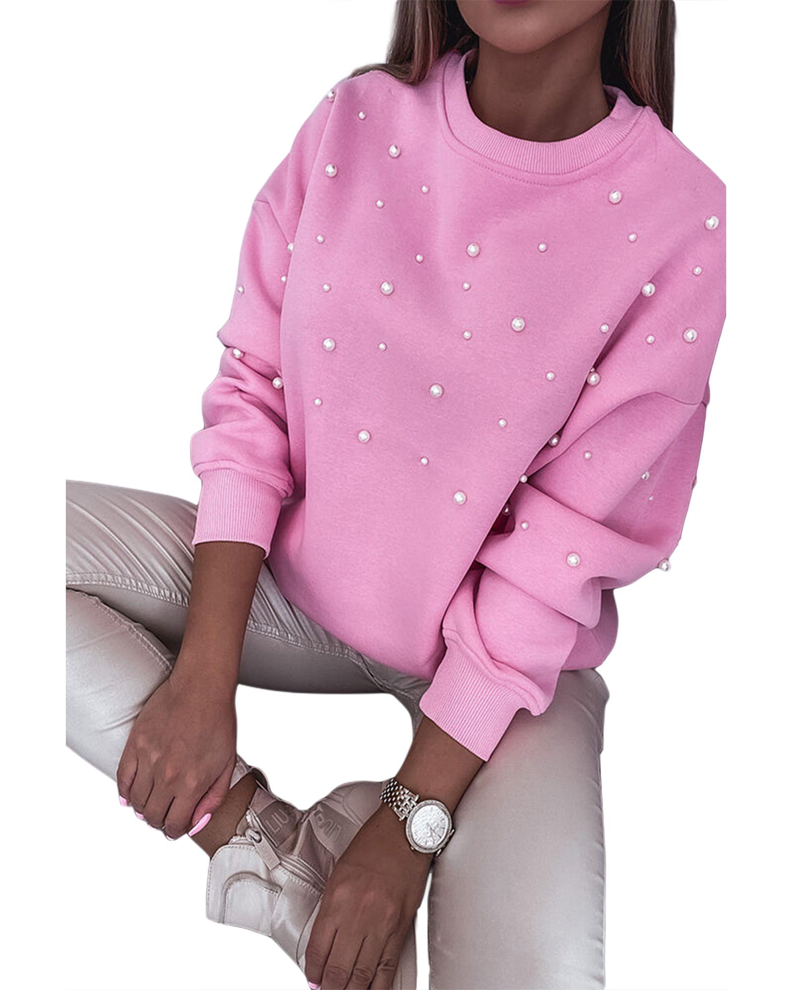 Bonbon Pearl Detail Ribbed Crew Neck Sweatshirt – L