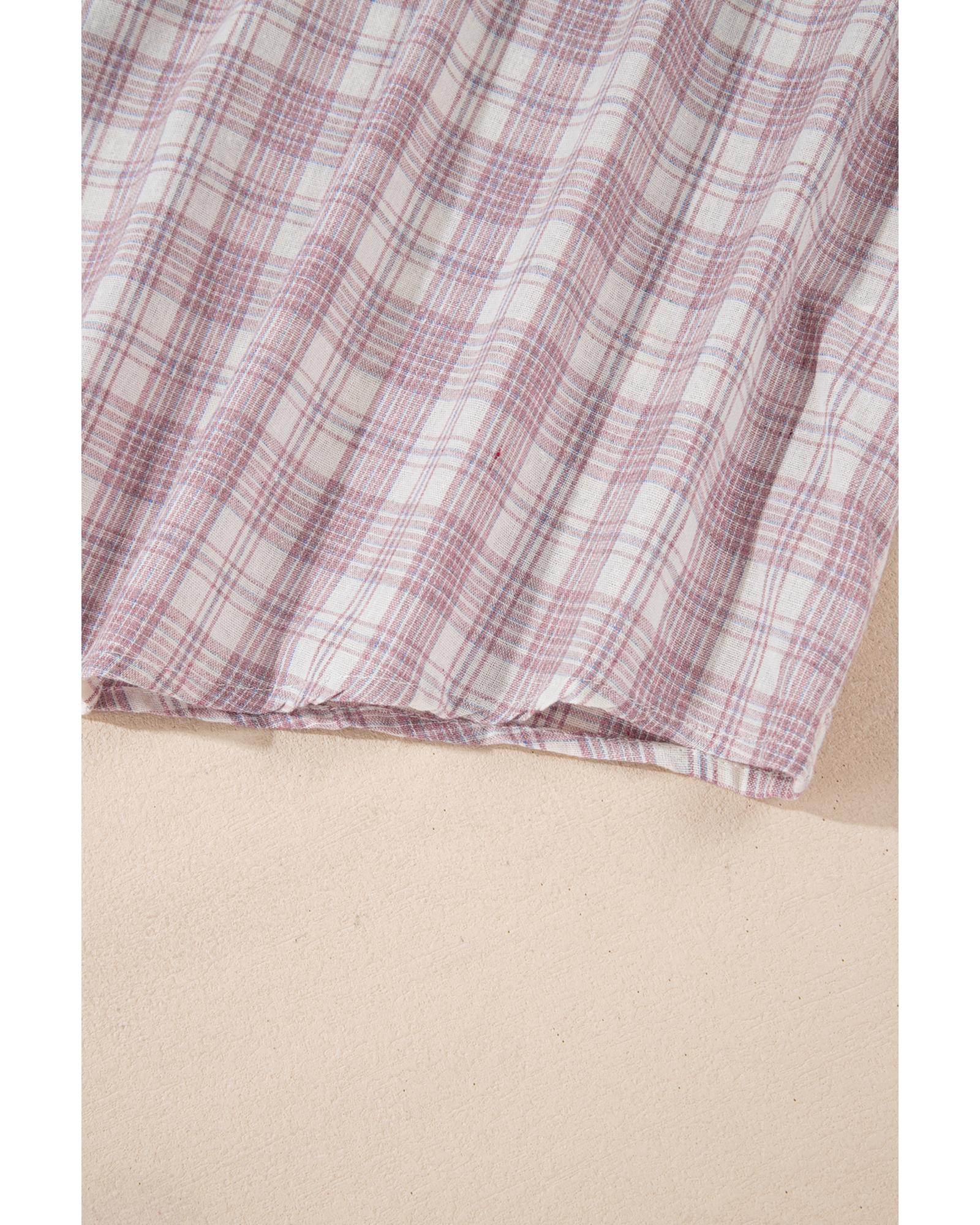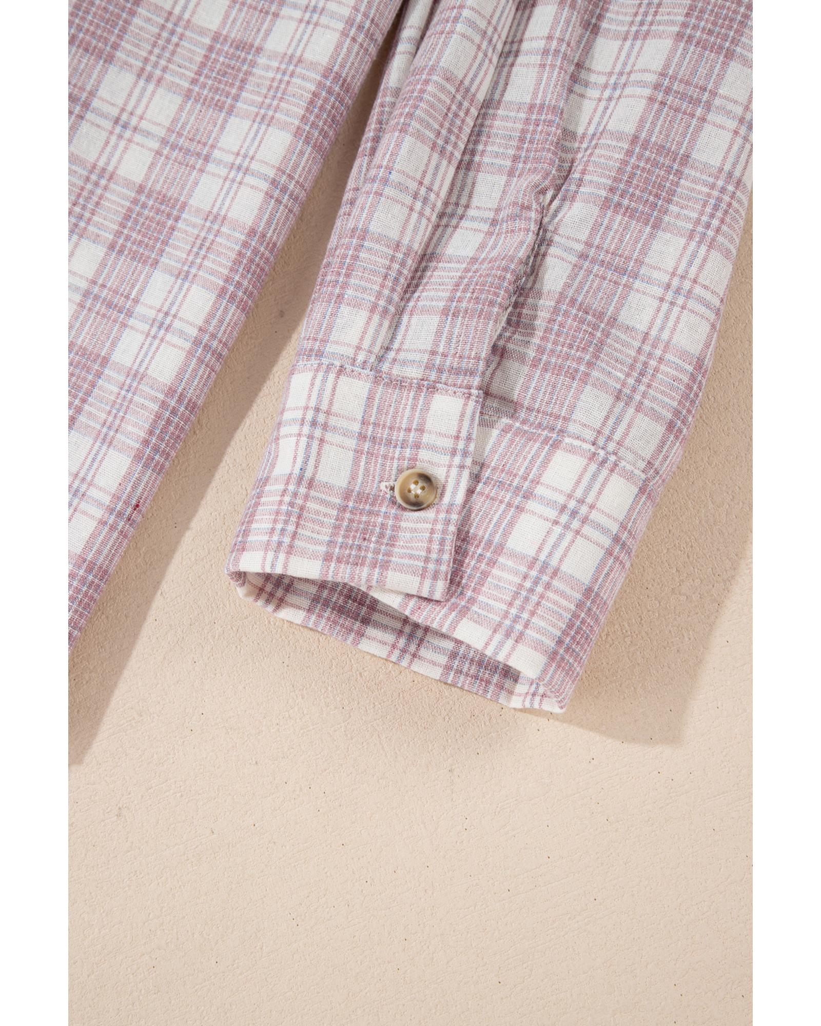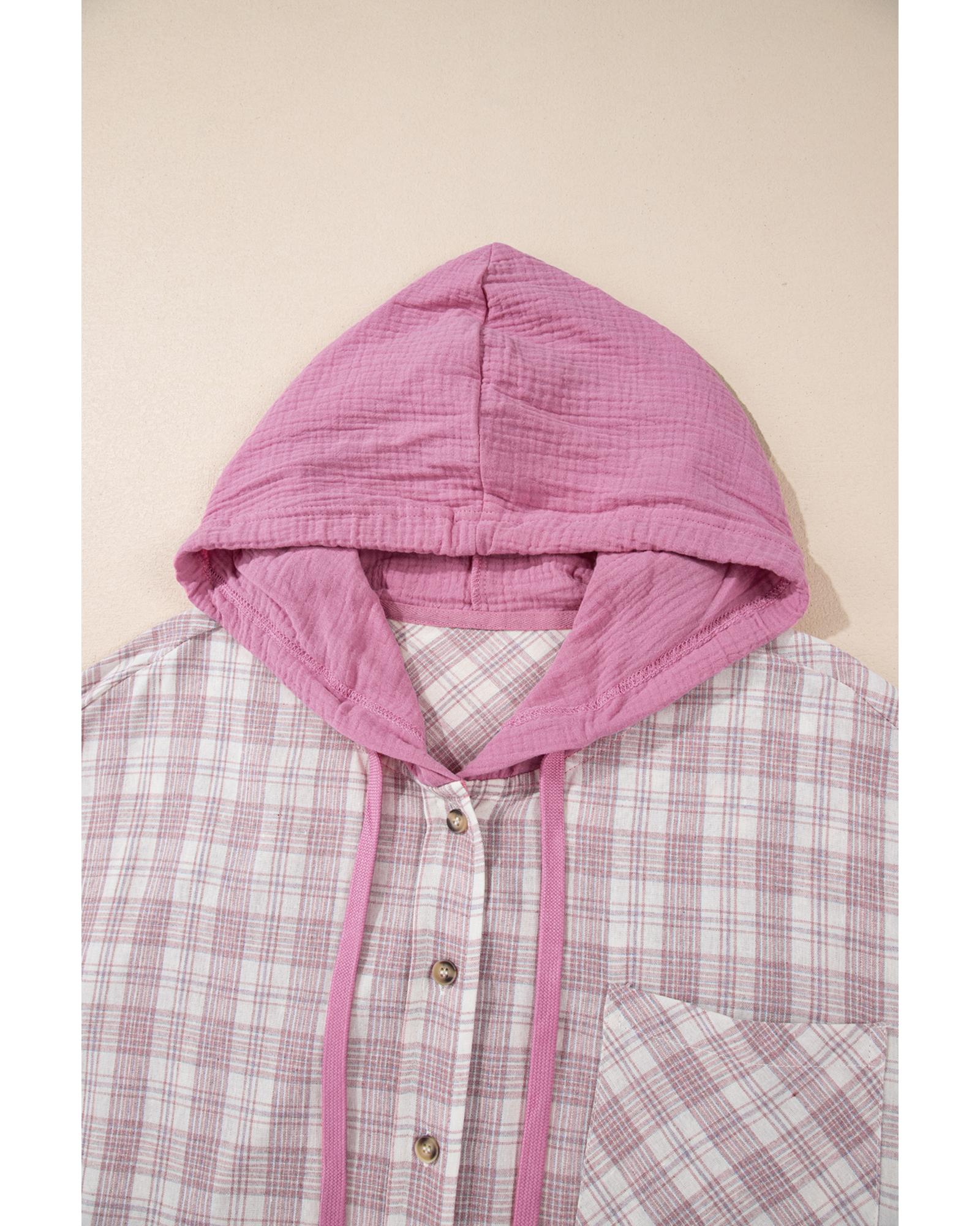 Bonbon Plaid Print Drawstring Hooded Button-up Plus Size Shirt – 1X