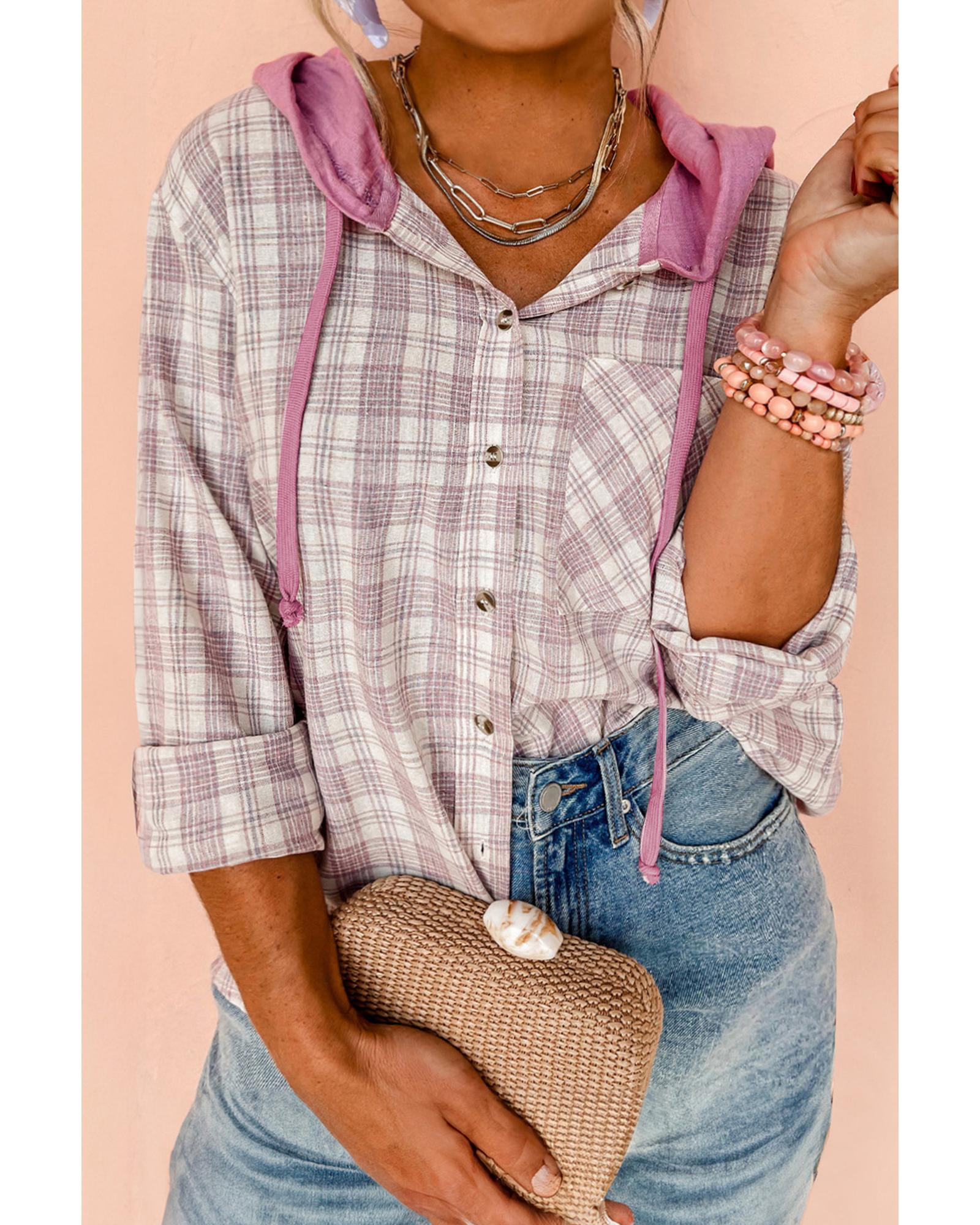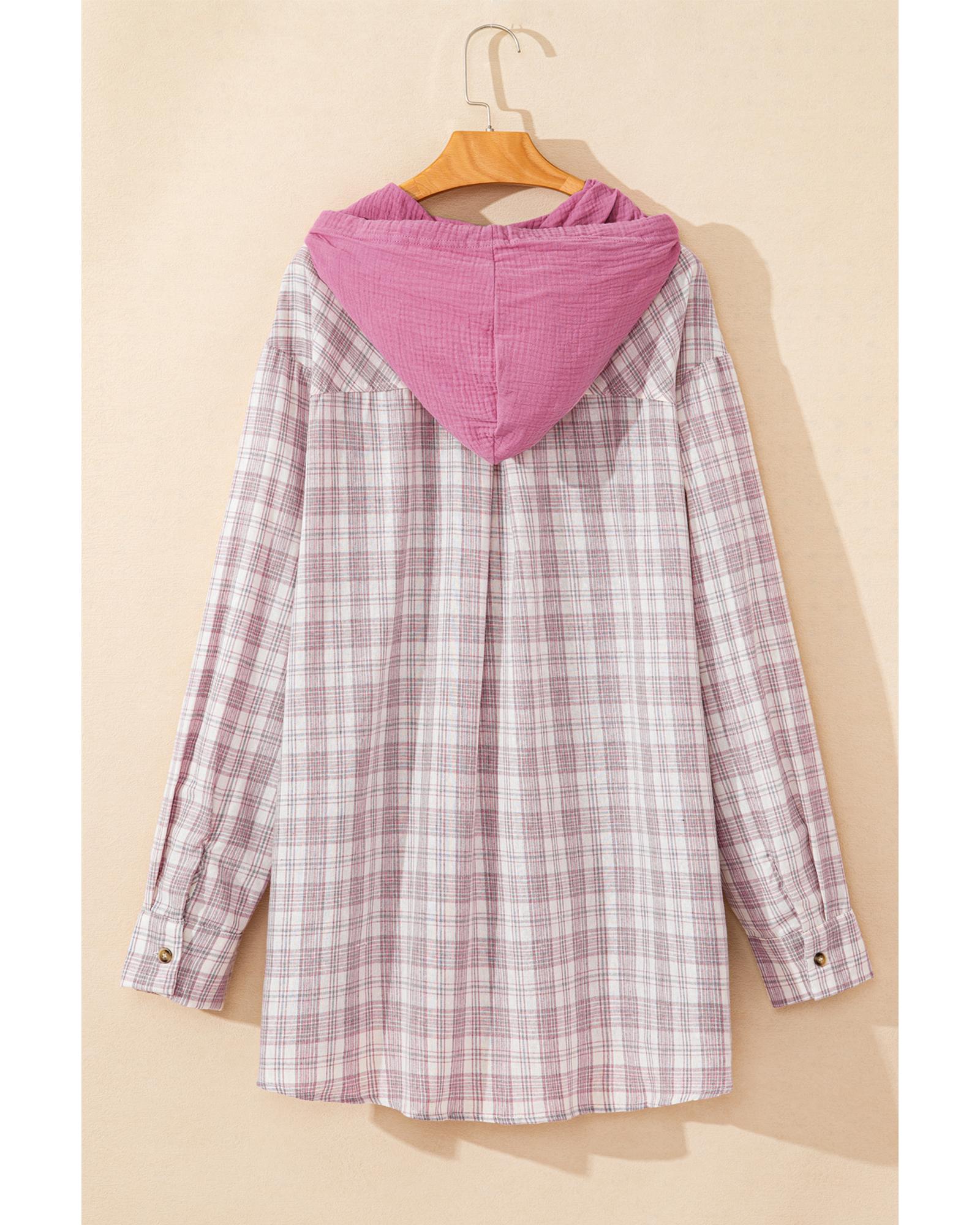 Bonbon Plaid Print Drawstring Hooded Button-up Plus Size Shirt – 4X