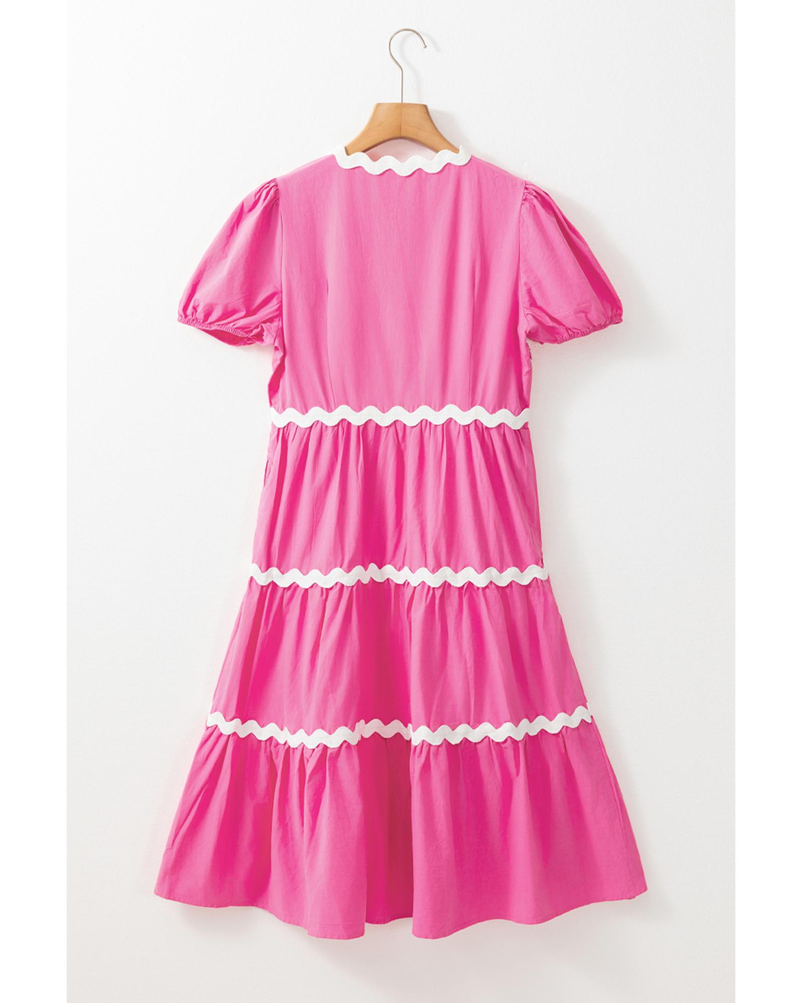 Bonbon Ric Rac Trim Short Puff Sleeve Flowy Midi Dress – L