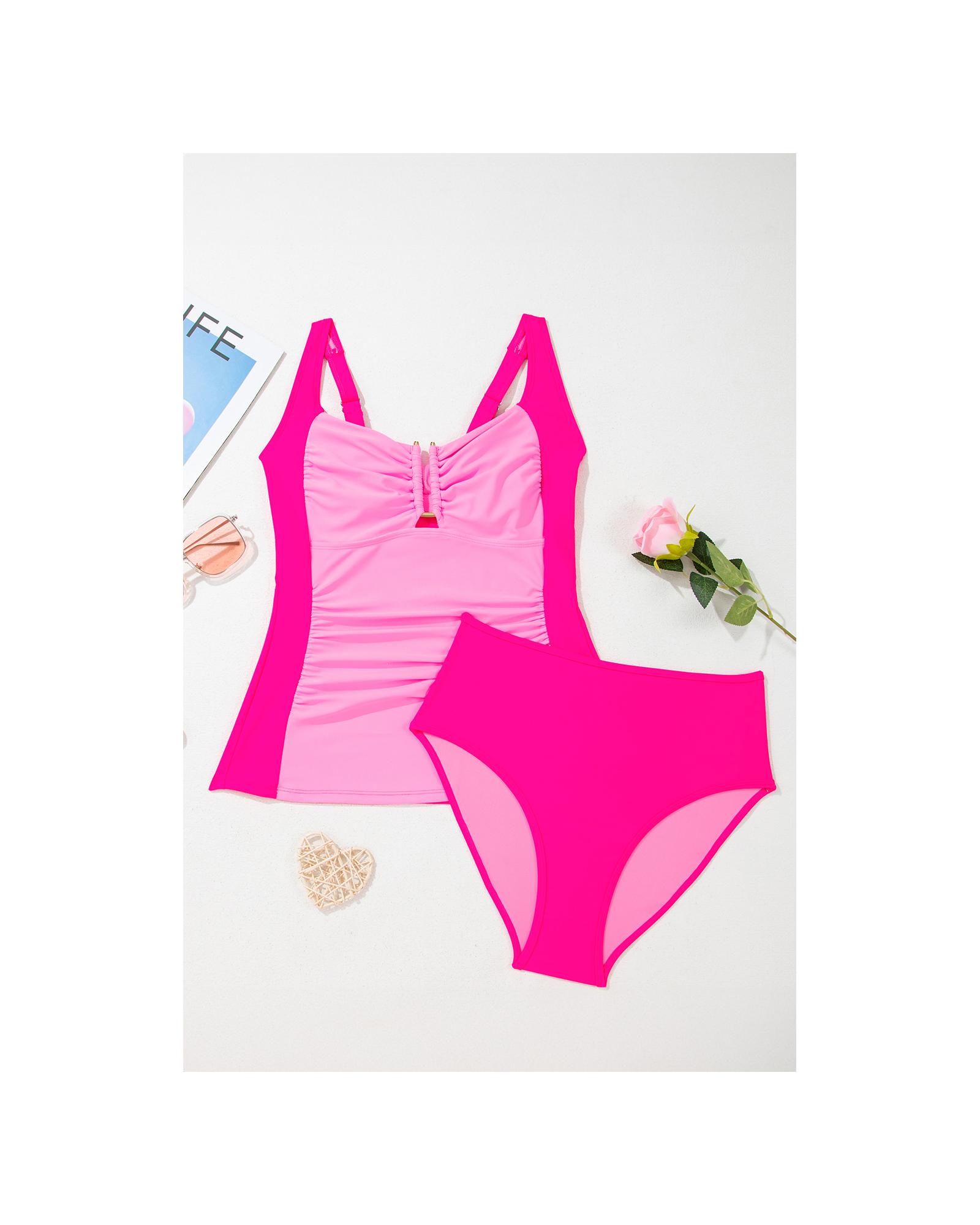 Bonbon Ruched Tummy Control Tankini 2pcs Swimsuit – 2XL