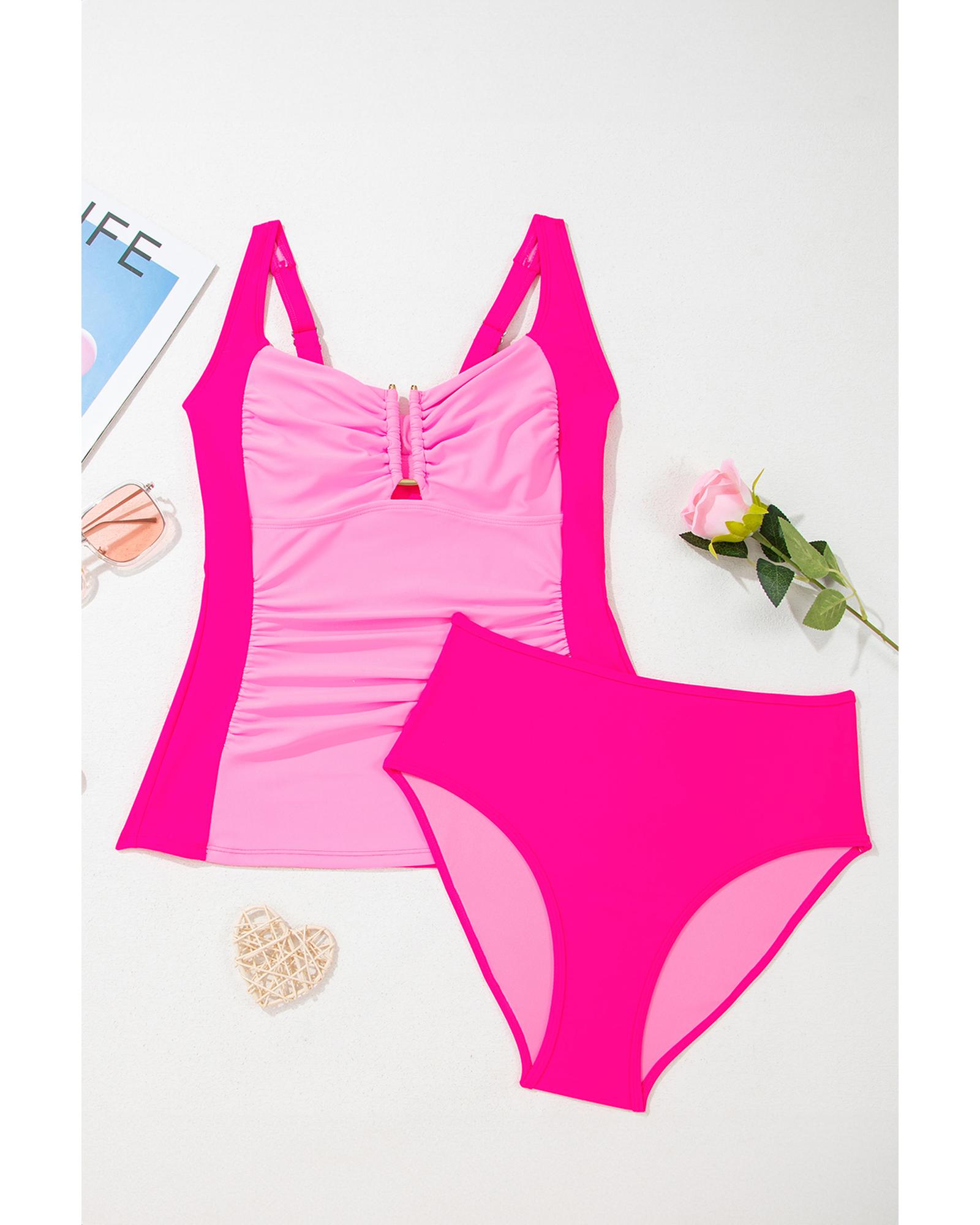 Bonbon Ruched Tummy Control Tankini 2pcs Swimsuit – M