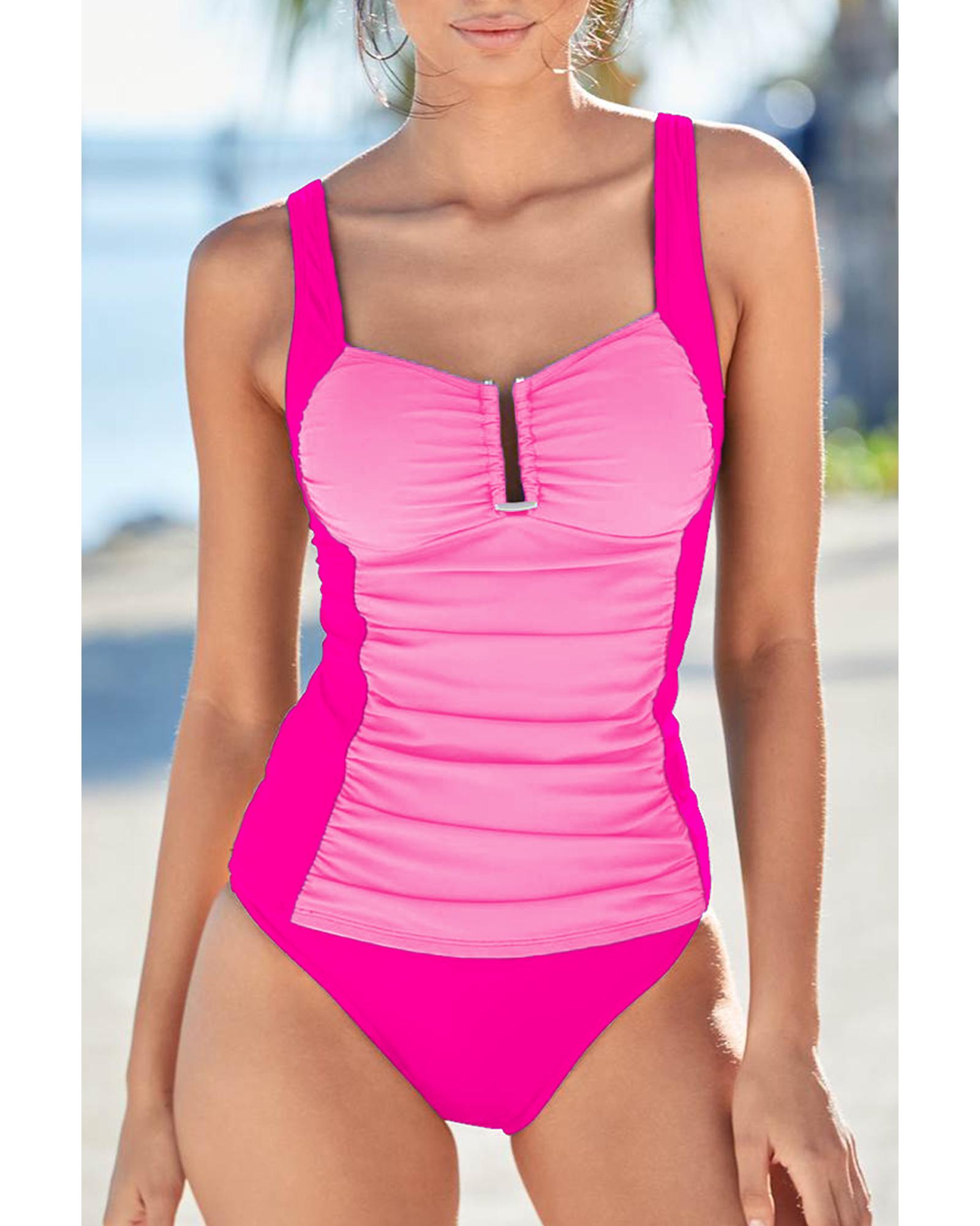 Bonbon Ruched Tummy Control Tankini 2pcs Swimsuit - S
