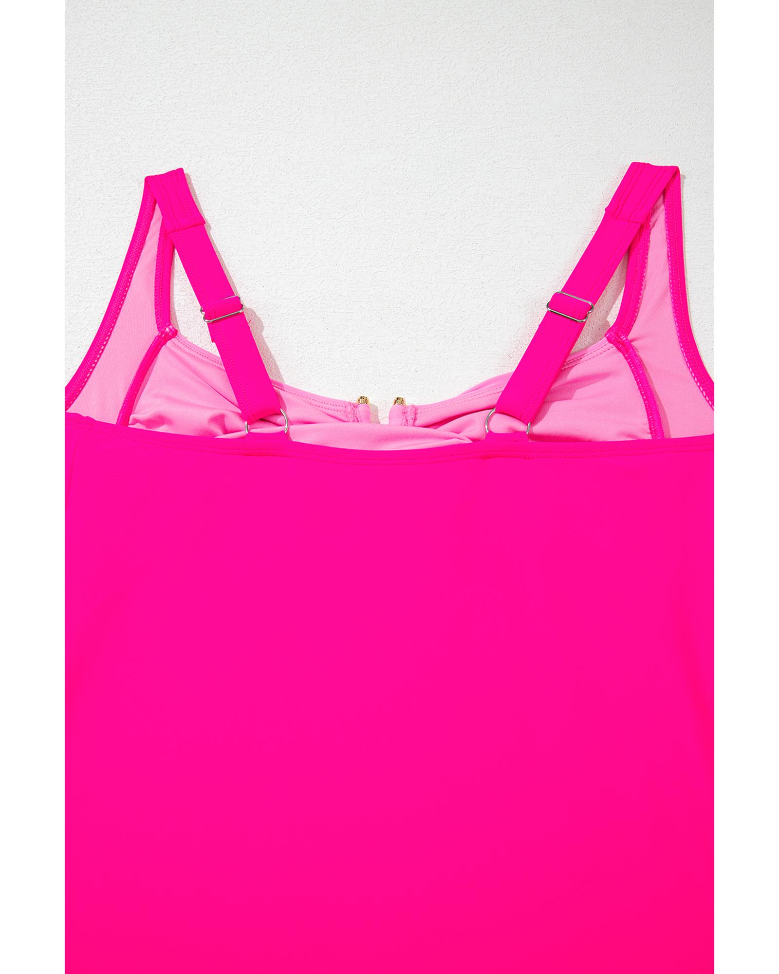 Bonbon Ruched Tummy Control Tankini 2pcs Swimsuit – XL