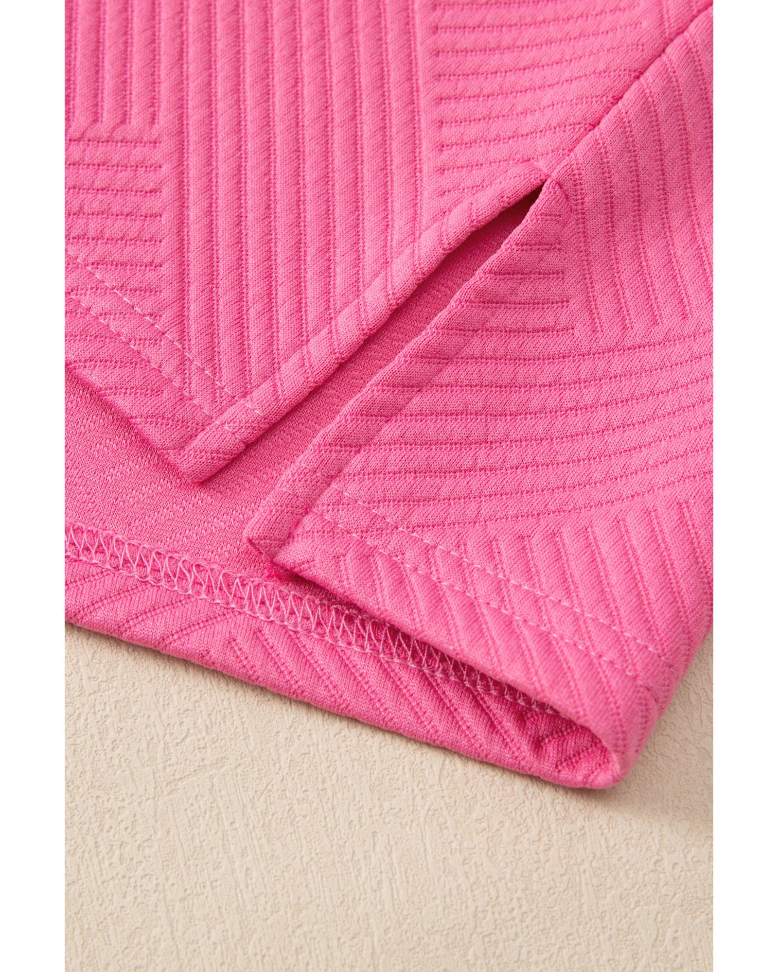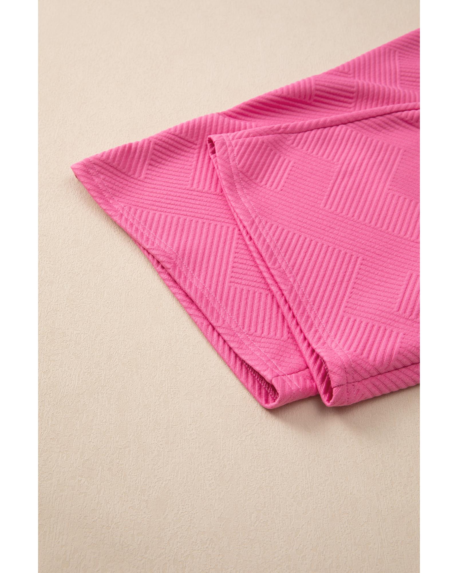 • Bonbon Solid Textured Collared V Neck Top and Wide Leg Pants Set