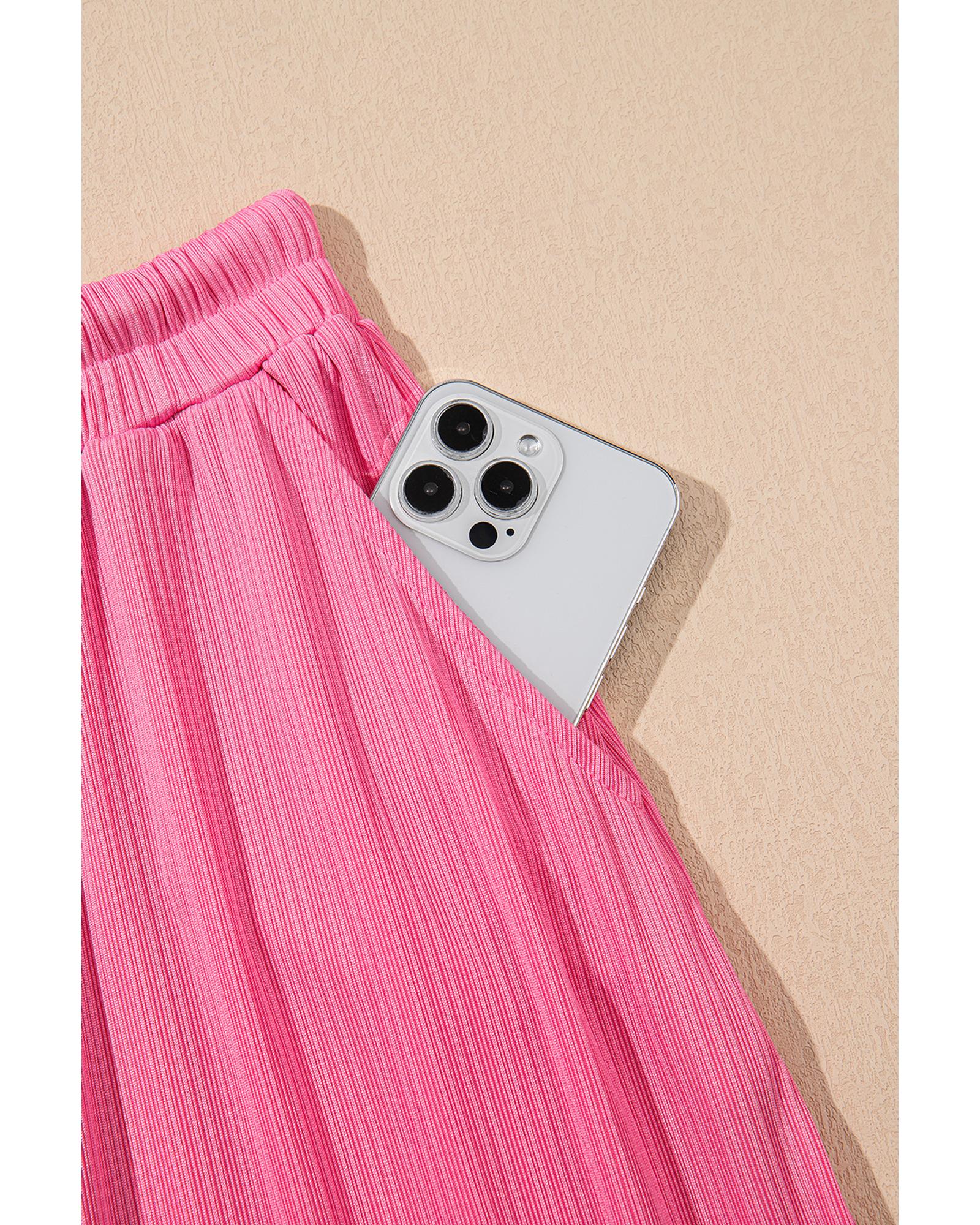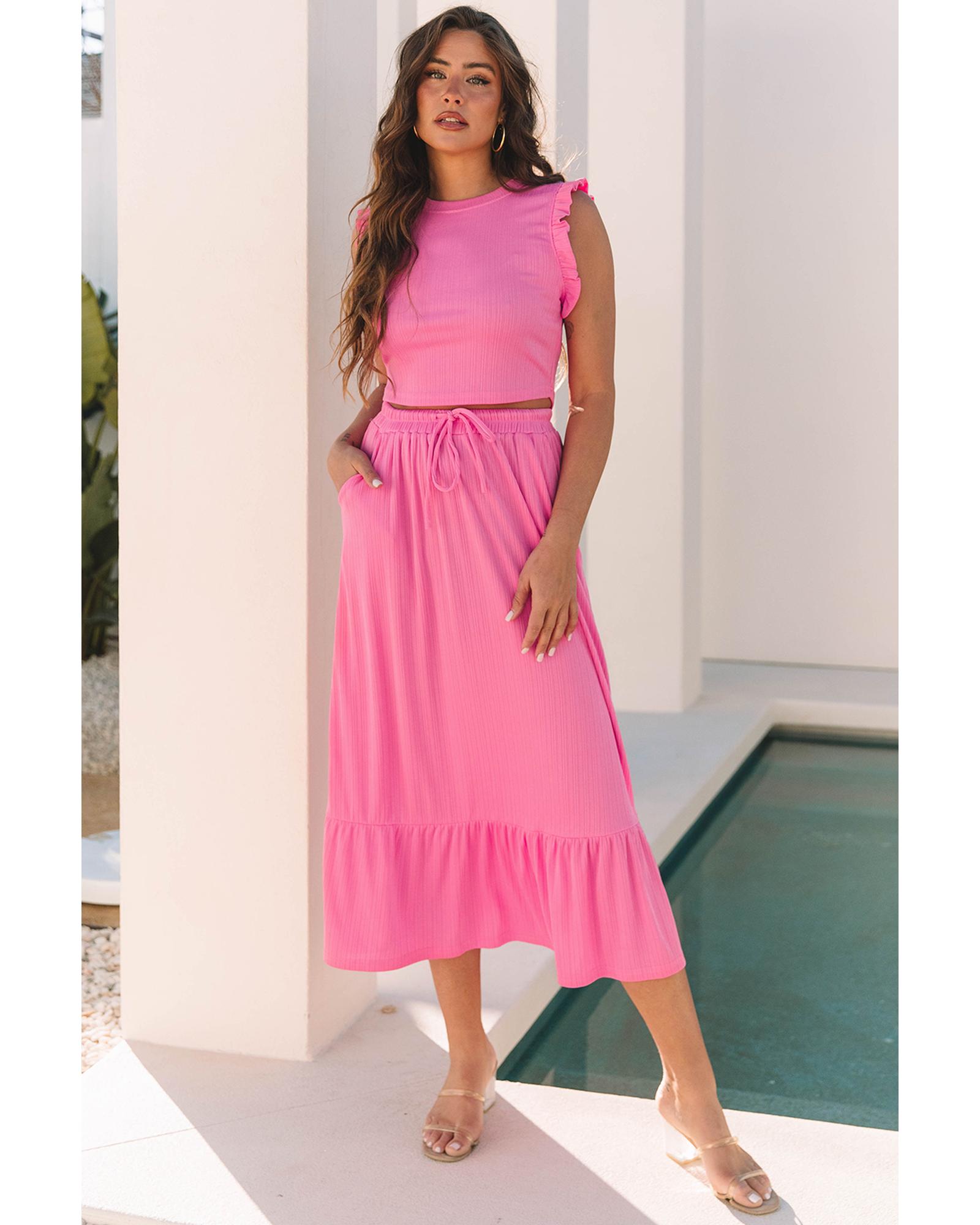 Bonbon Textured Ruffle Trim Crop Vest Lace-up Long Skirt Set – M