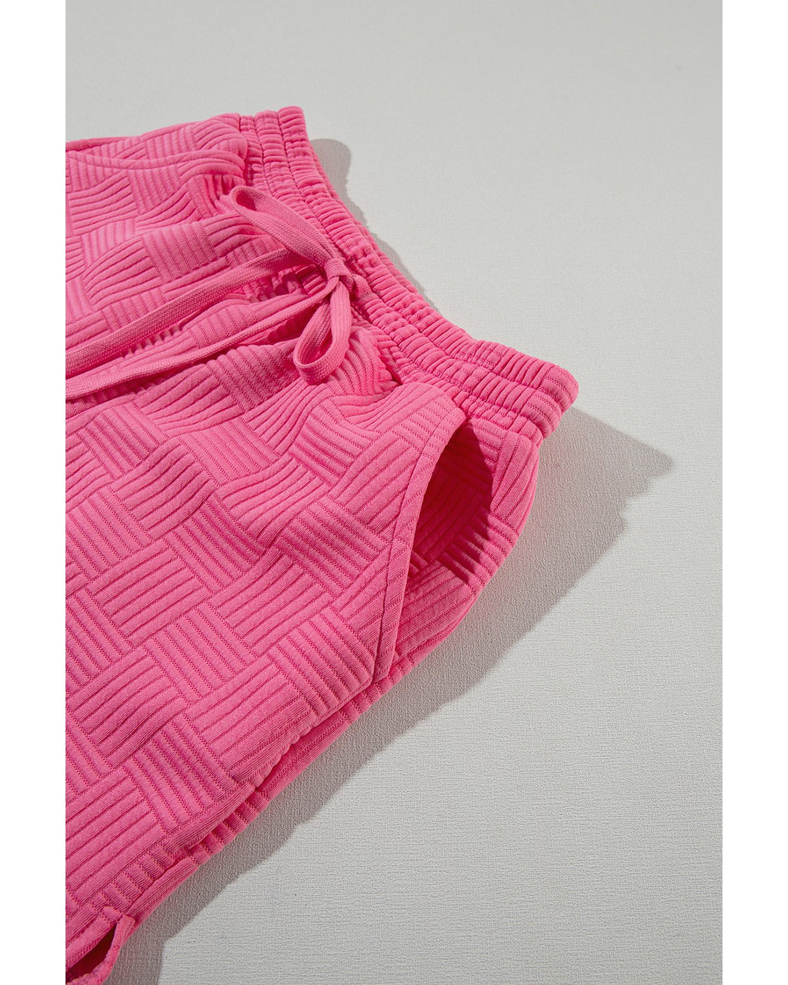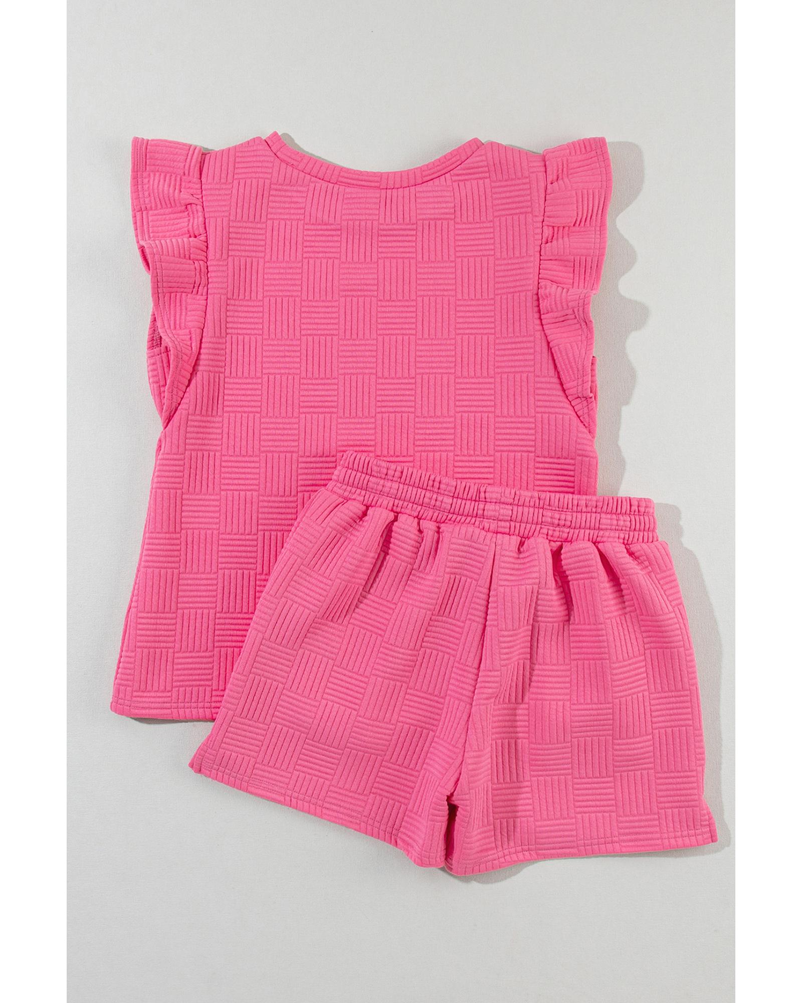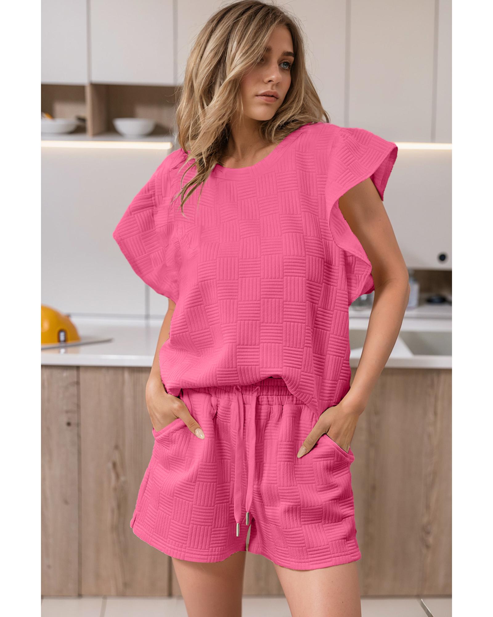 Bonbon Textured Ruffled Sleeve Tee and Drawstring Shorts Set – XL