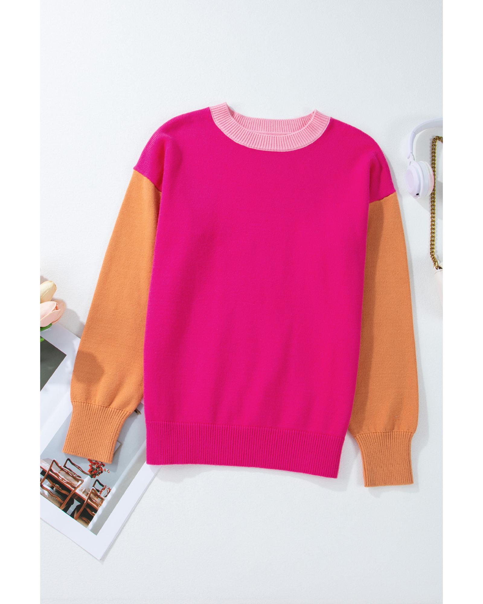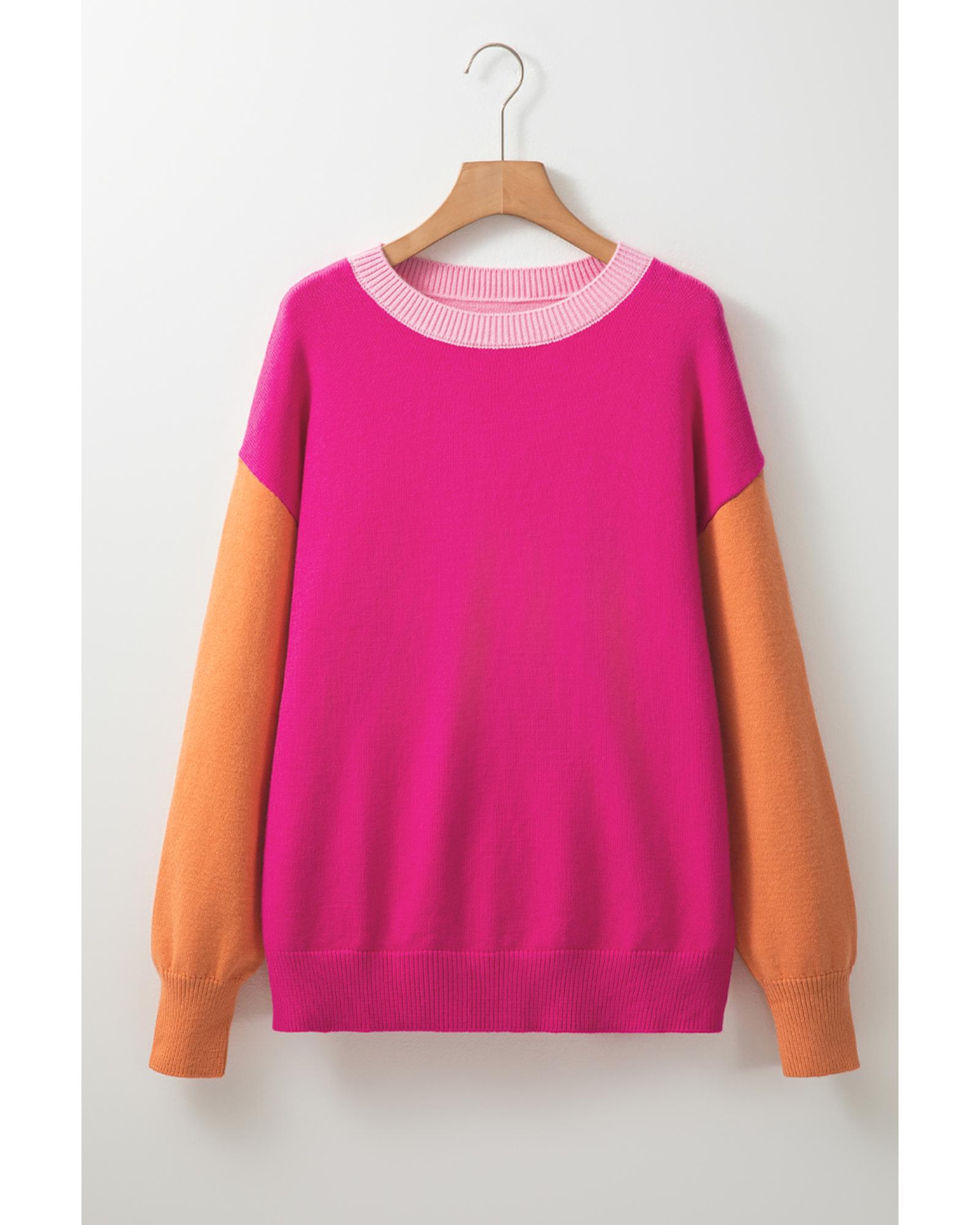 Bonbon Three Tone Contrast Round Neck Loose Sweater – S