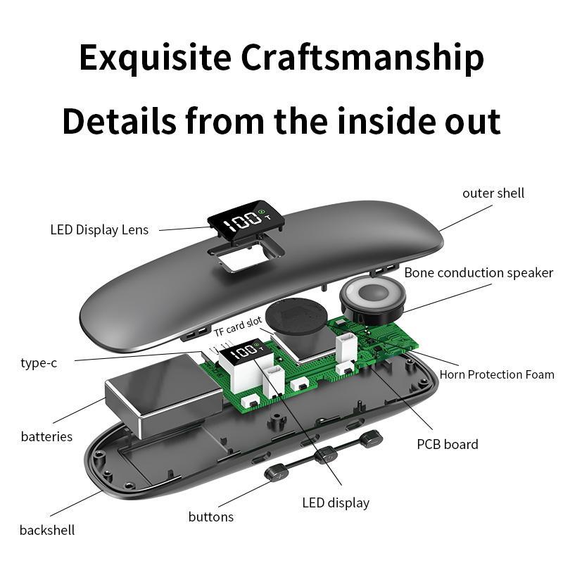 • Bone conduction technology delivers clear music without the need for wearing headphones, ensuring no disturbance to those around you.