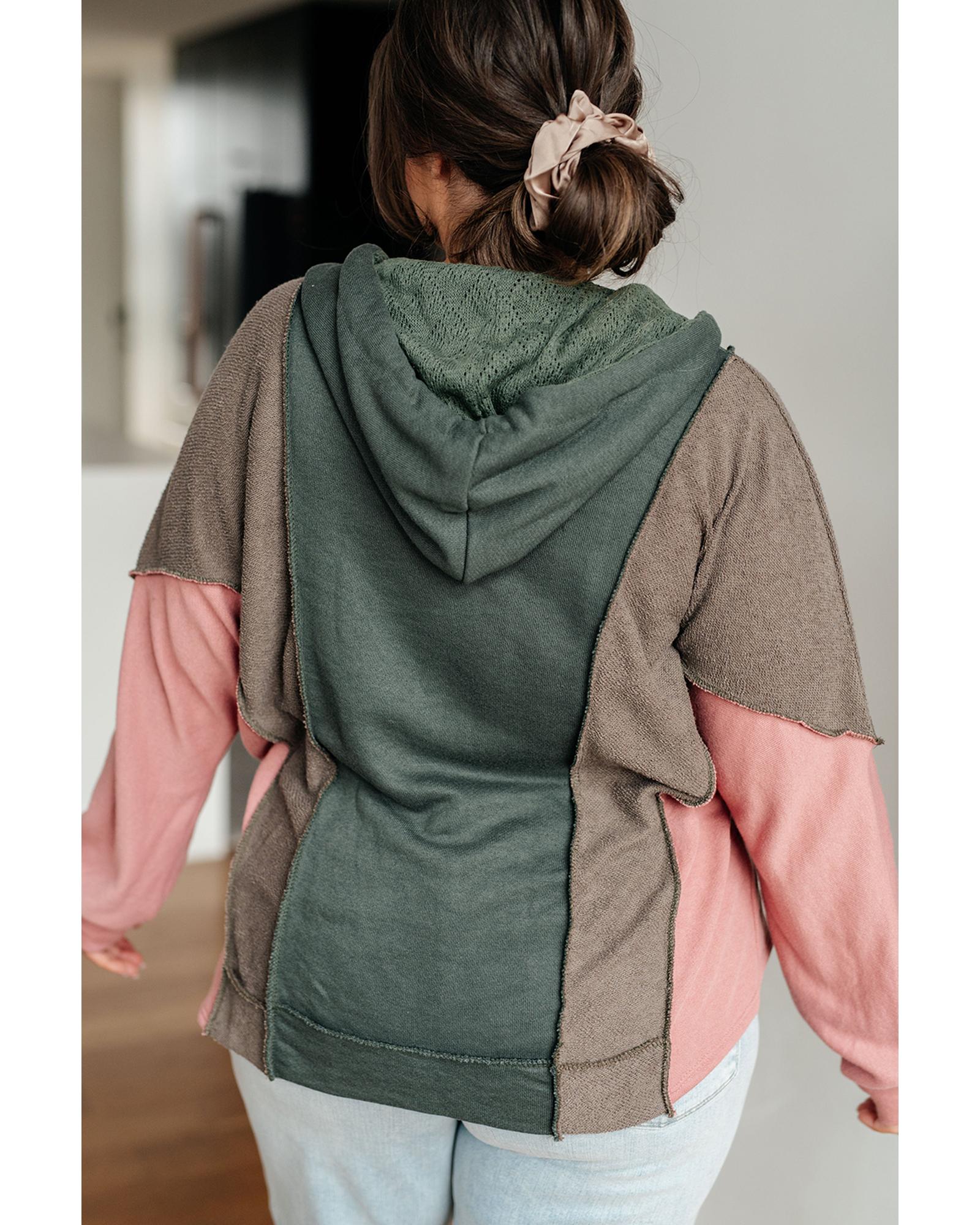 Breen Plus Size Colorblock Patchwork V Neck Hoodie – 2X