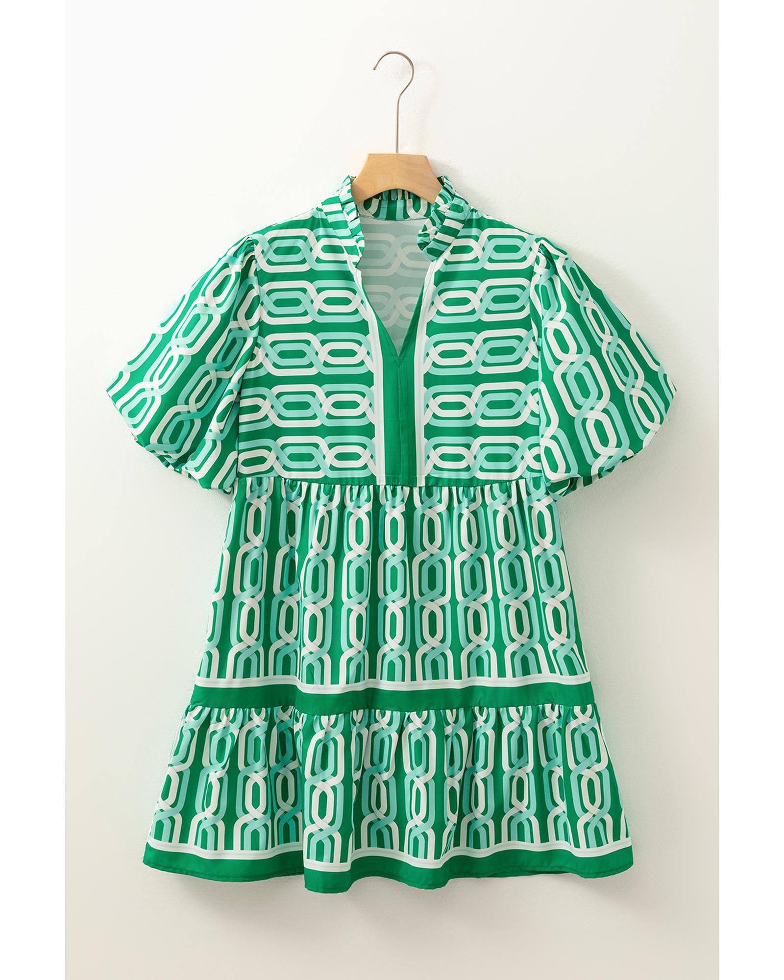 - Bright green abstract patterned mini dress