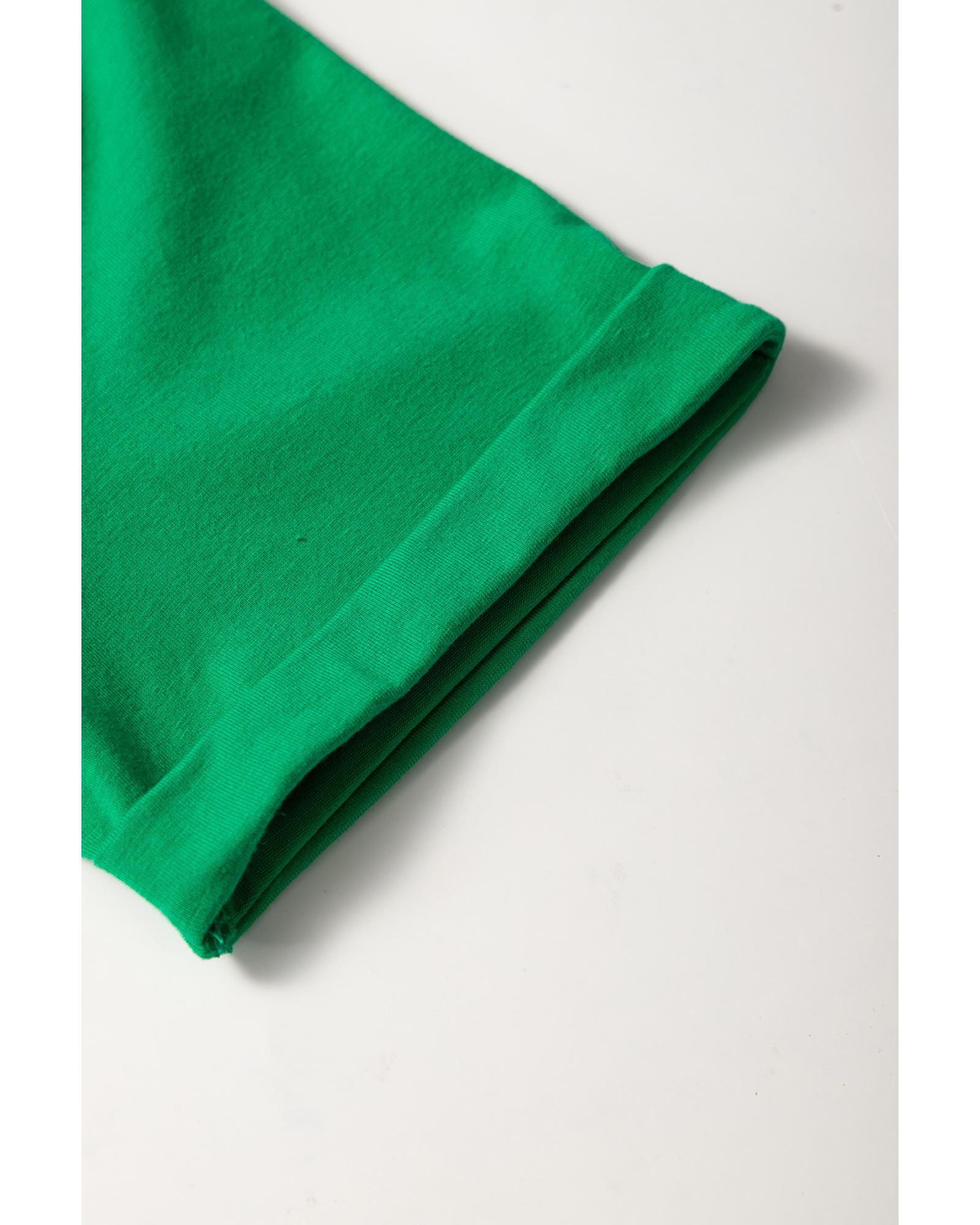 Four Leaf Clover Floral Bubble Sleeve Patchwork Leatherette Frilled Round Neck Blouse - L Original price was: $64.99.Current price is: $34.99.