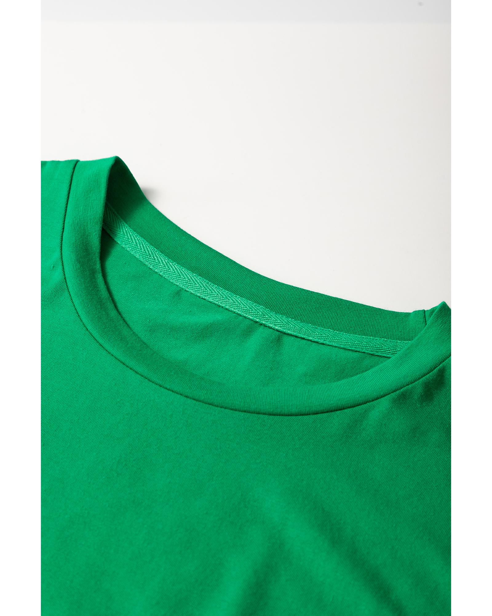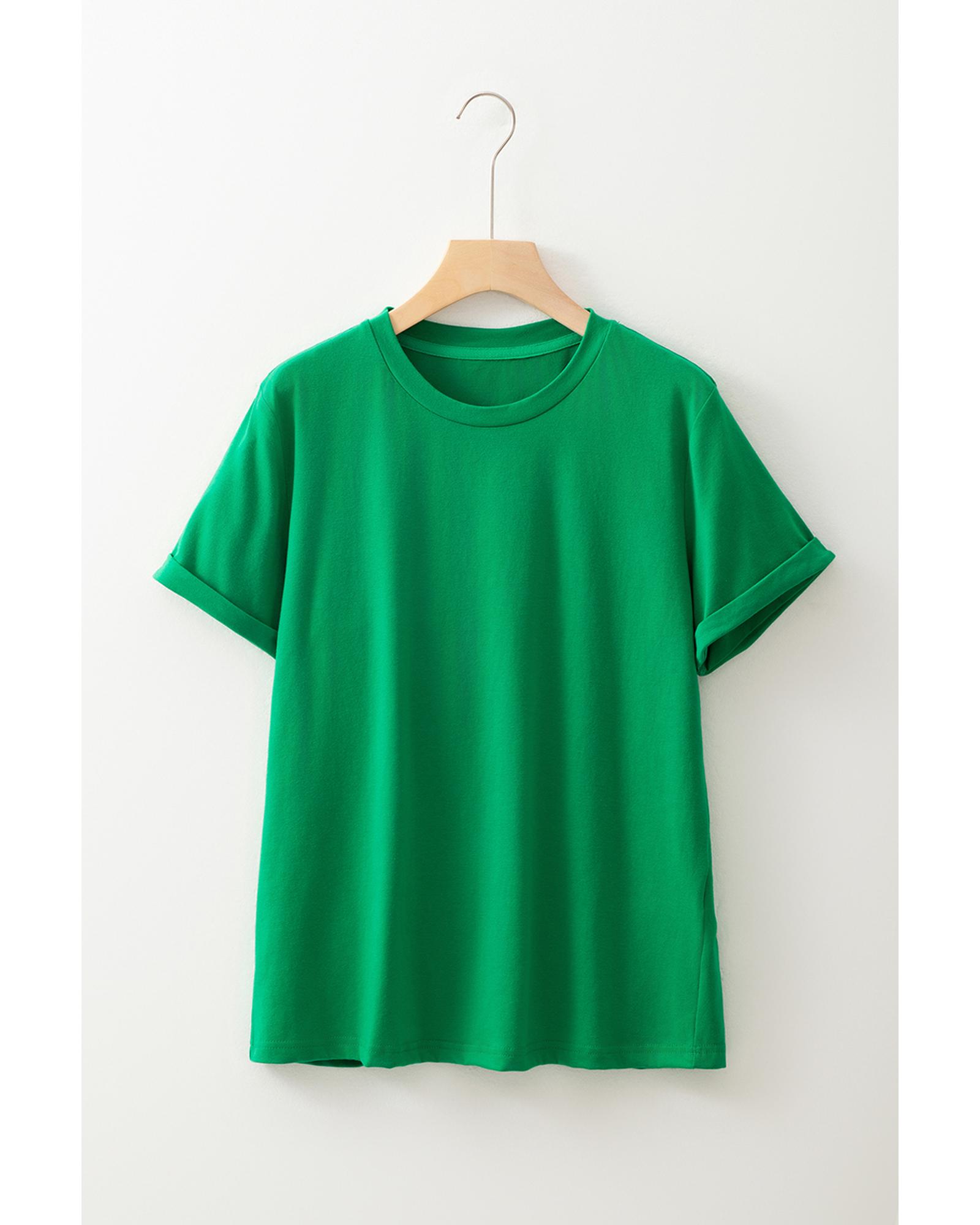 Bright Green Casual Plain Crew Neck Tee – S