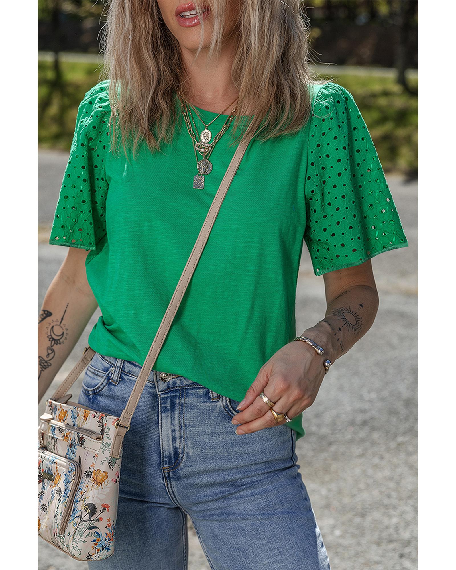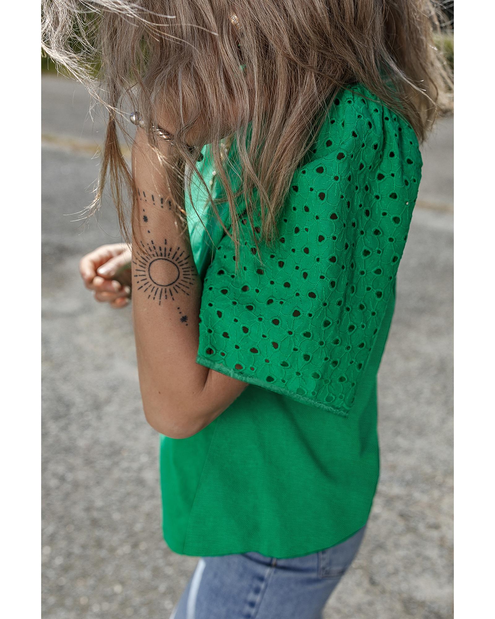 Bright Green Eyelet Embroidered Patchwork Shift Top – S