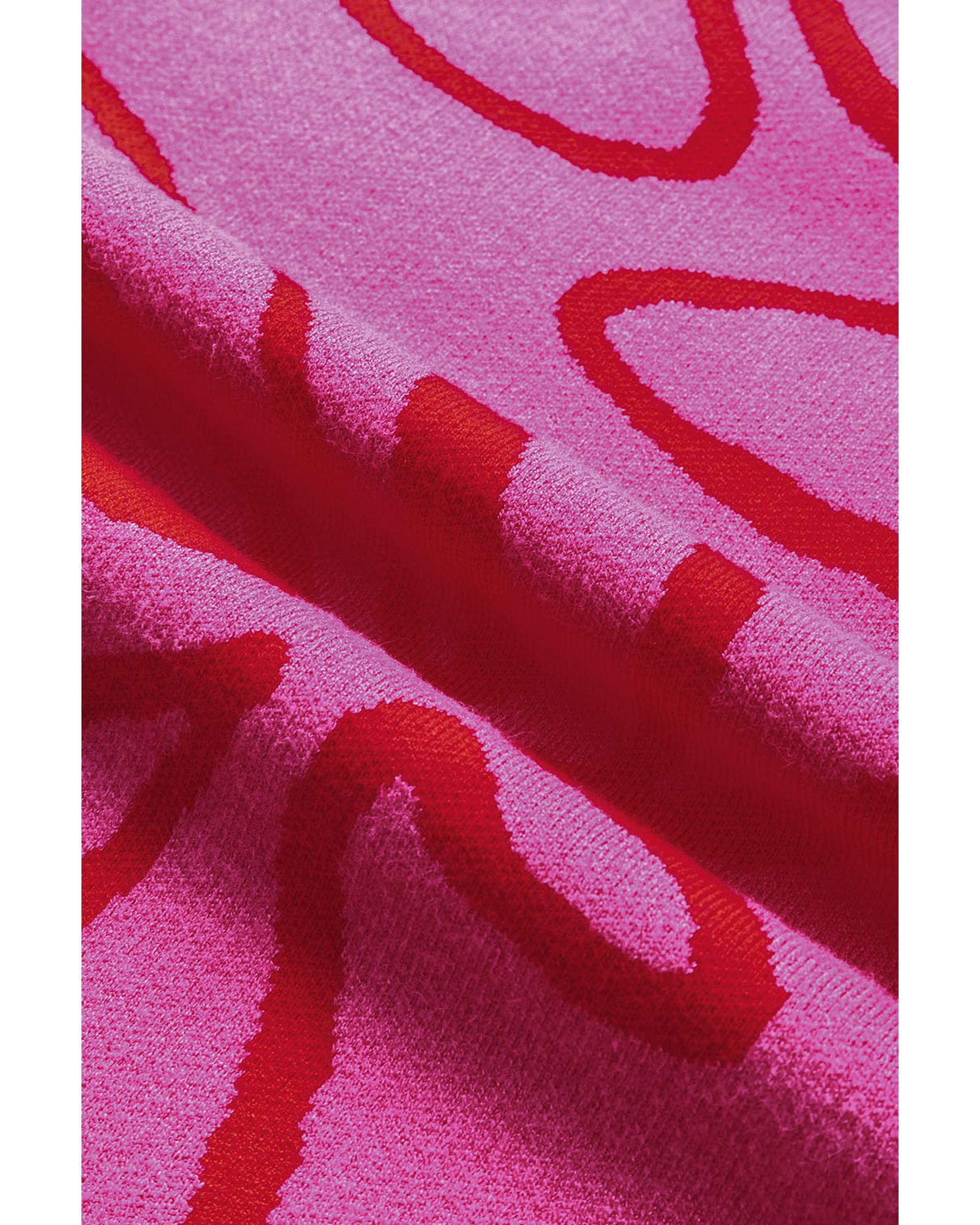 Bright Pink Button Sides Sleeveless Floral Knitted Top – L
