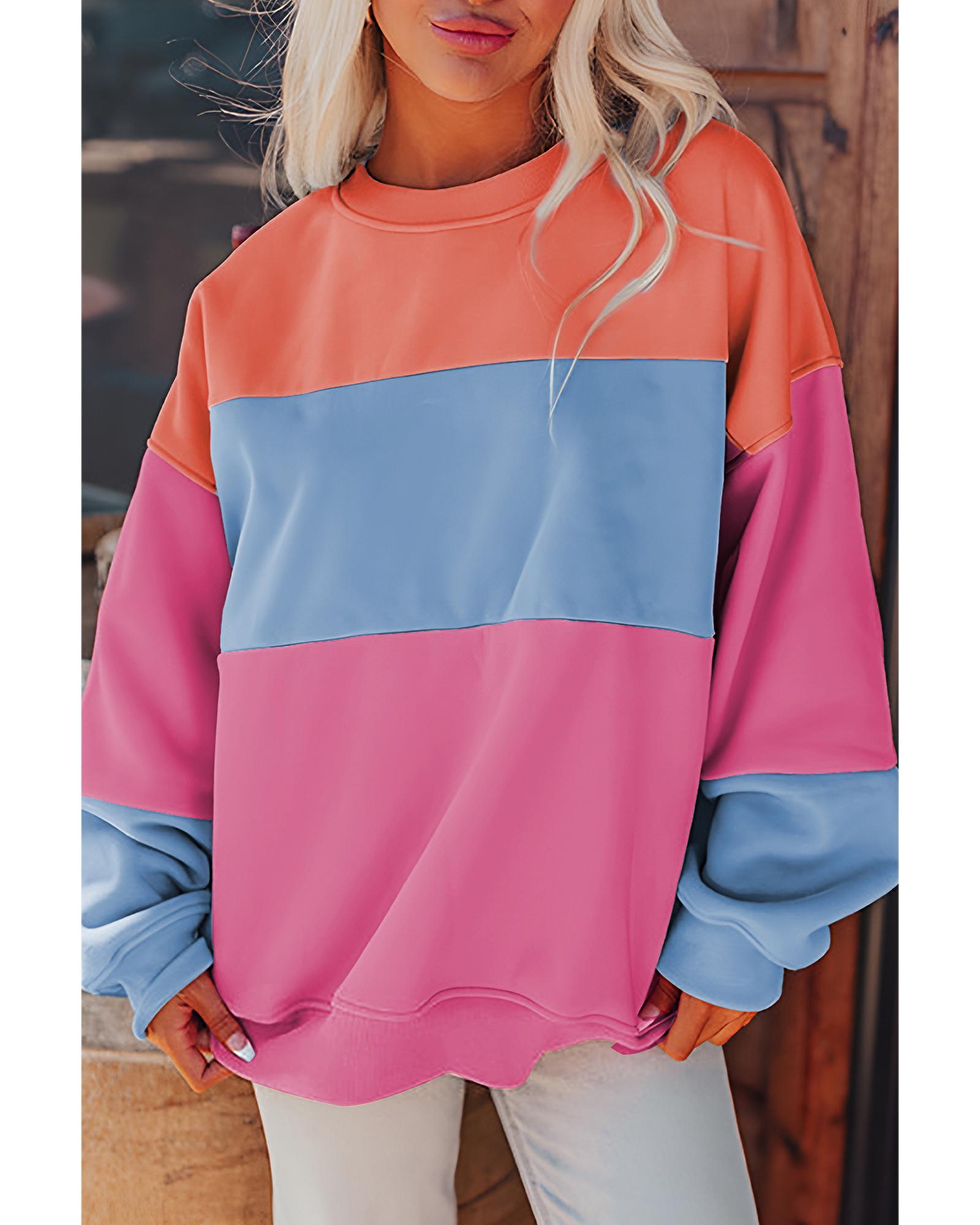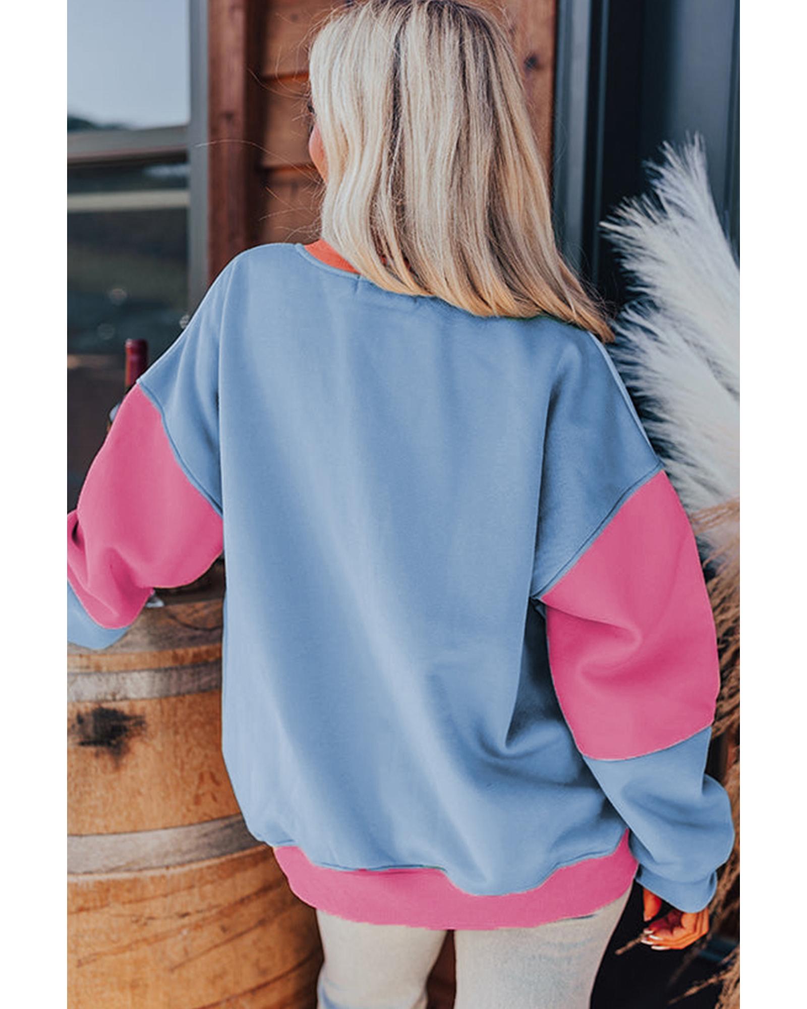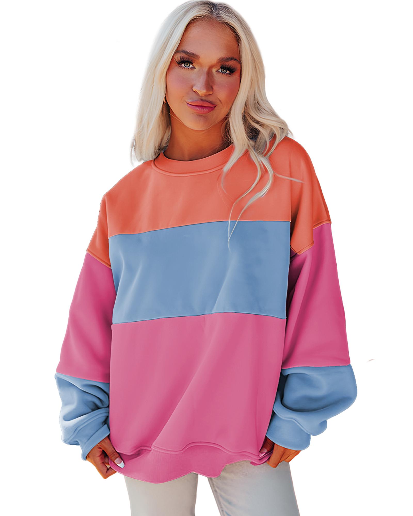 Bright Pink Colorblock Patchwork Drop Shoulder Sweatshirt – M