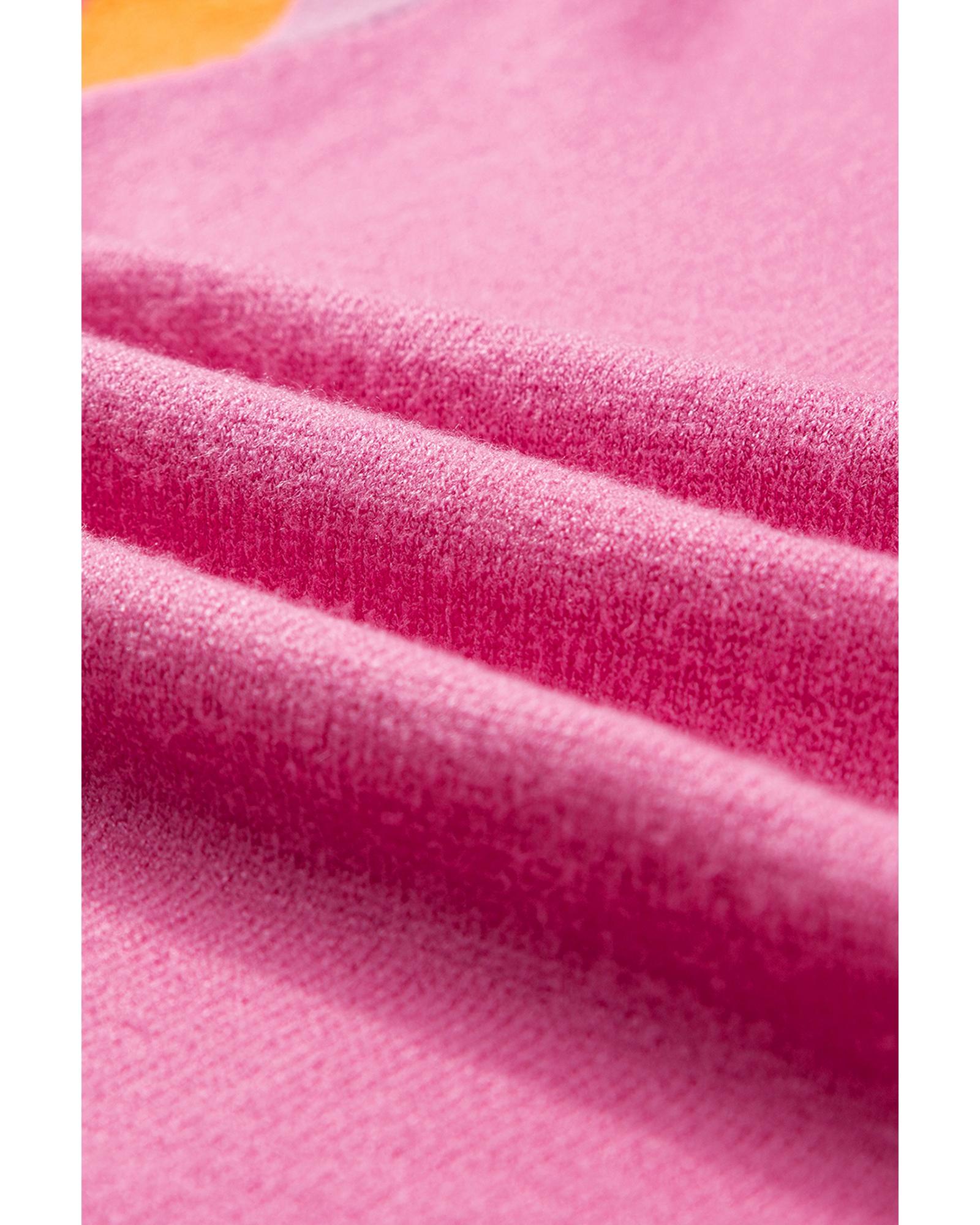 Pink Chenille Daisy Stitching Crew Neck Sweater - XL