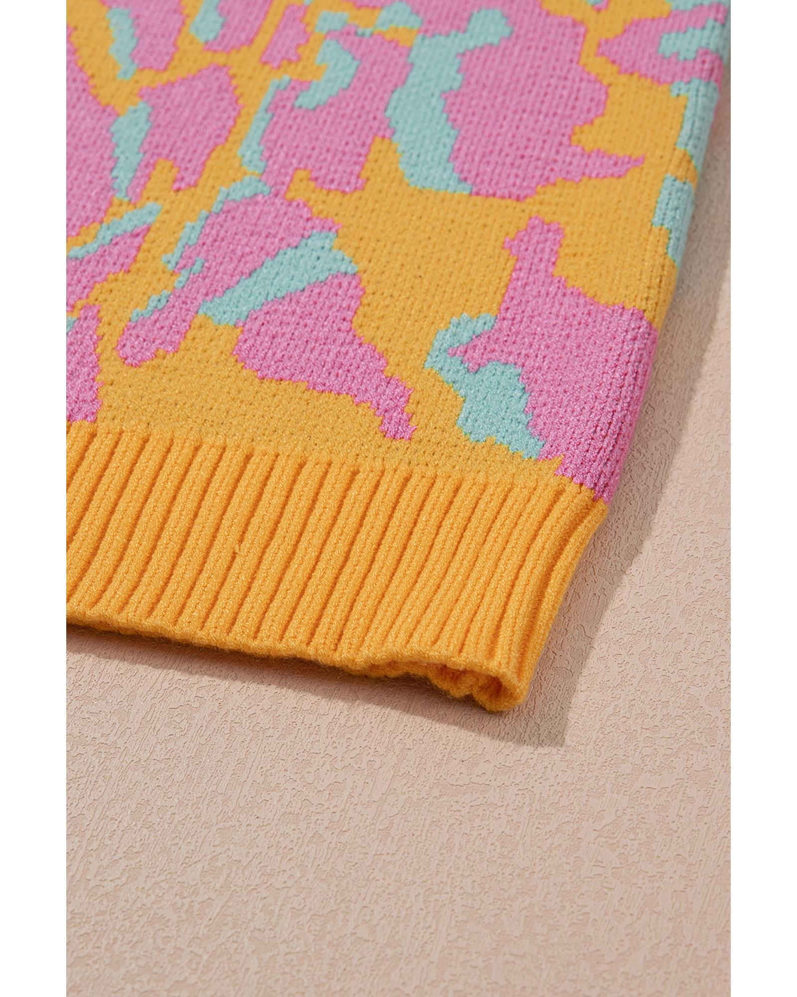Bright Pink Plus Size Leopard Ribbed Trim Sweater – 2X