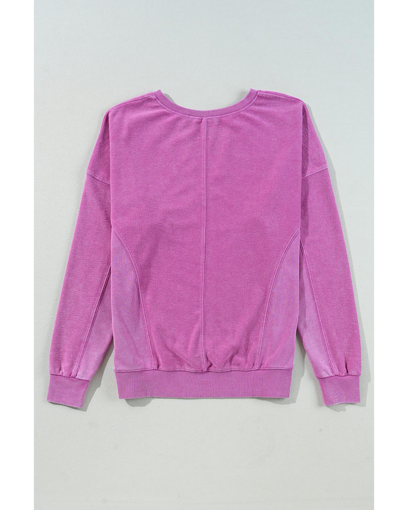Bright Pink Solid Color Notched Neck Drop Shoulder Sweatshirt – L