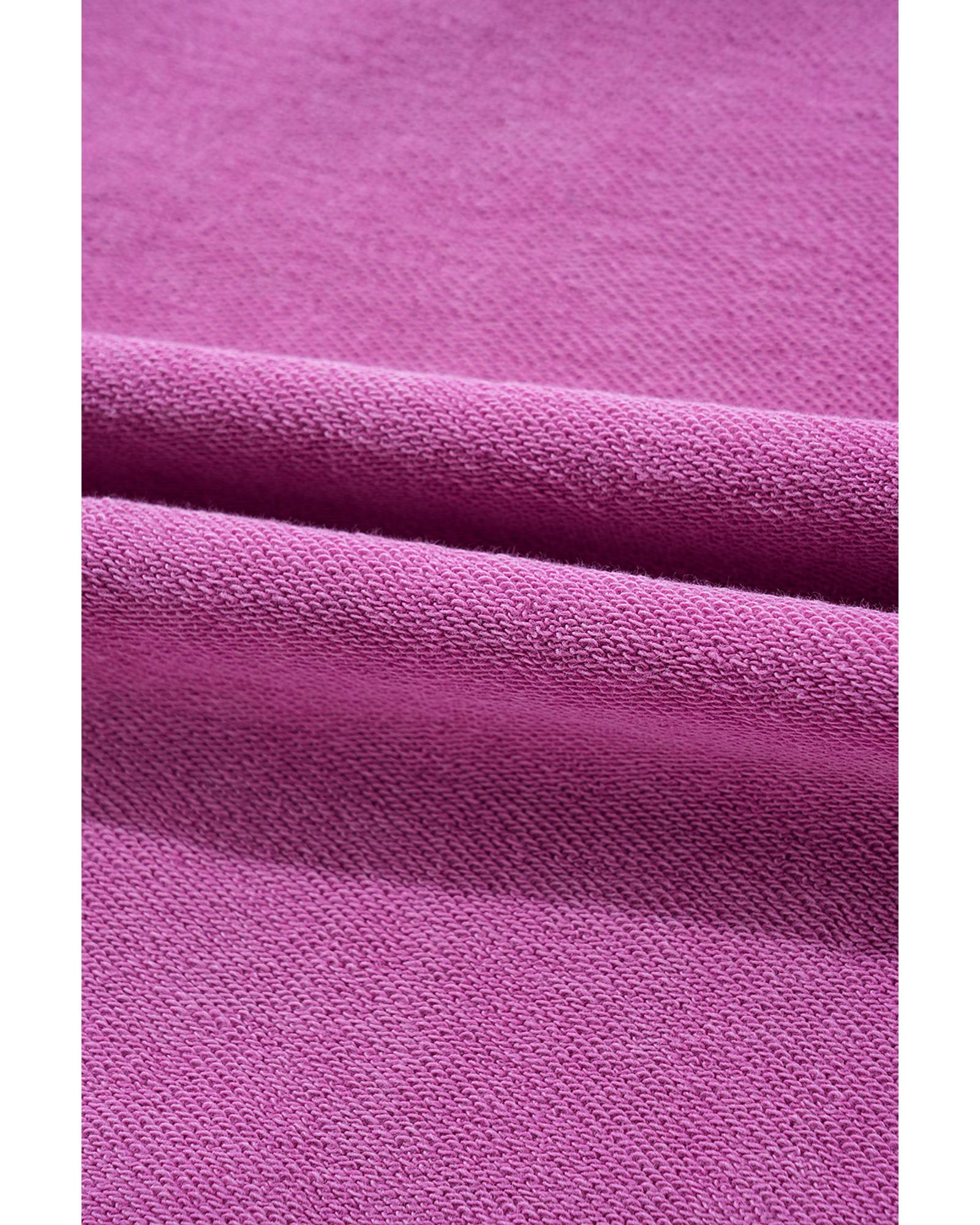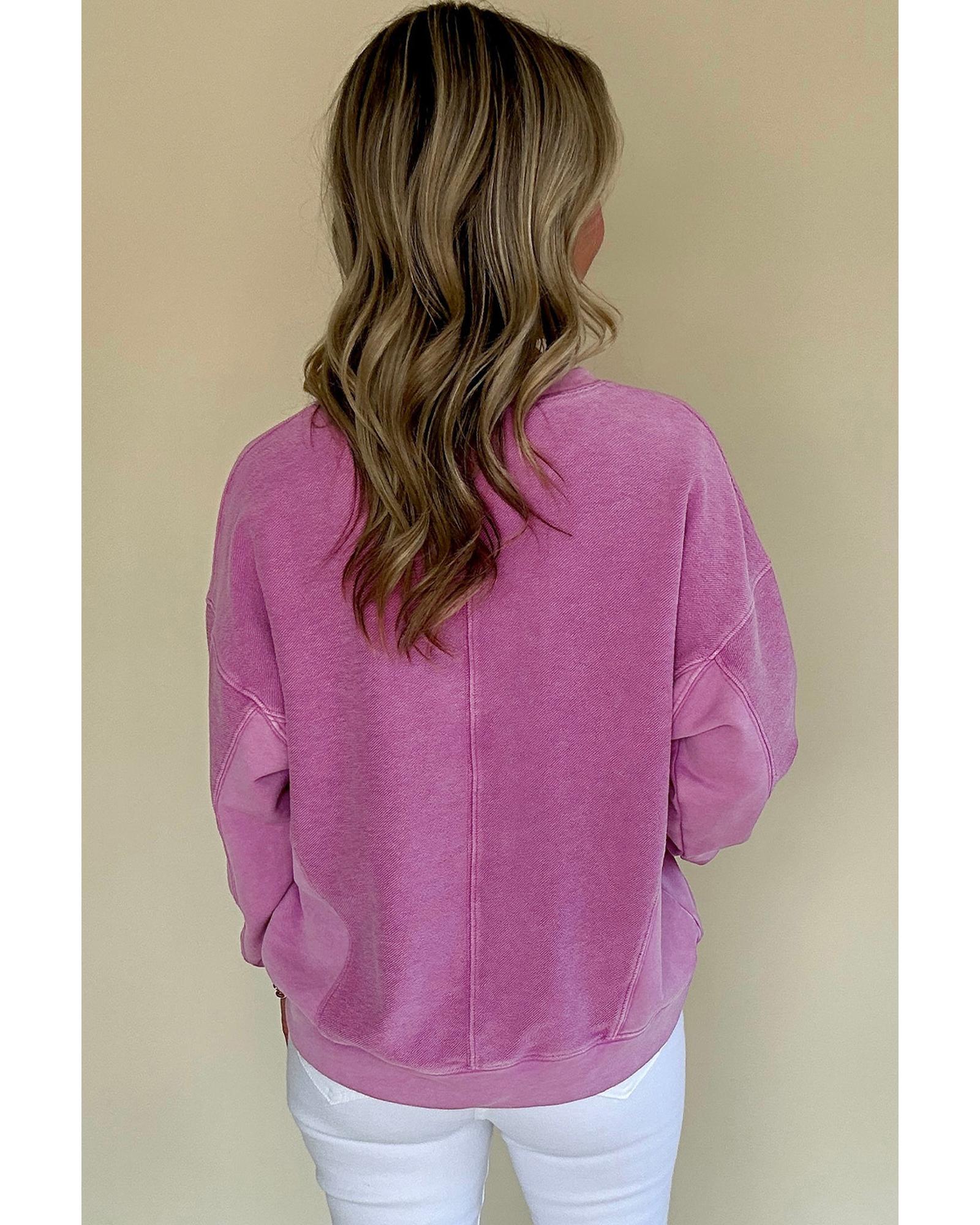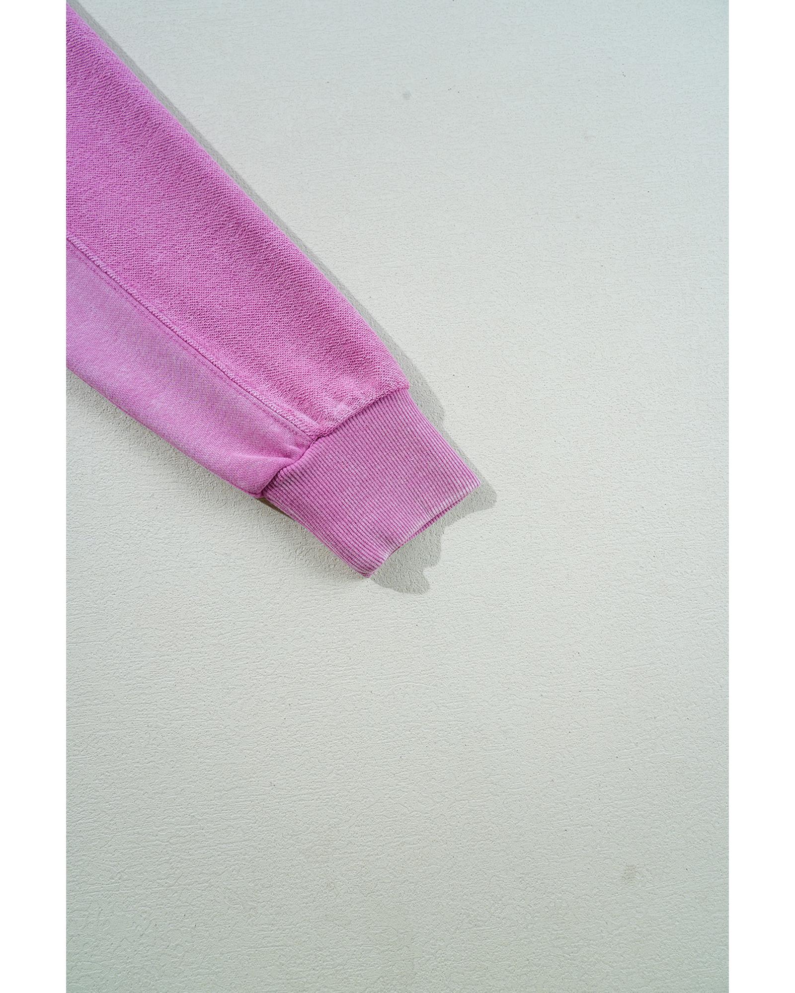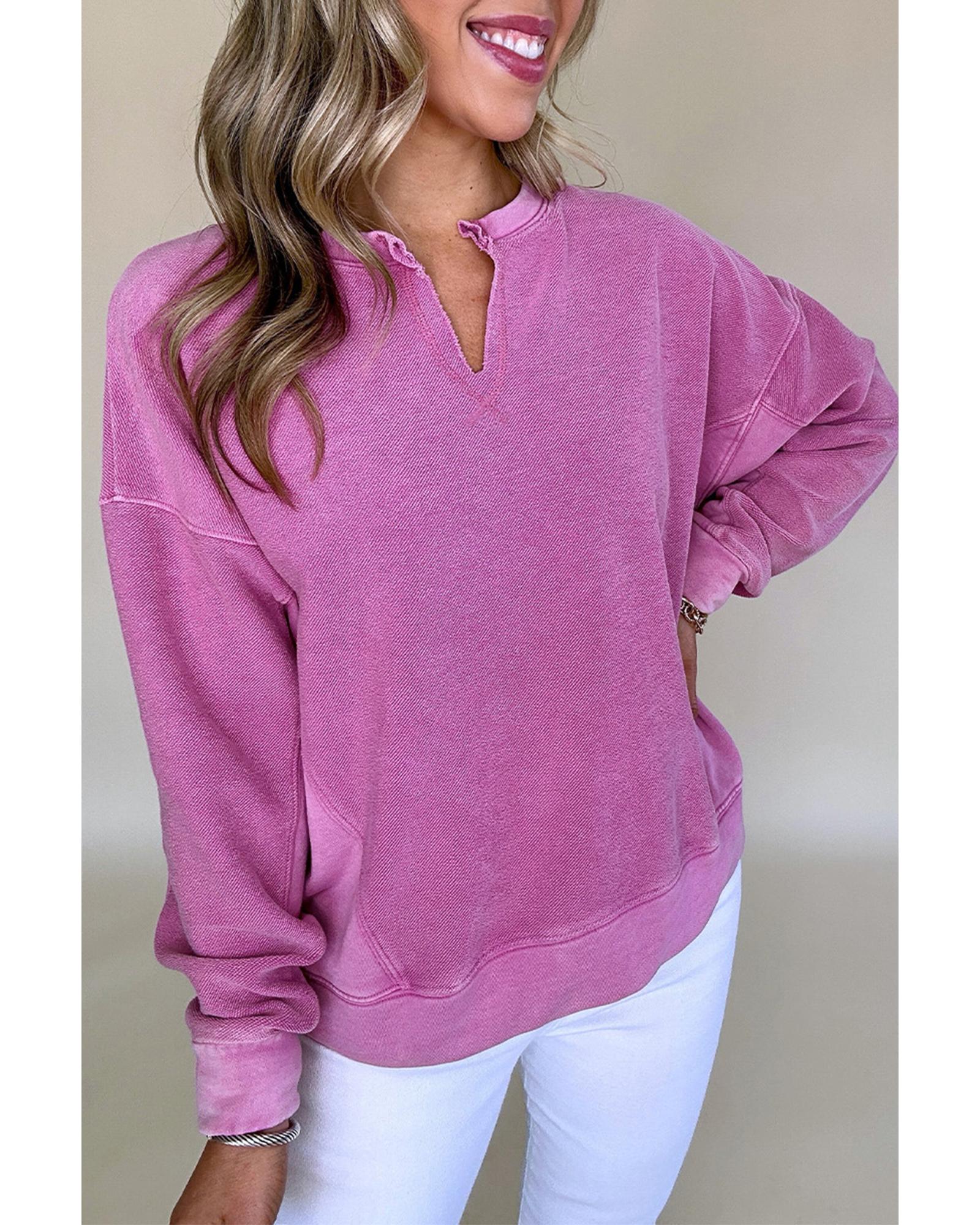 Bright Pink Solid Color Notched Neck Drop Shoulder Sweatshirt – M