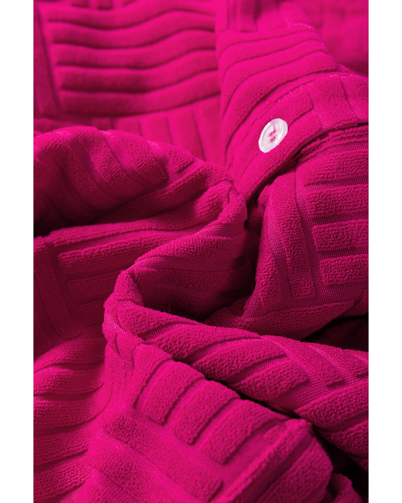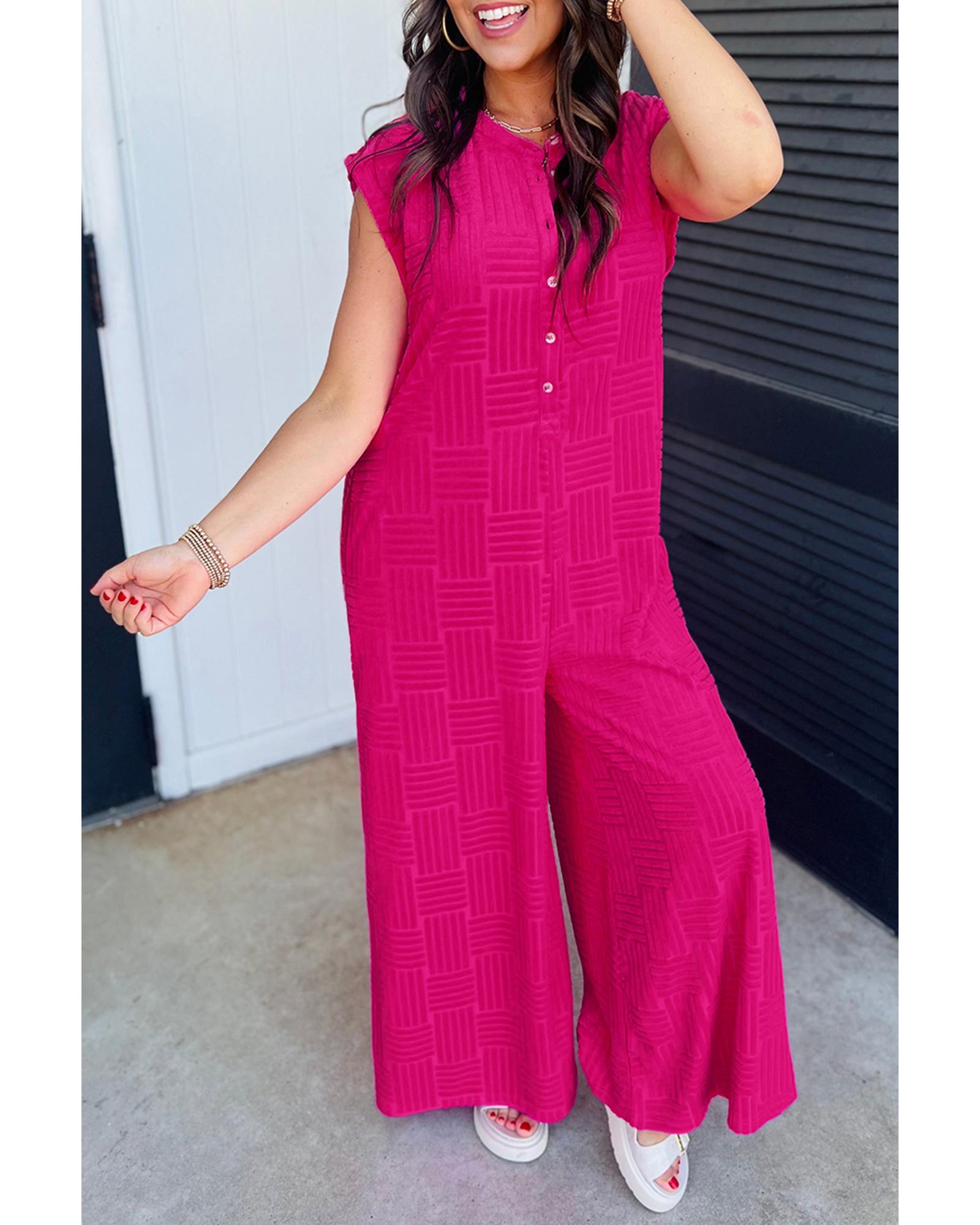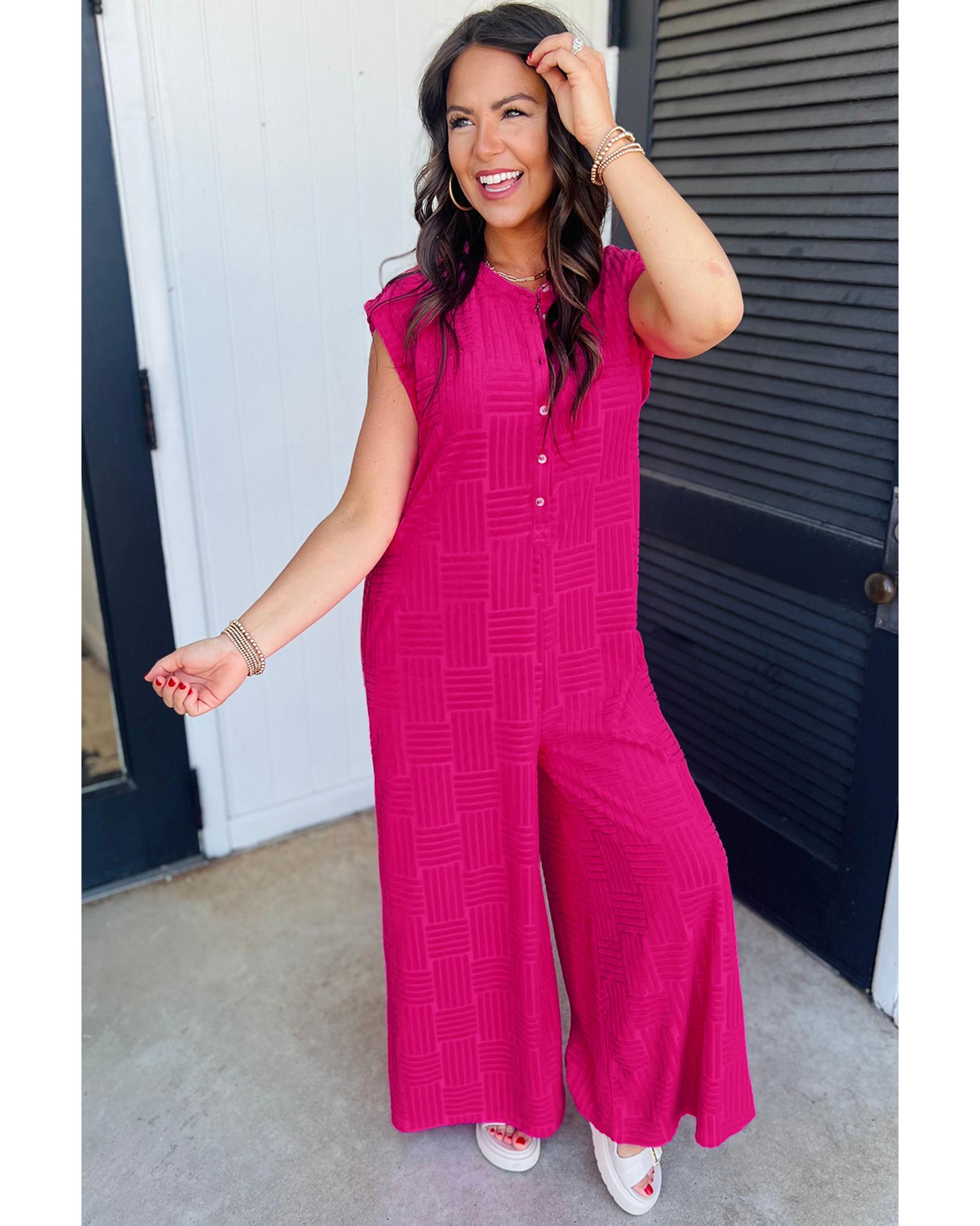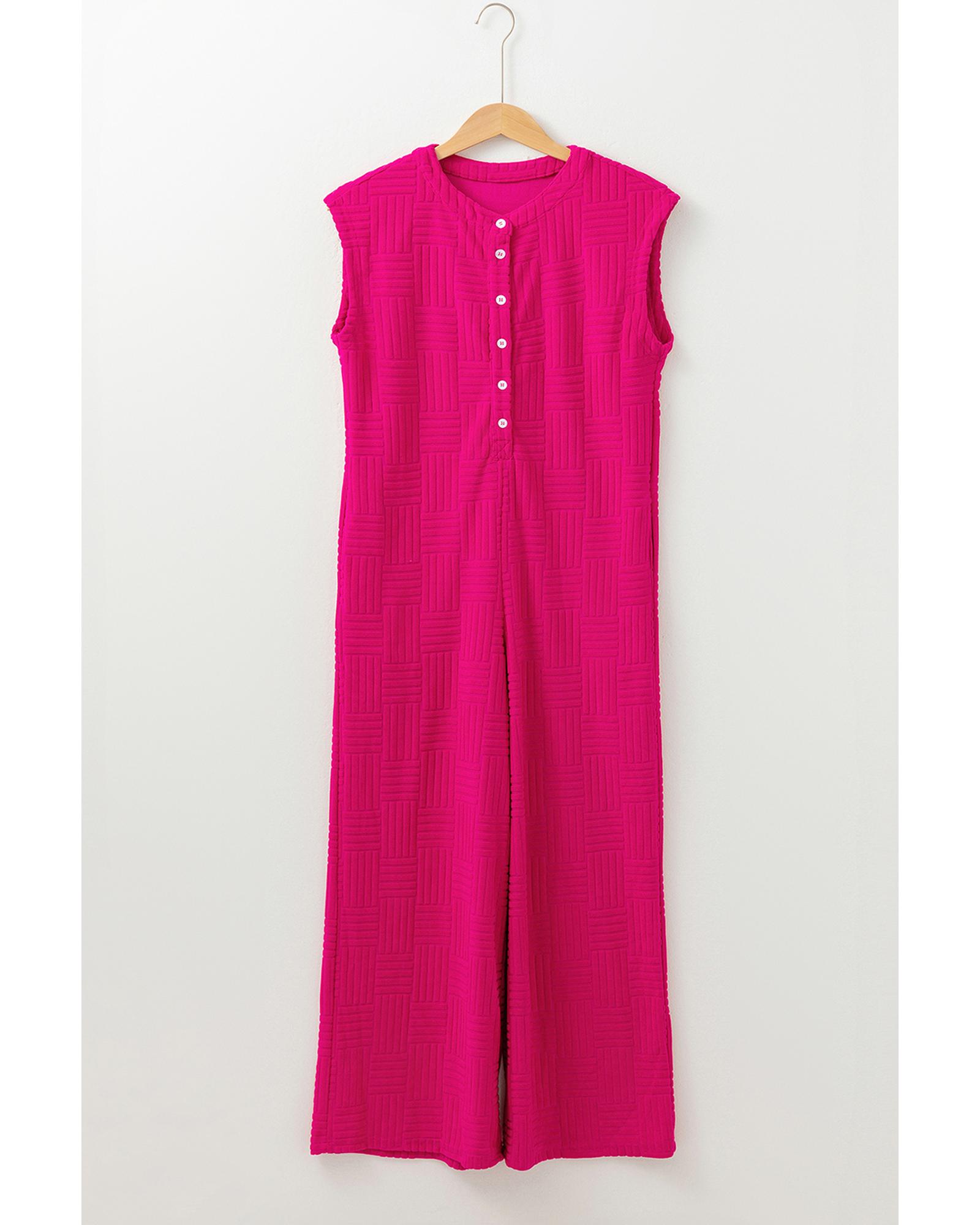 Bright Pink Terry Textured Sleeveless Button Front Wide Leg Jumpsuit – M