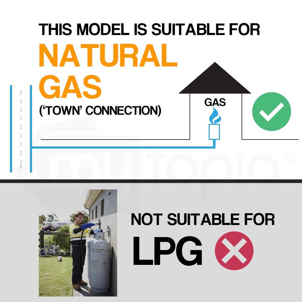 • NOTE: THIS MODEL IS ONLY SUITABLE FOR USE WITH A NATURAL GAS ‘TOWN’ CONNECTION
