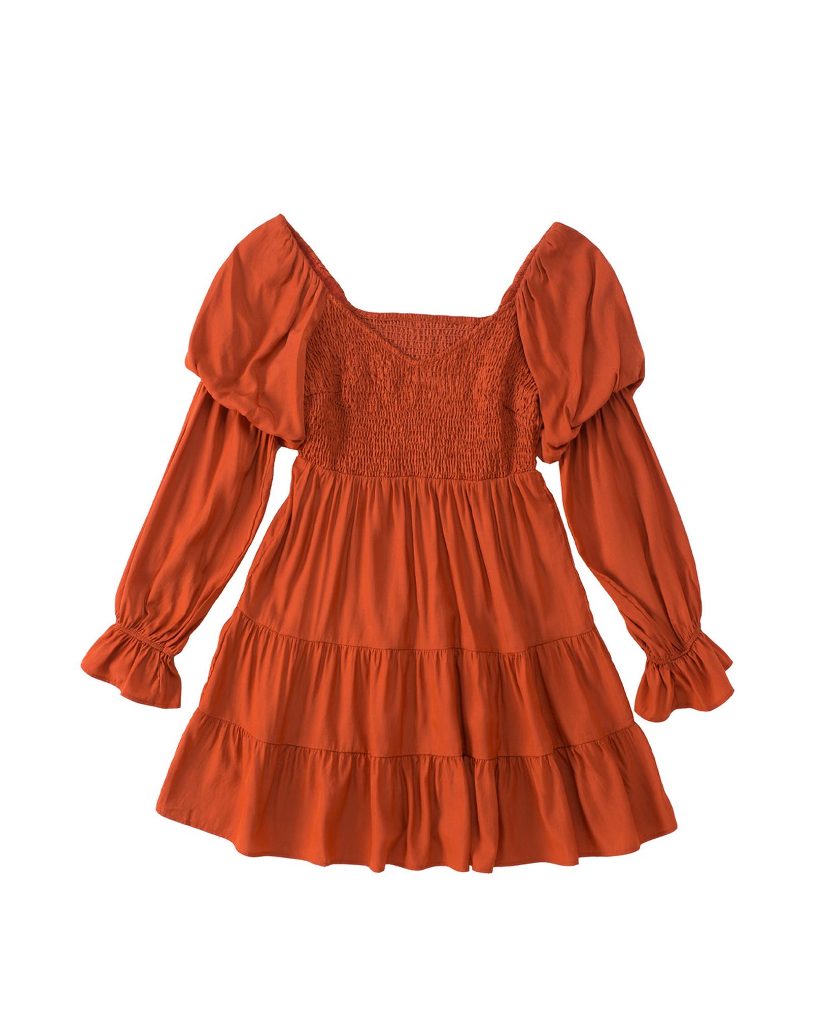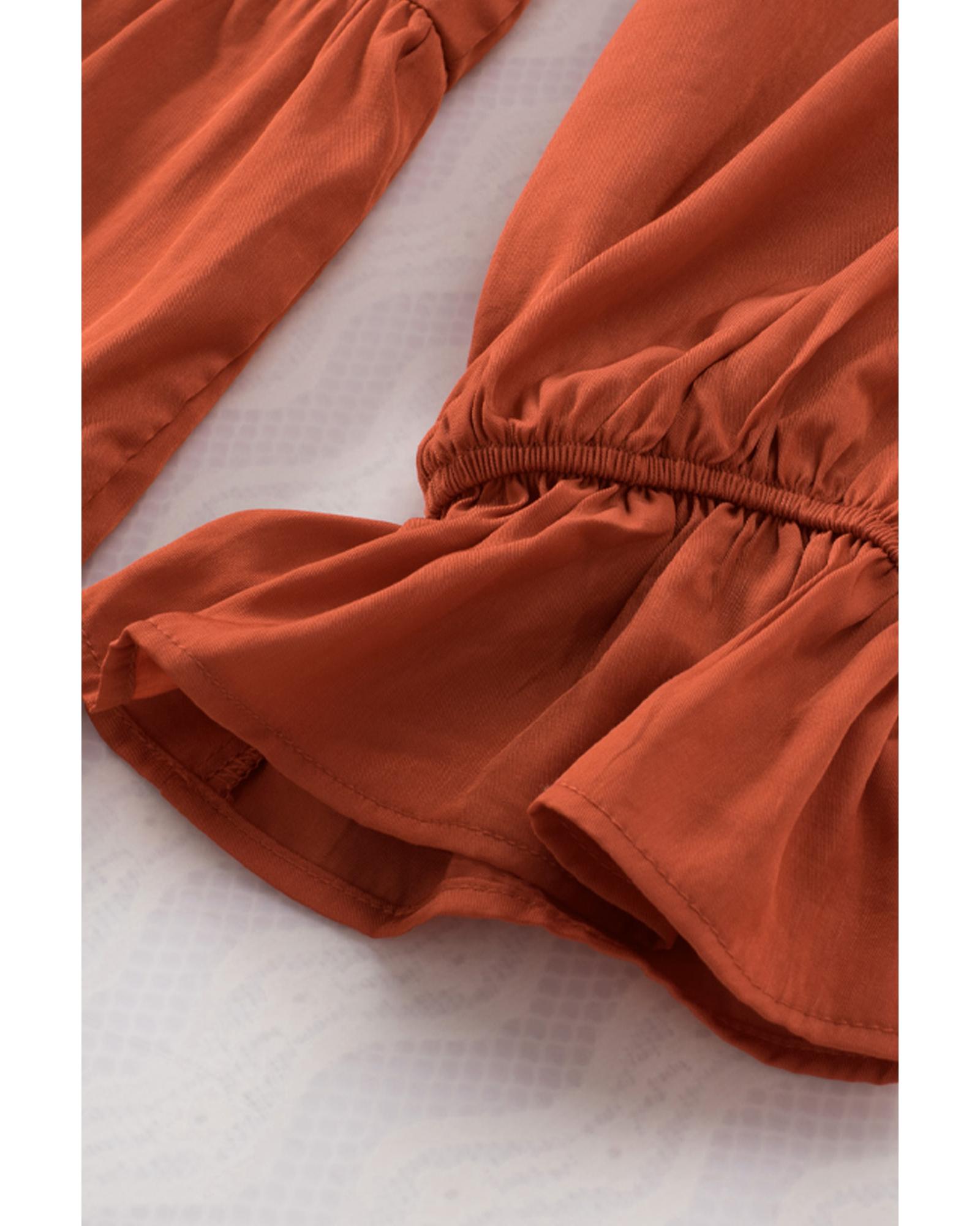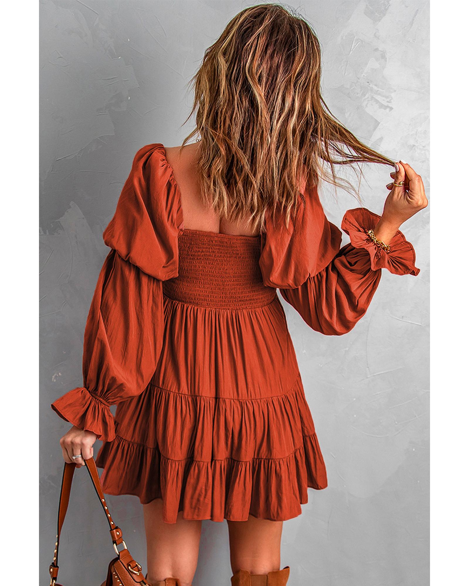 Brown Boho Solid Shirred Ruffle Mini Dress – L