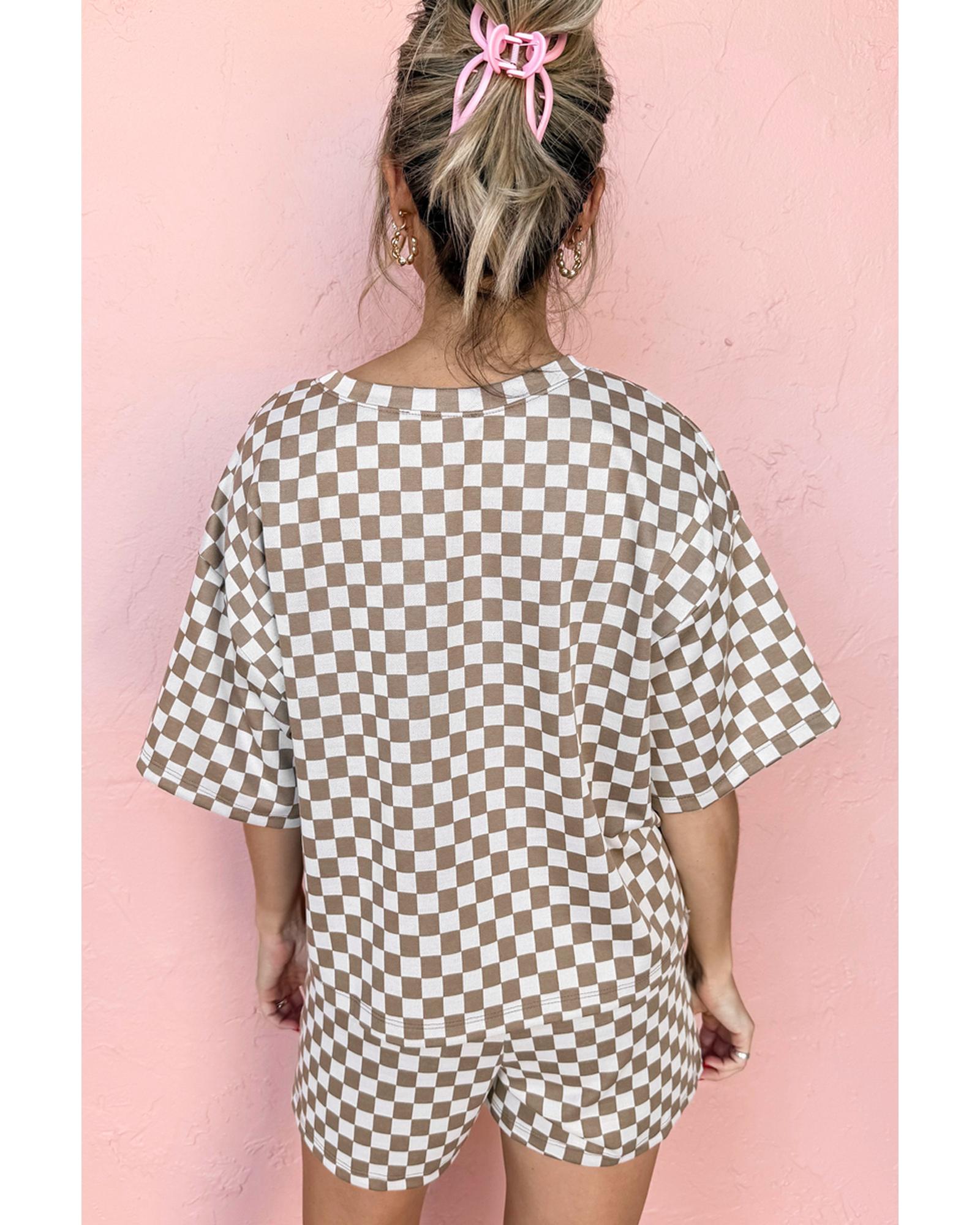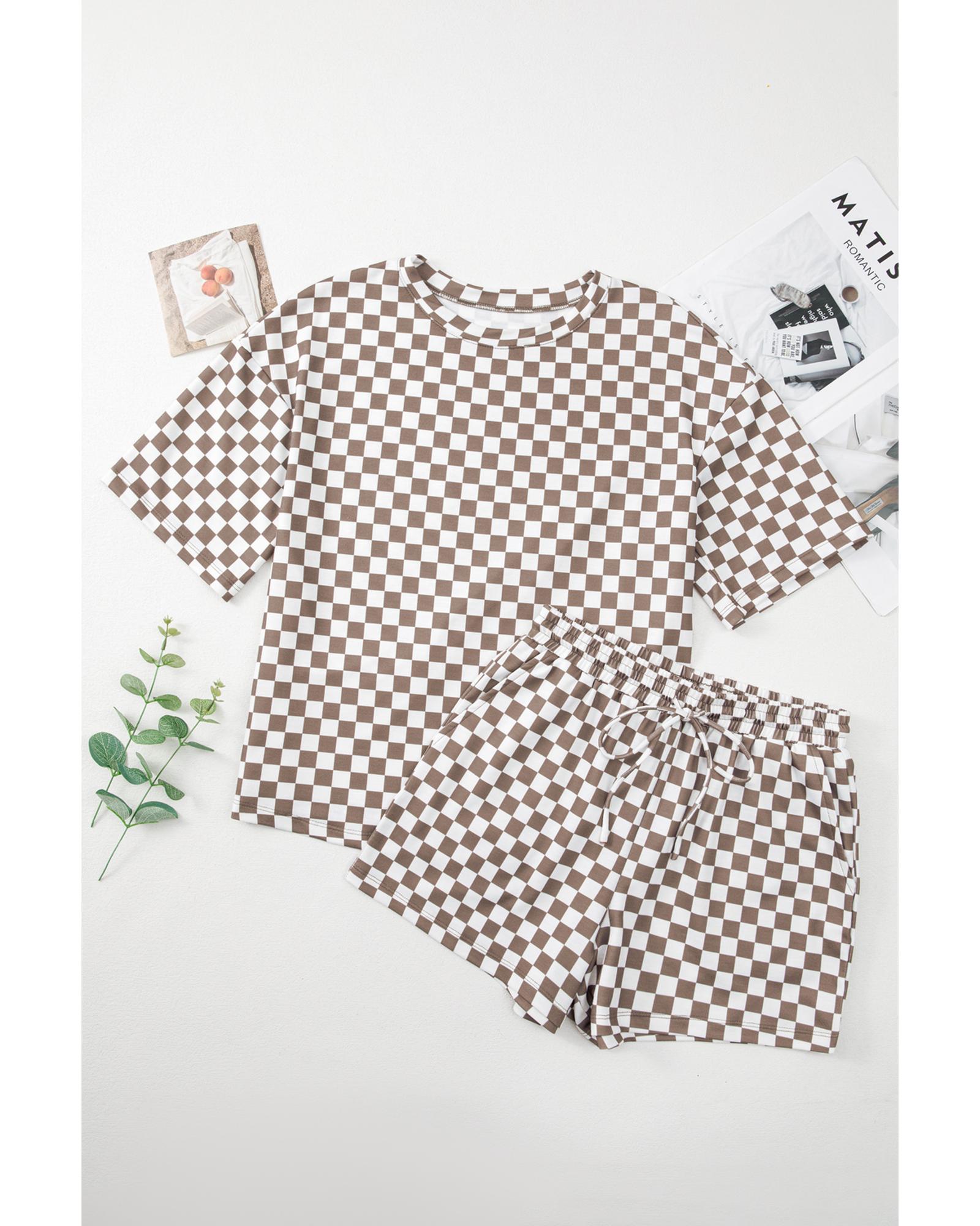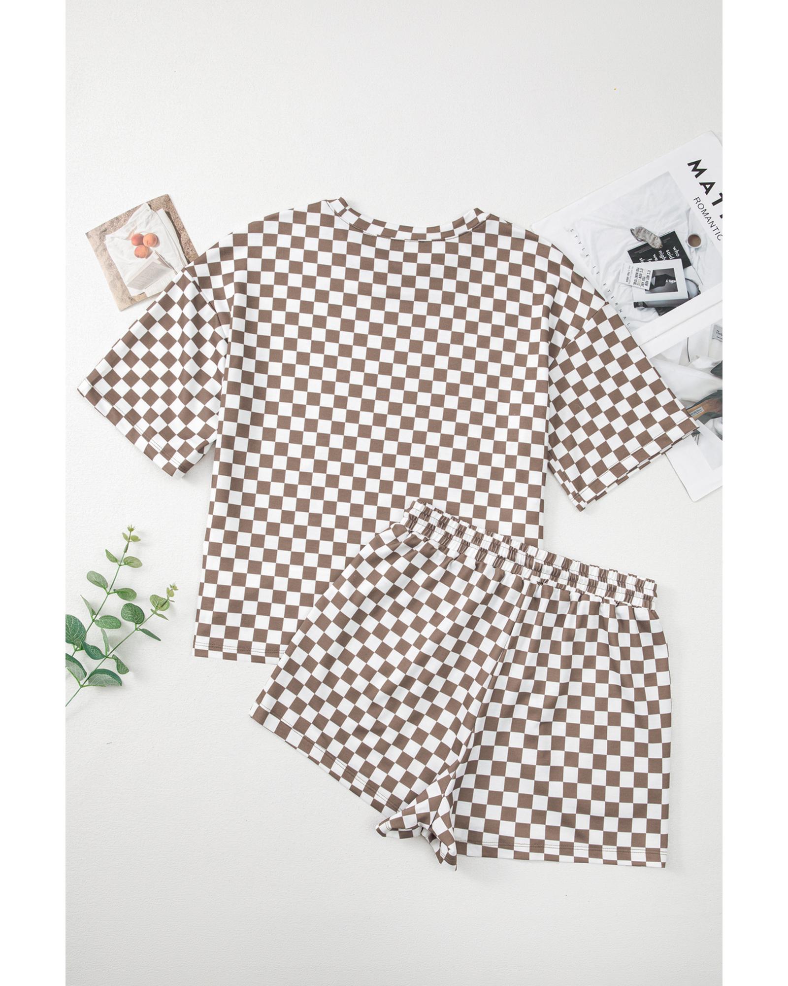 Brown Checkered Top and Short Casual 2pcs Set – S