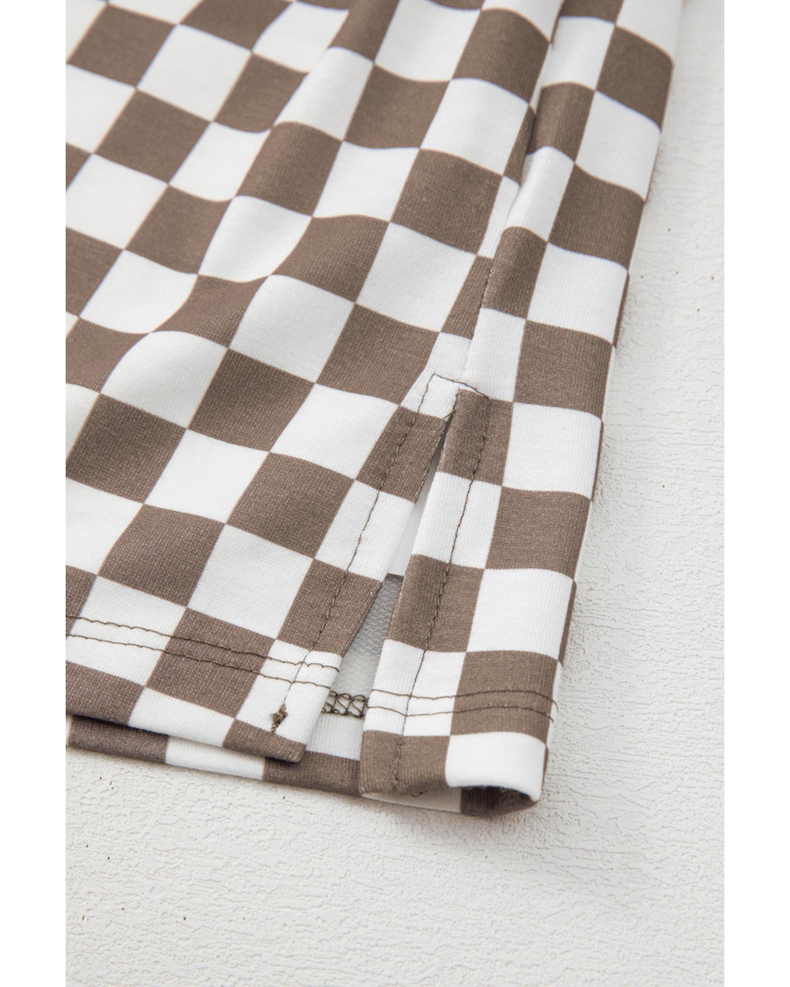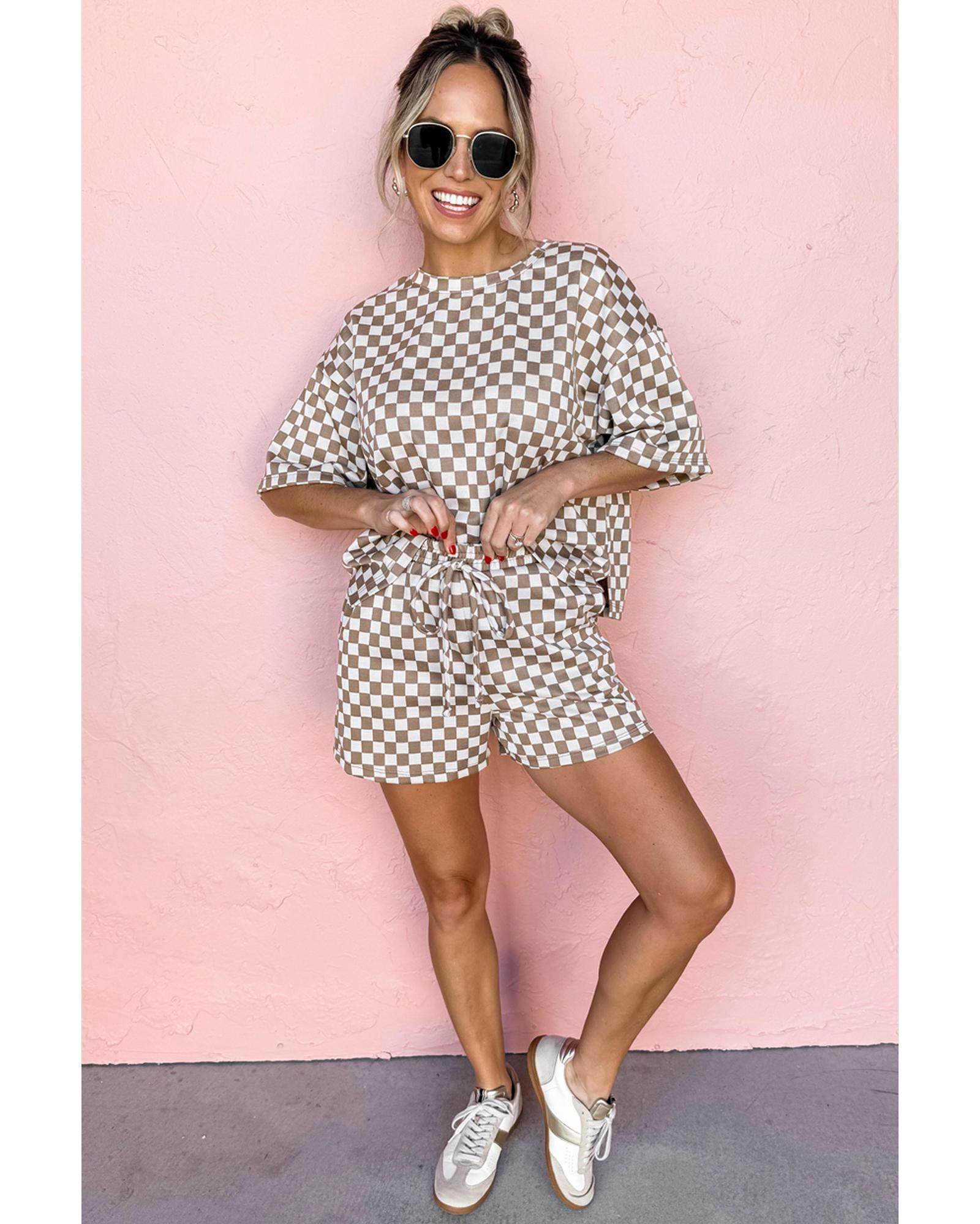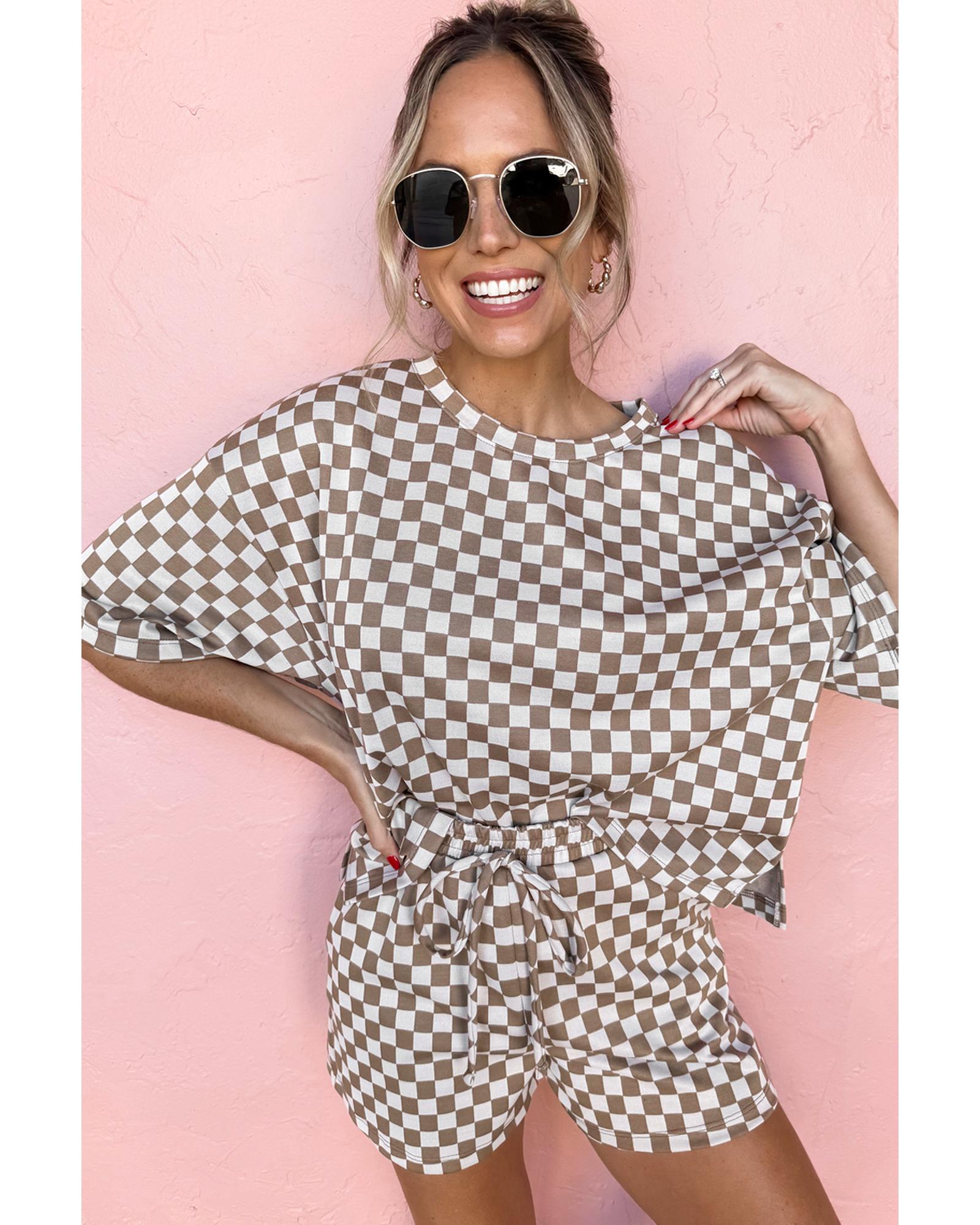 Brown Checkered Top and Short Casual 2pcs Set – S