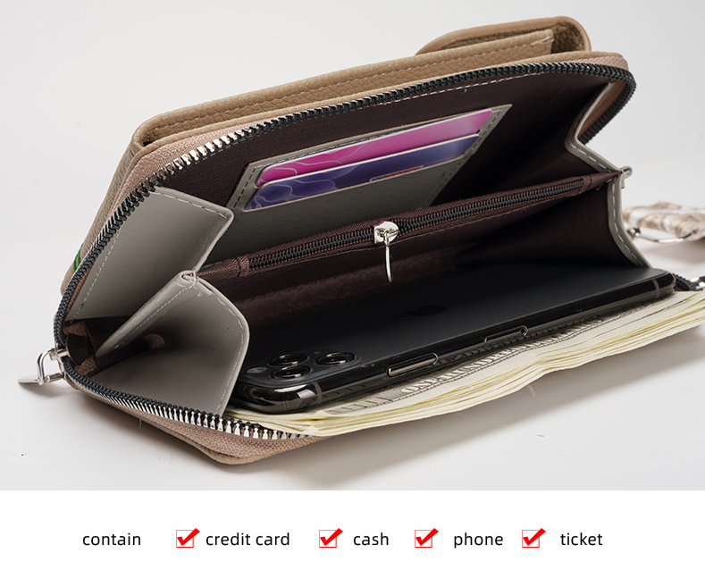 Brown Chic Floral Embroidered 2-in-1 Crossbody Phone Bag with Coin Purse