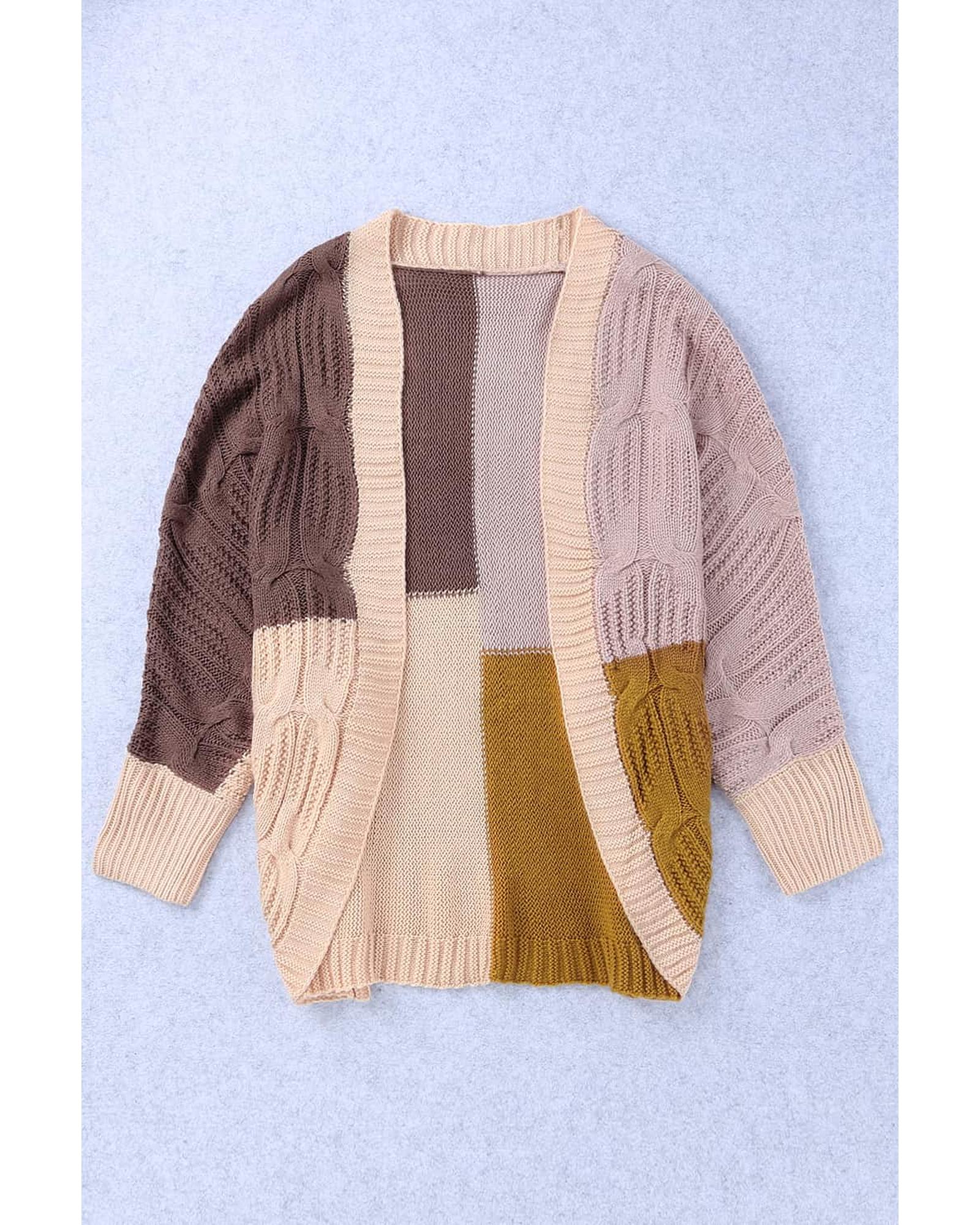 Brown Color Block Loose Open Front Knitted Cardigan – M