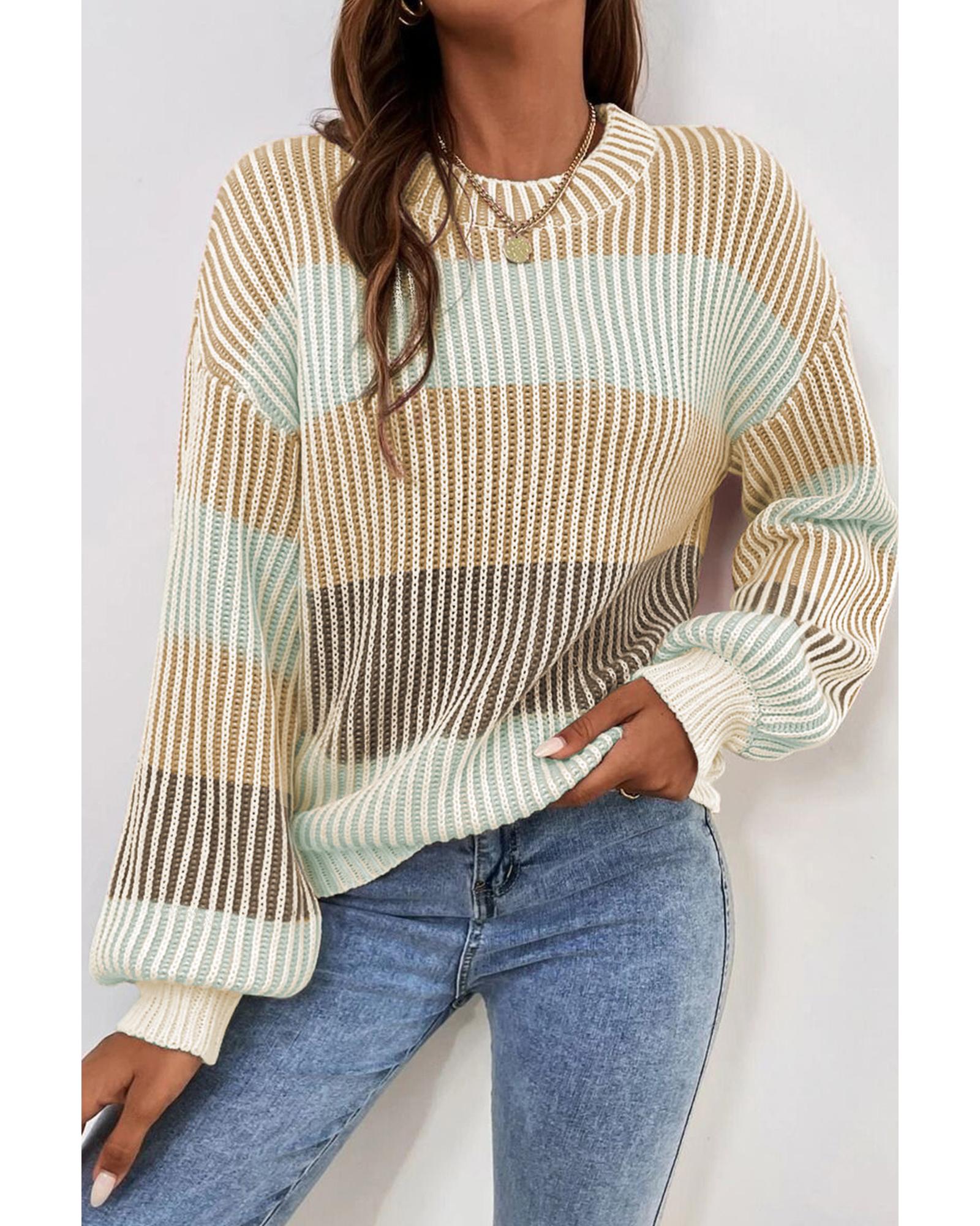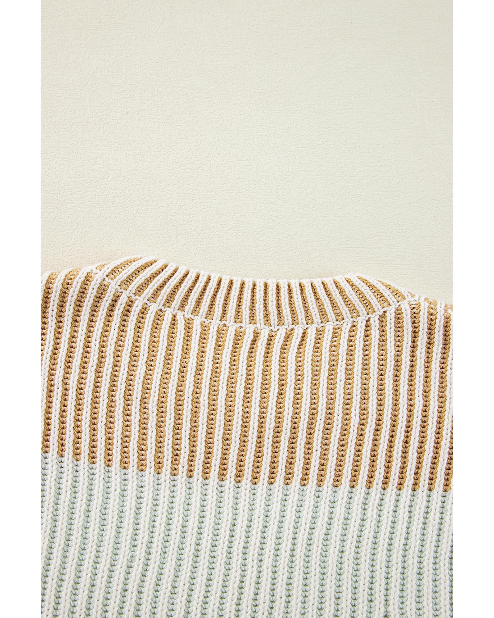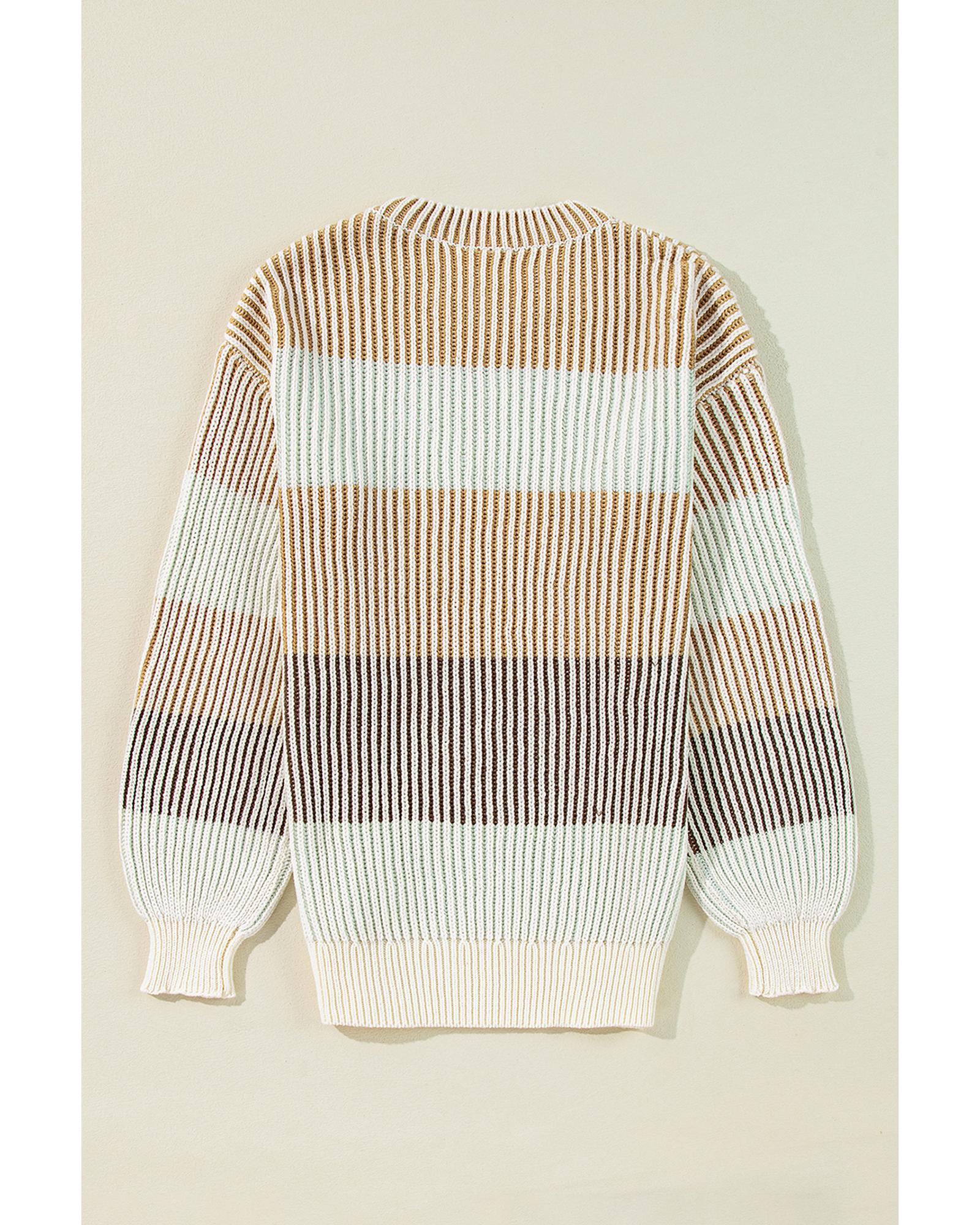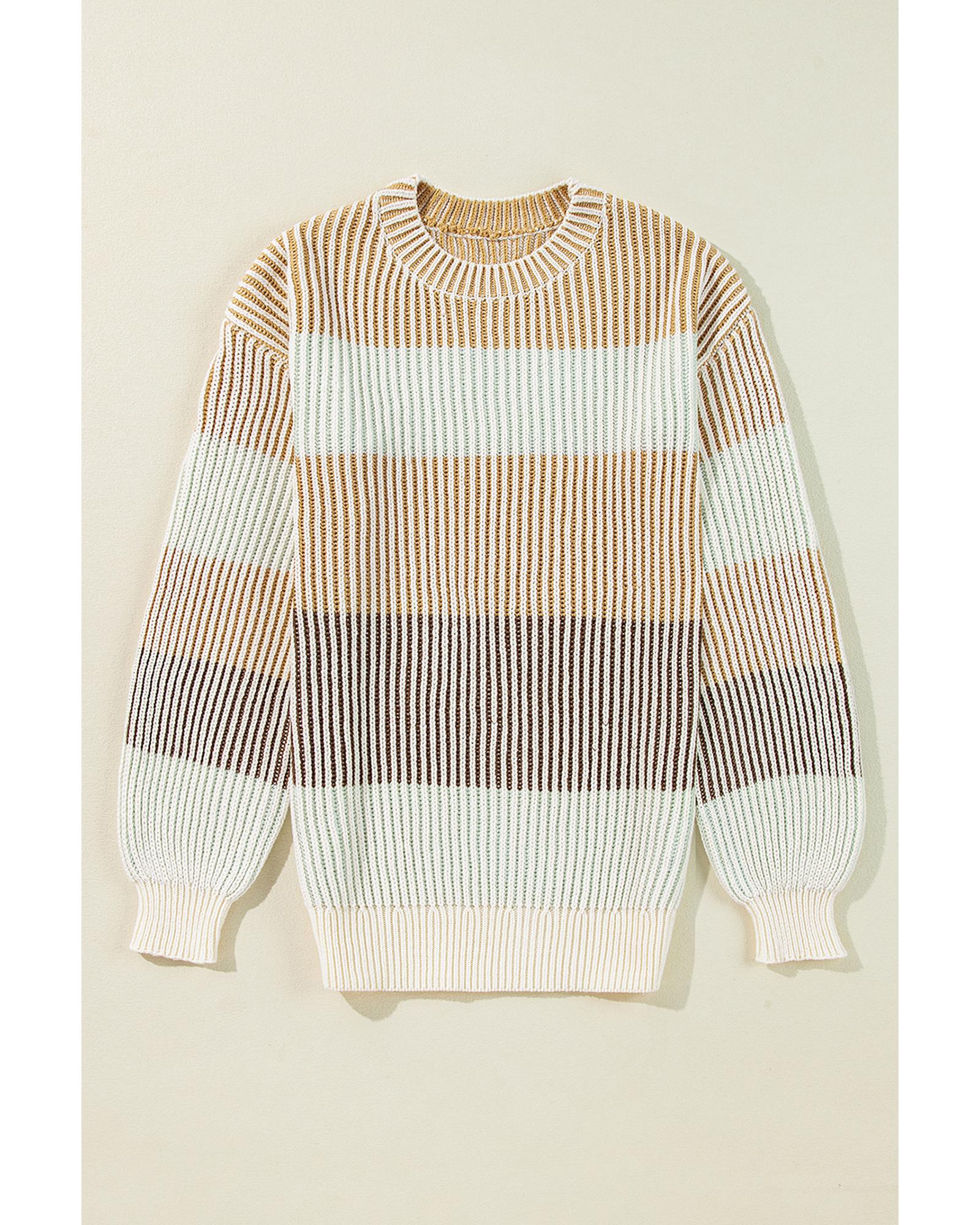 Brown Colorblock Textured Knit Bubble Sleeve Sweater – S