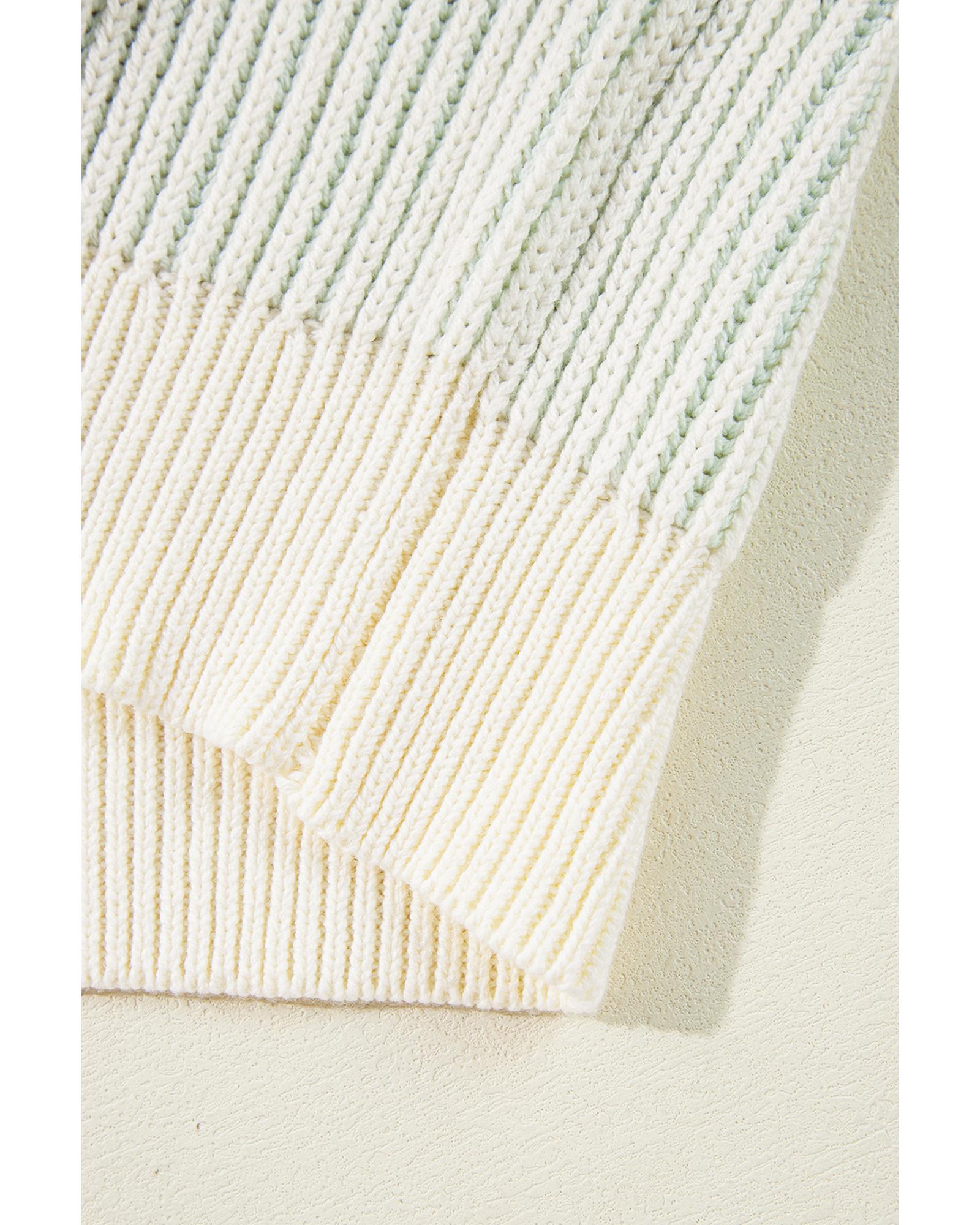Moonlight Jade Colorblock Contrasting Edge Crewneck Sweater - L