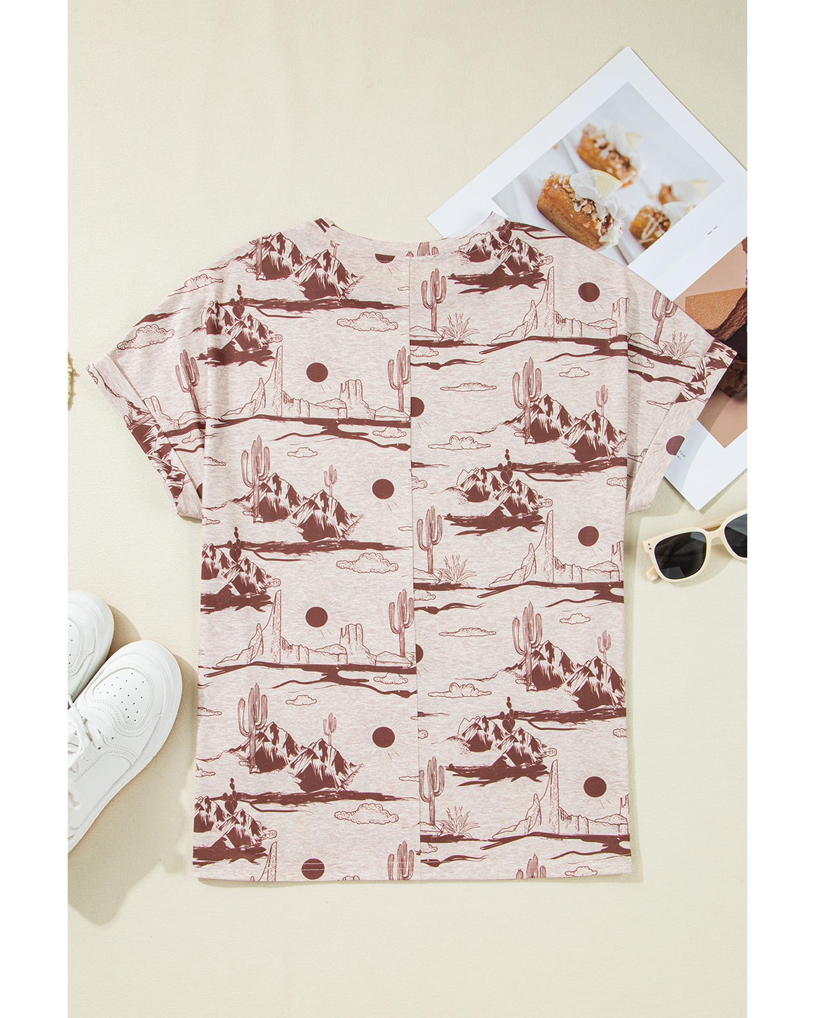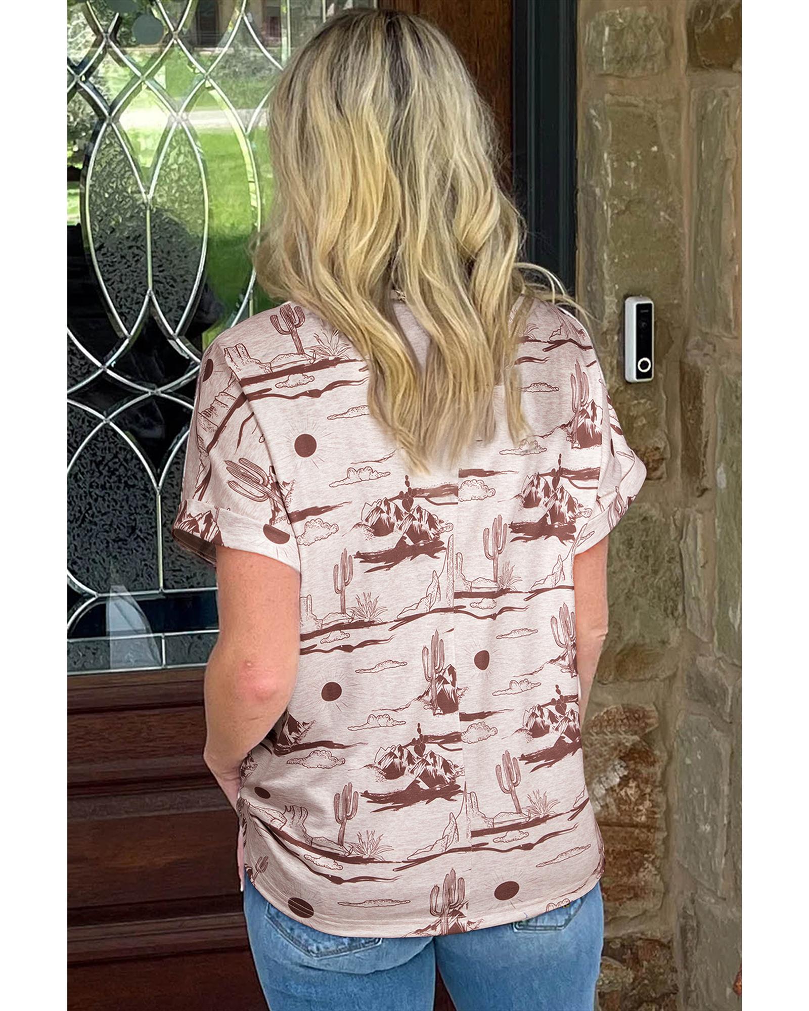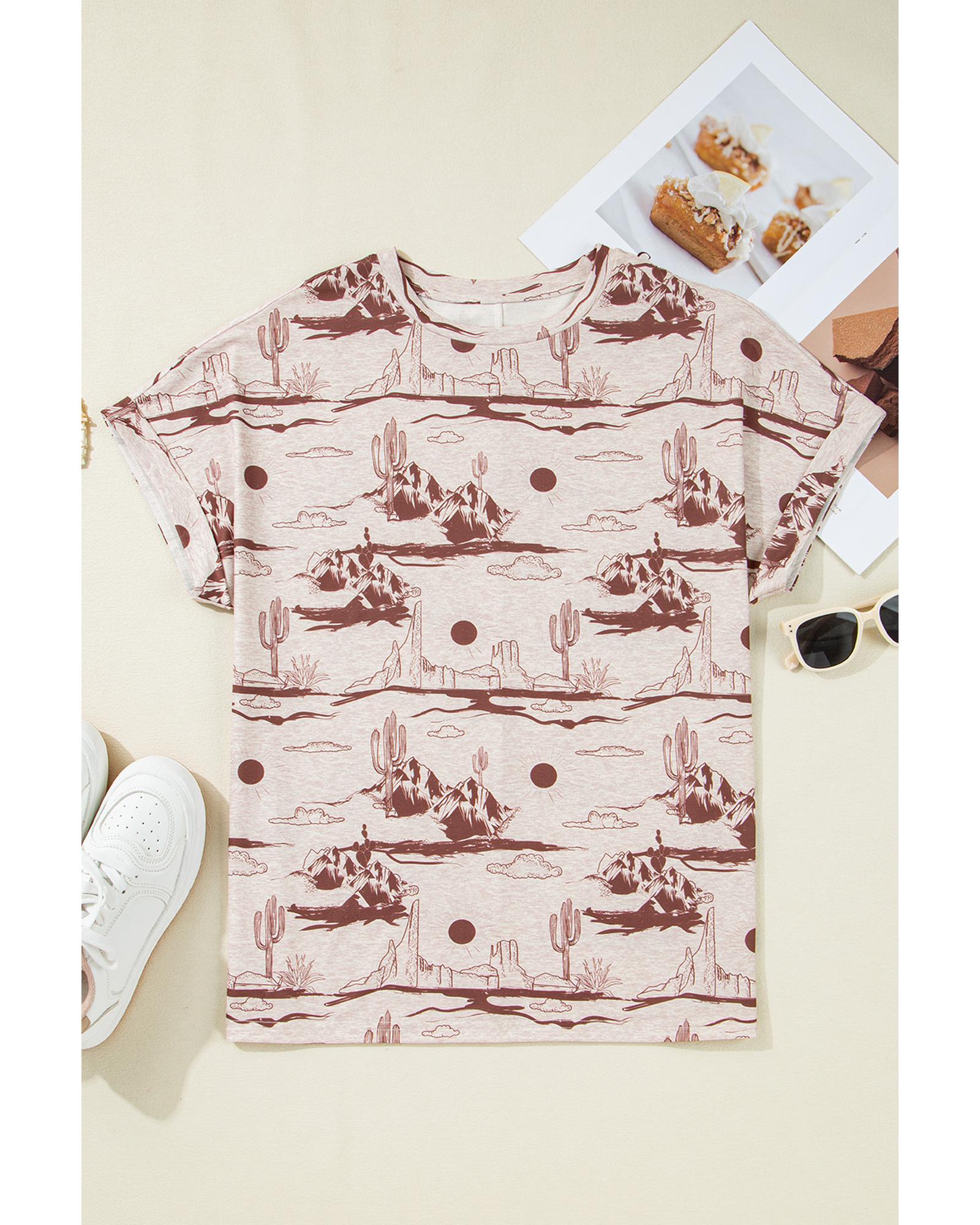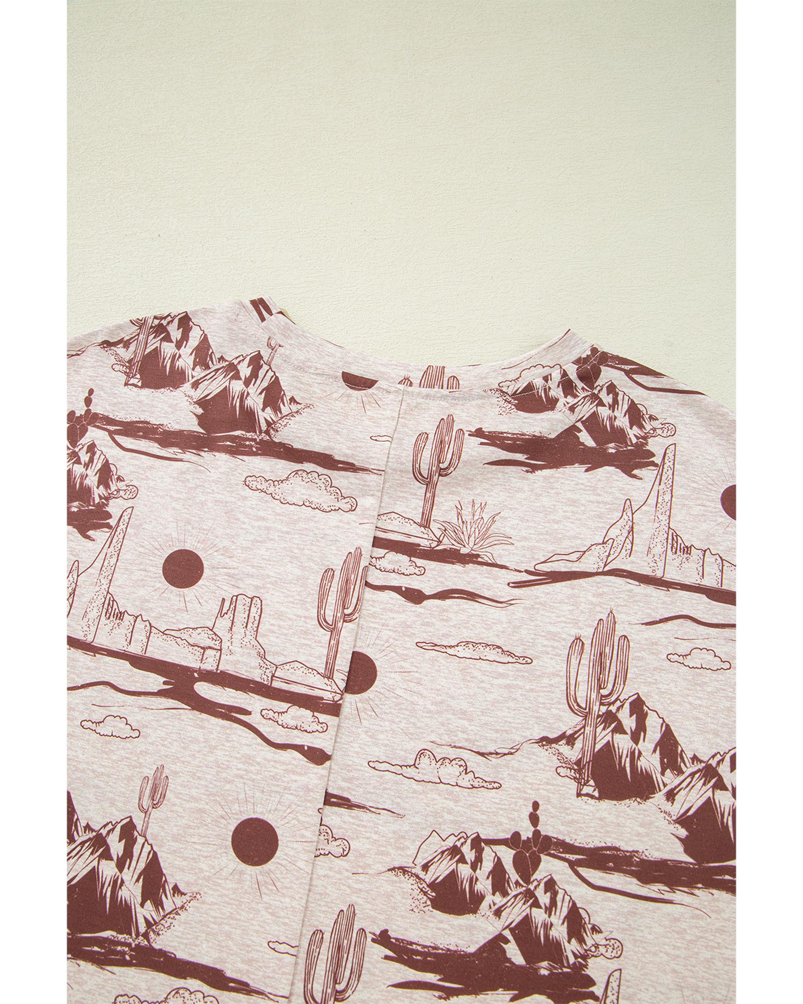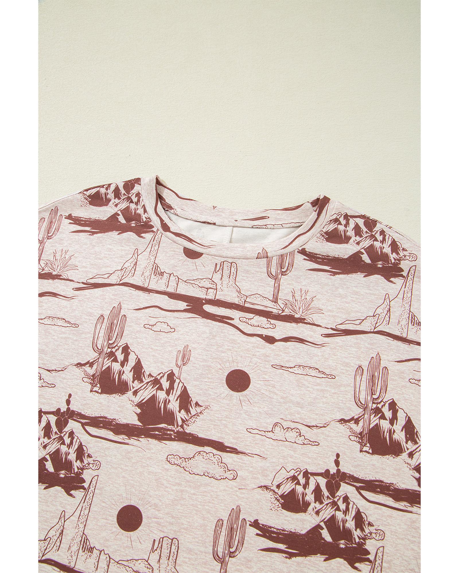 - Brown Desert Sand Print Short Sleeve Knit Top