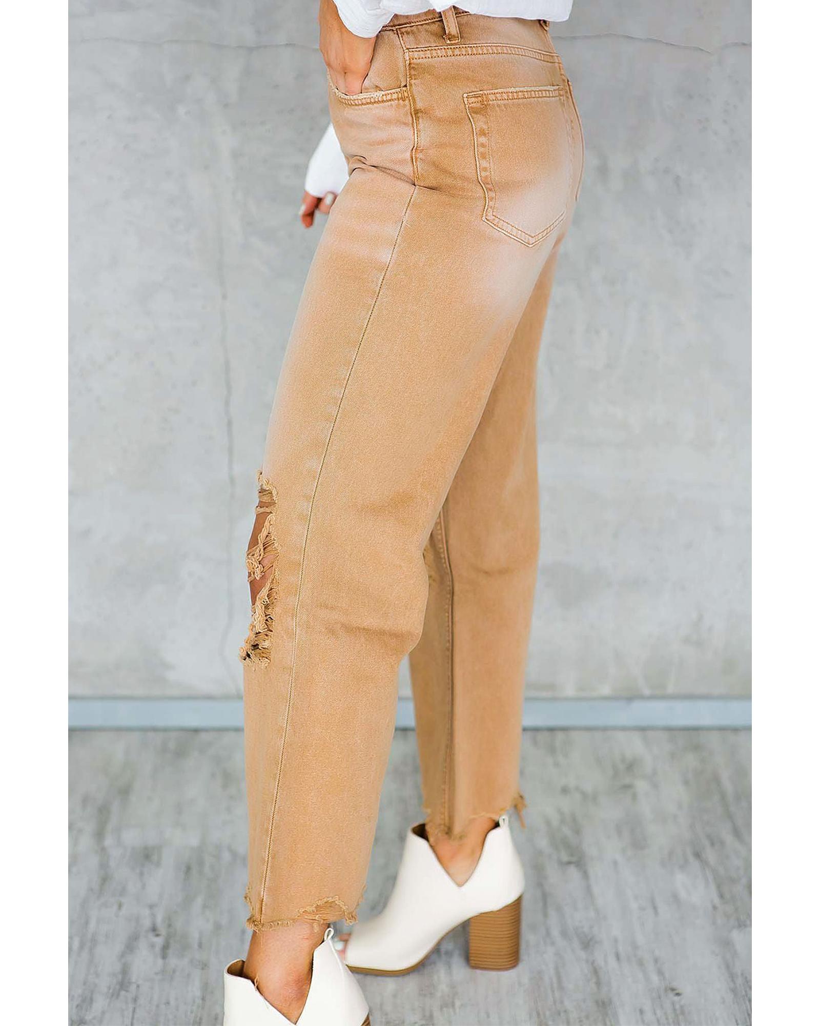 Brown Distressed Hollow-out High Waist Cropped Flare Jeans – 12 US