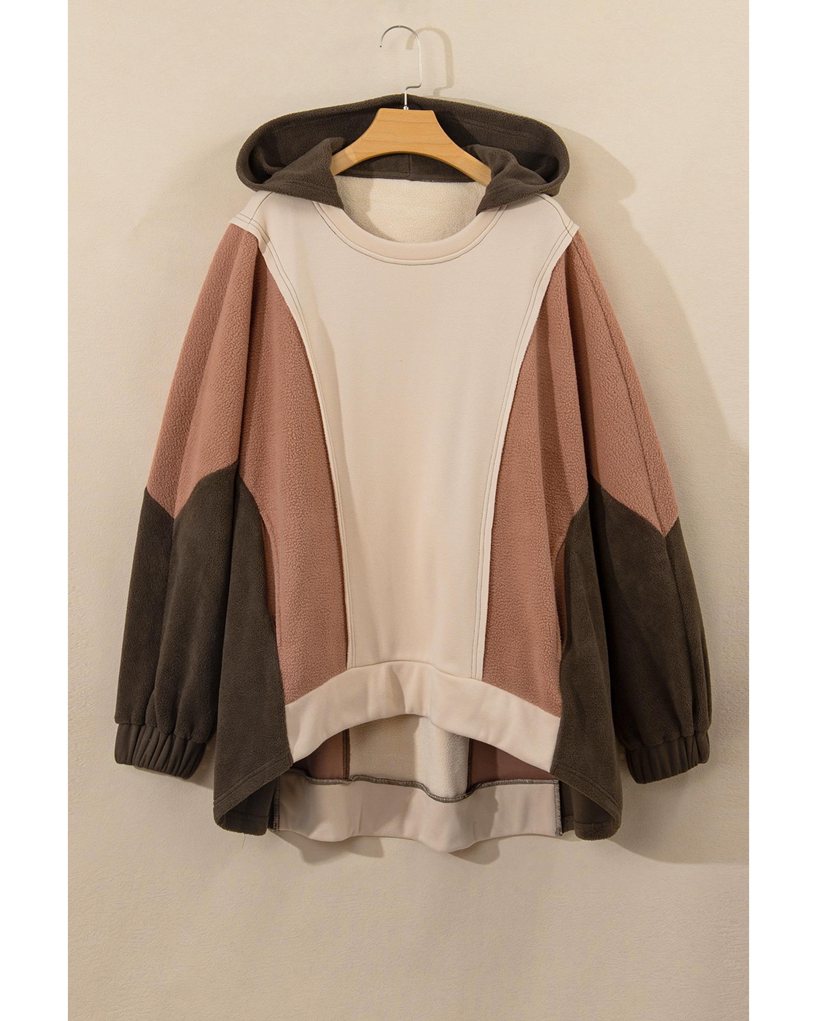 Brown Exposed Seam Colorblock Plus Size Hoodie – 1X