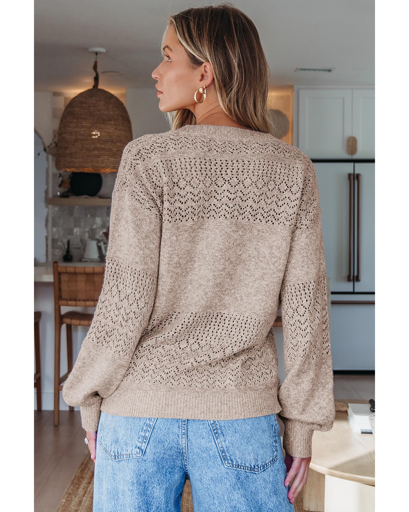 Brown Eyelet Pattern Detail V Neck Drop Shoulder Sweater – M