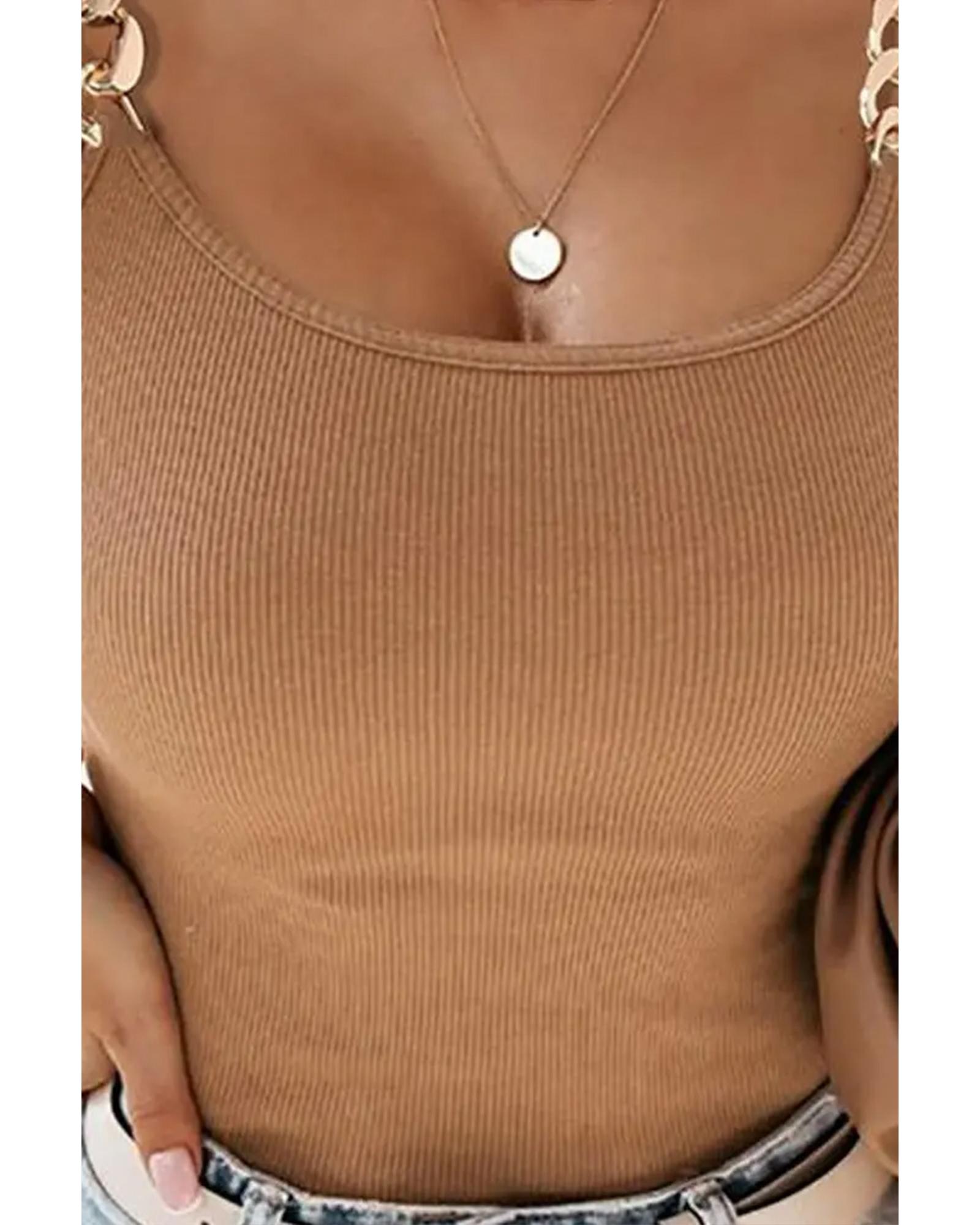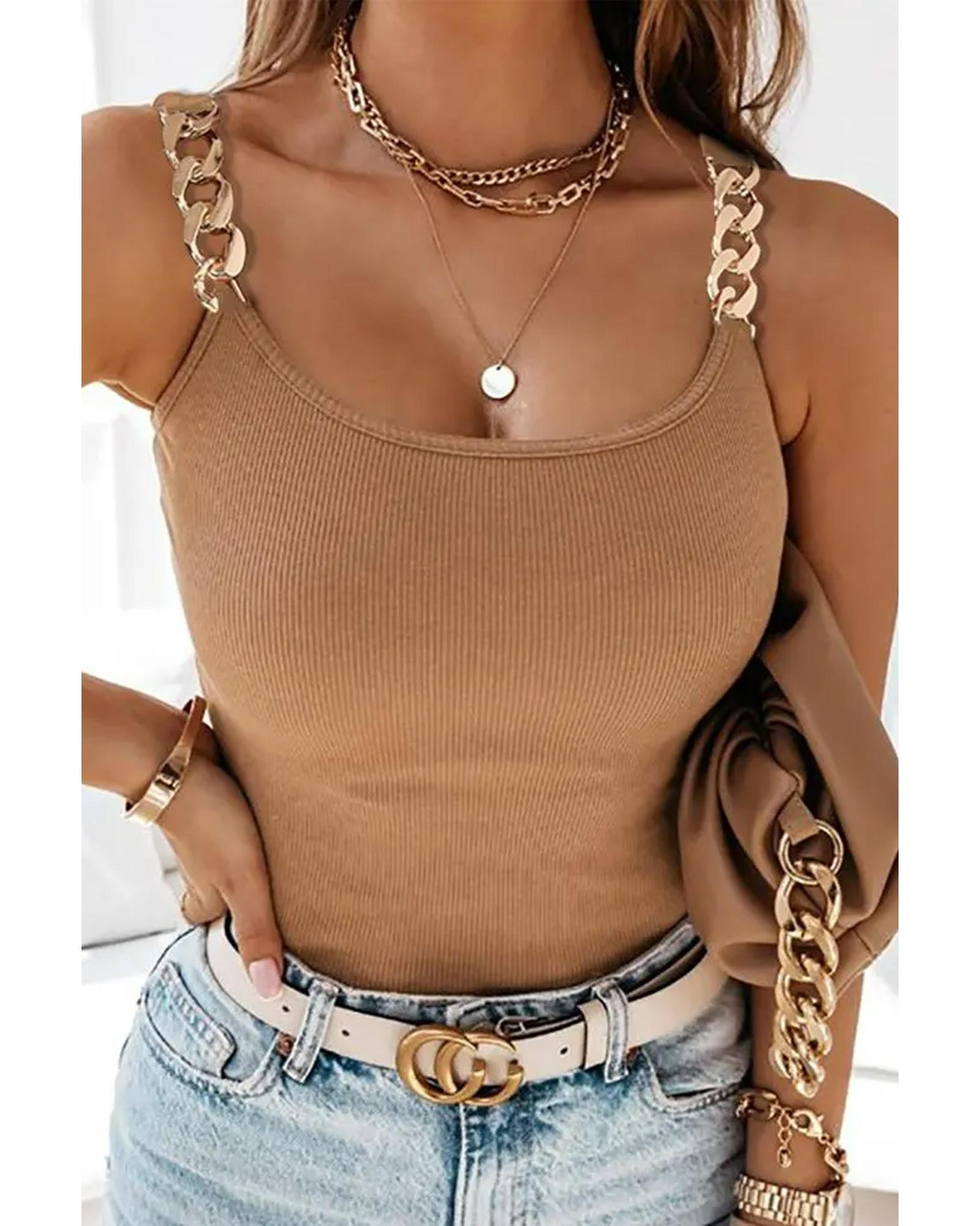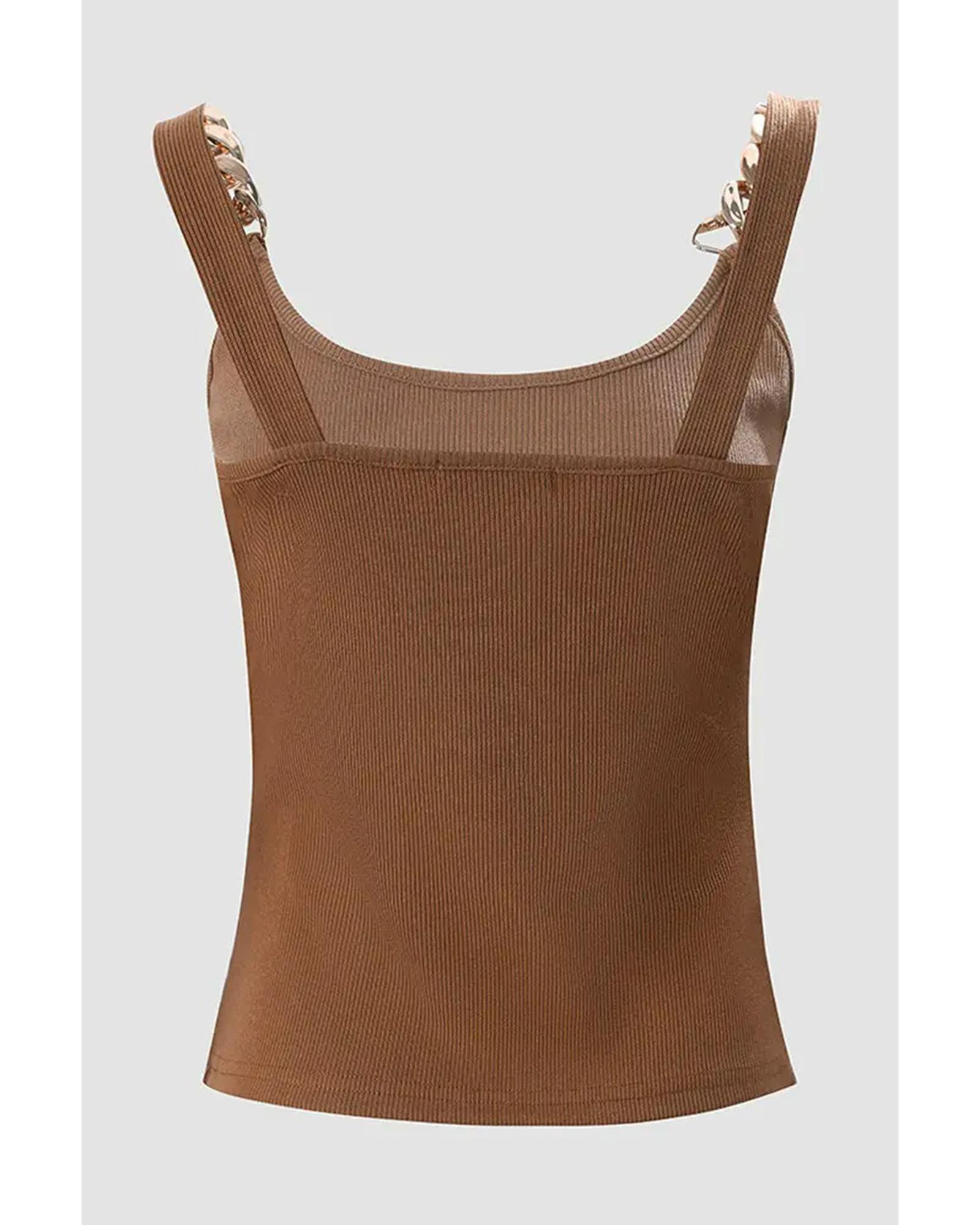 Brown Gold Chain Straps Rib Knit Tank Top – M