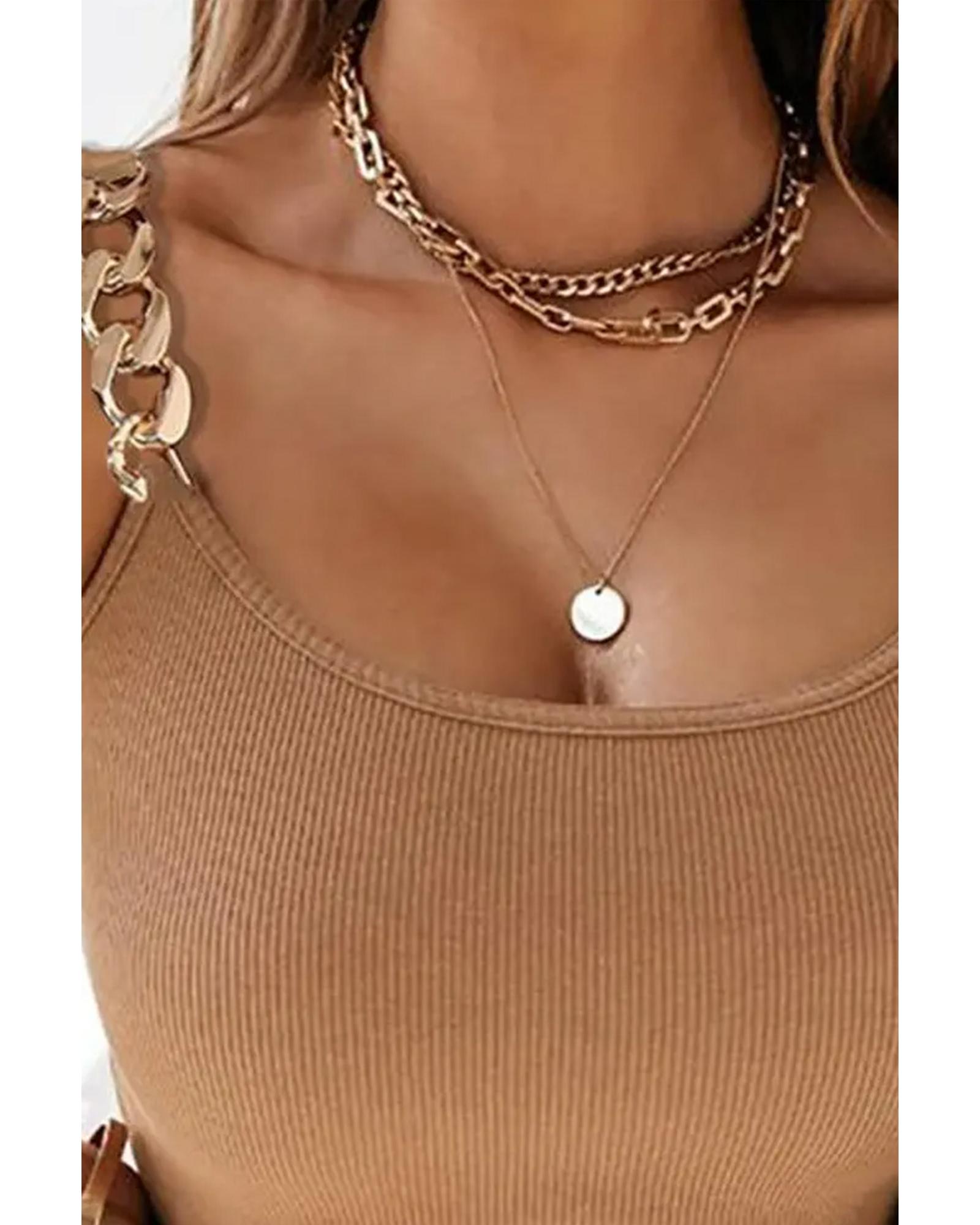 Brown Gold Chain Straps Rib Knit Tank Top - L