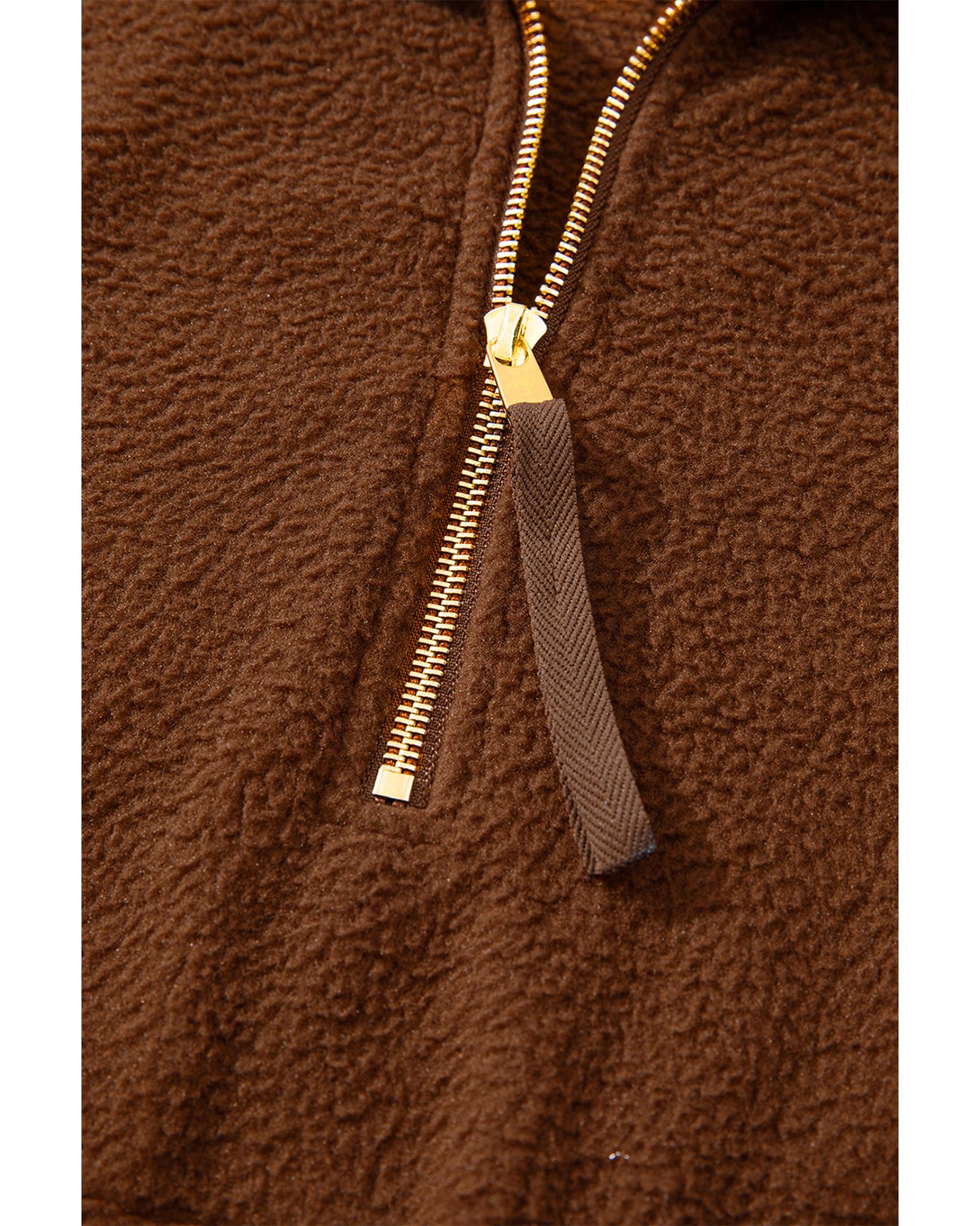 Brown Half Zip Fleece Pullover Sweatshirt – S