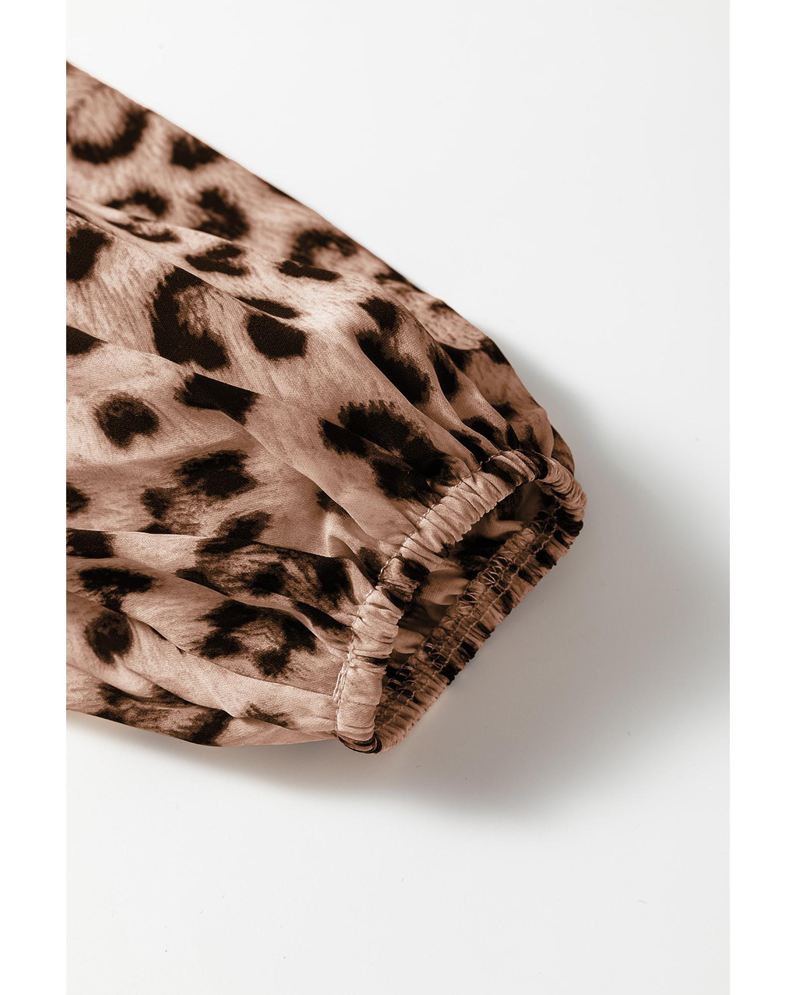 Brown Leopard Color Block V Neck Loose Fit Maxi Dress – M