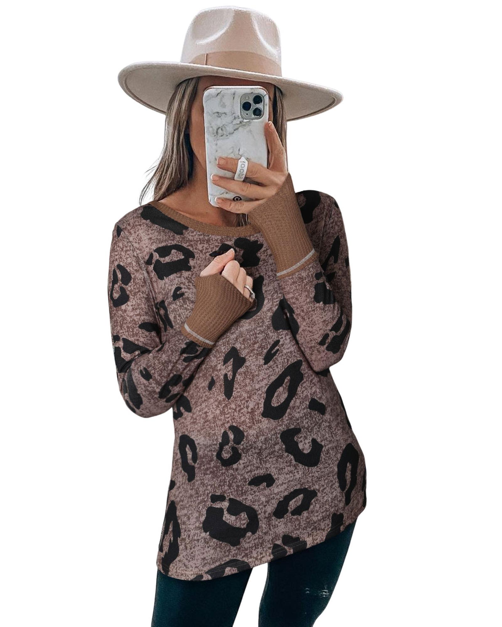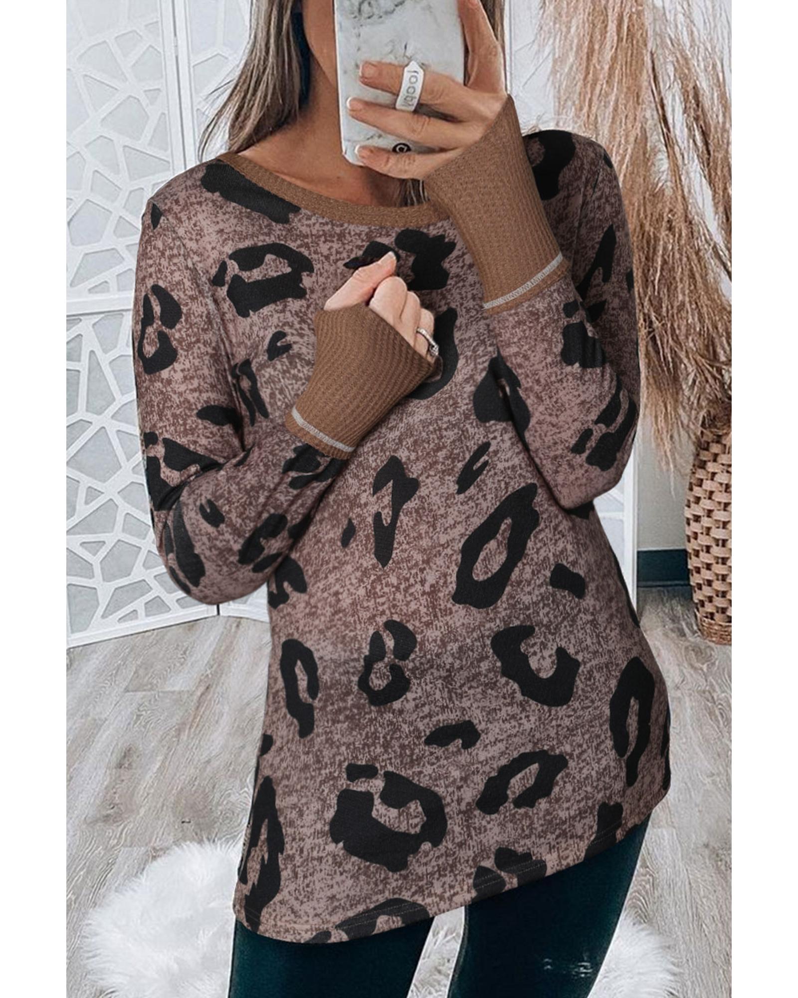 Brown Leopard Spling Thumbhole Long Sleeve Top – L