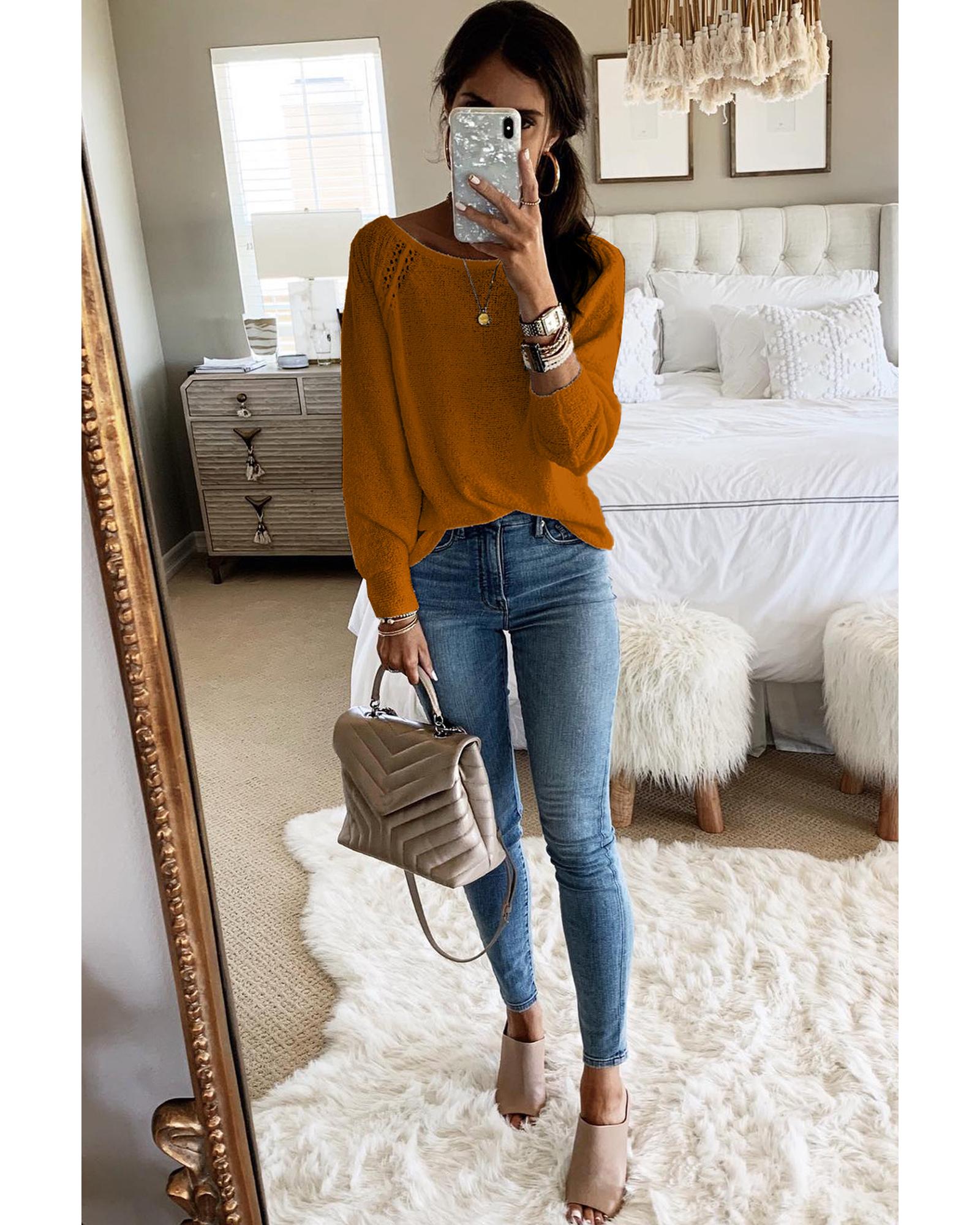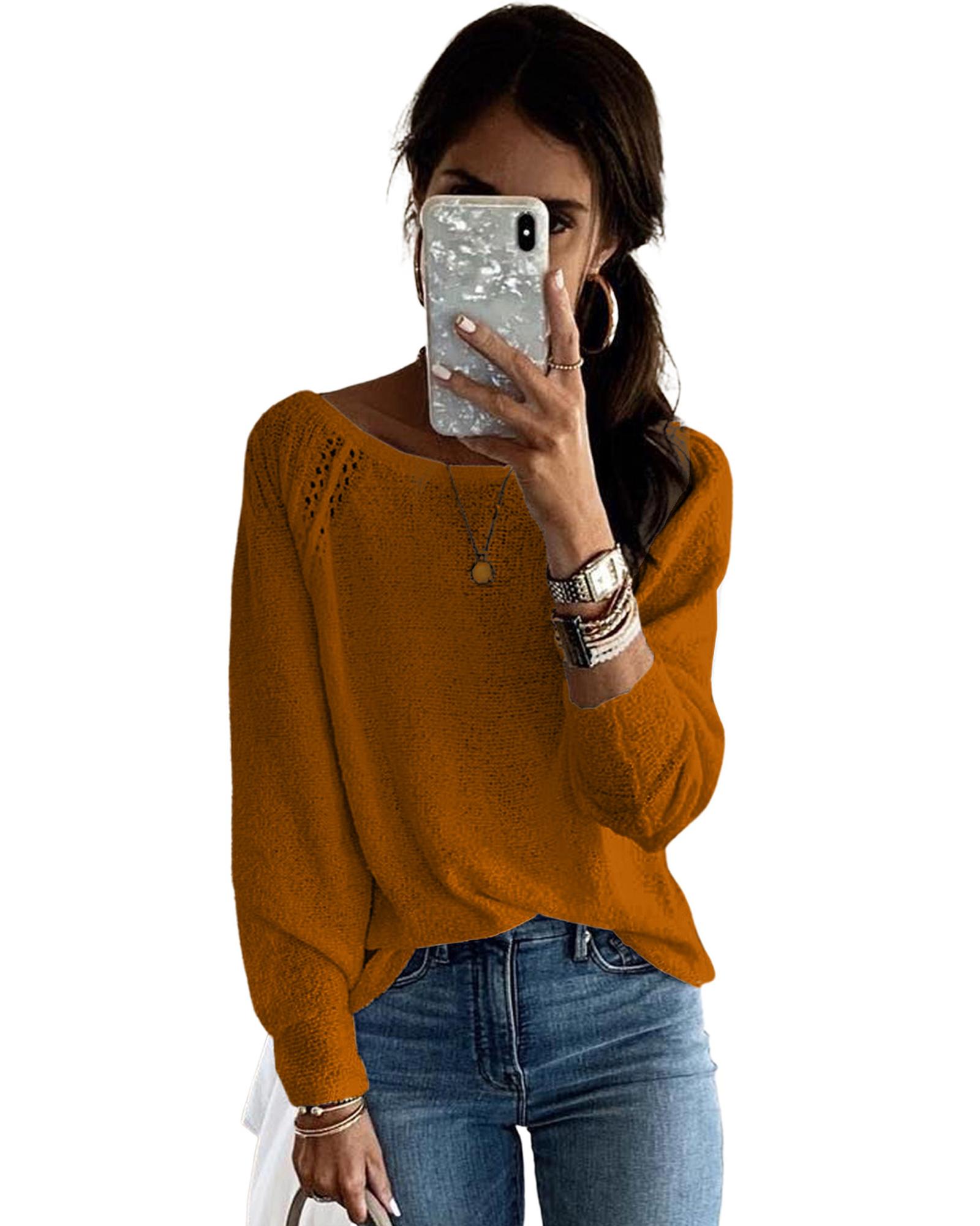 - Long Sleeve Cutout Shoulder Relaxed Sweater