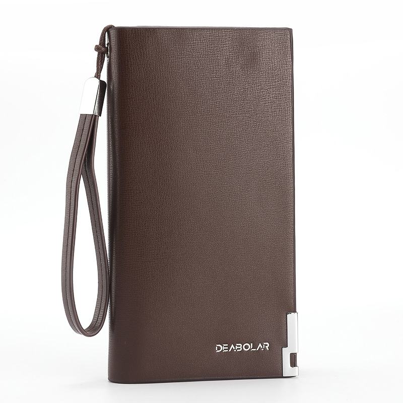 Brown Men’s Business Casual Long Wallet Clutch – PU Leather Large Capacity Phone & Card Holder with Wrist Strap