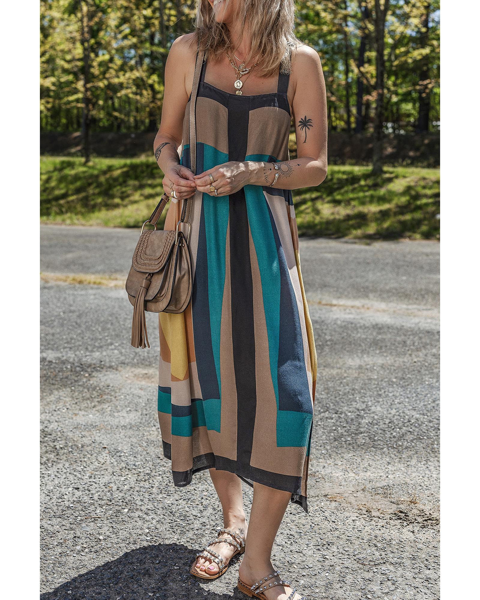 Brown Retro Geometric Printed Y Back Sleeveless Dress – M