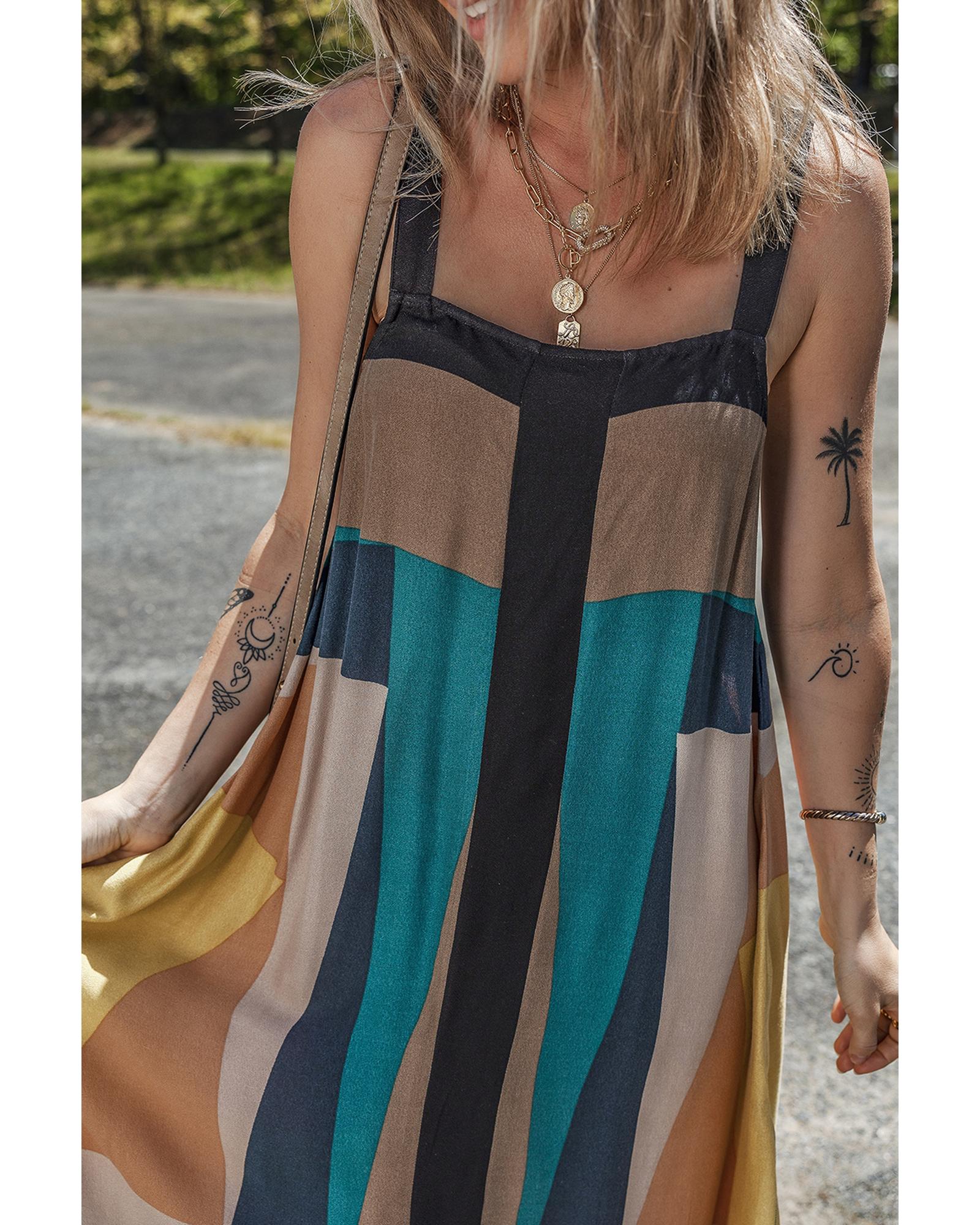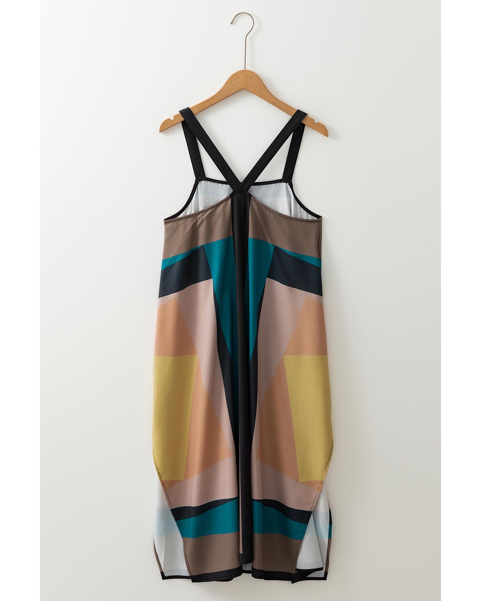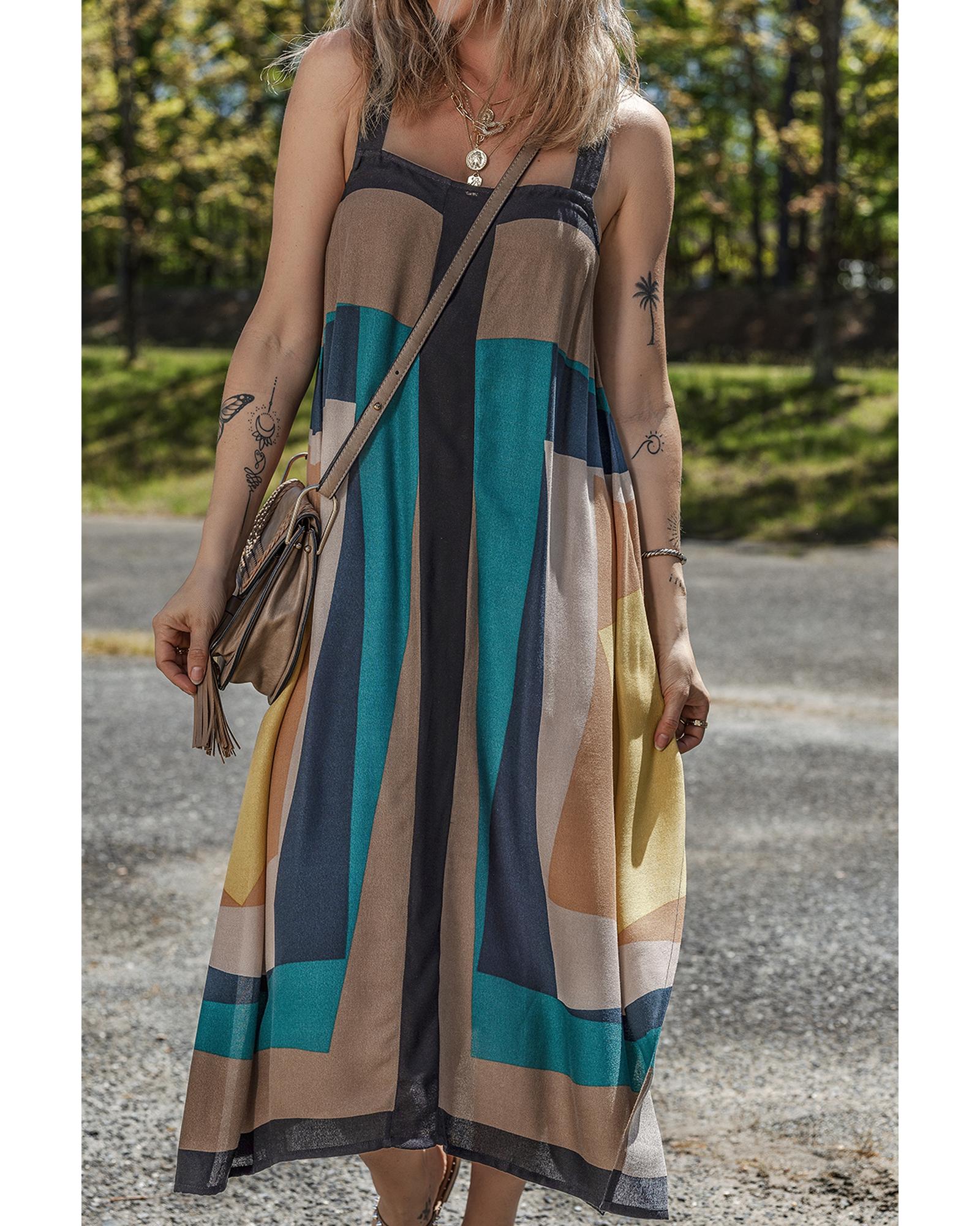 Brown Retro Geometric Printed Y Back Sleeveless Dress – S