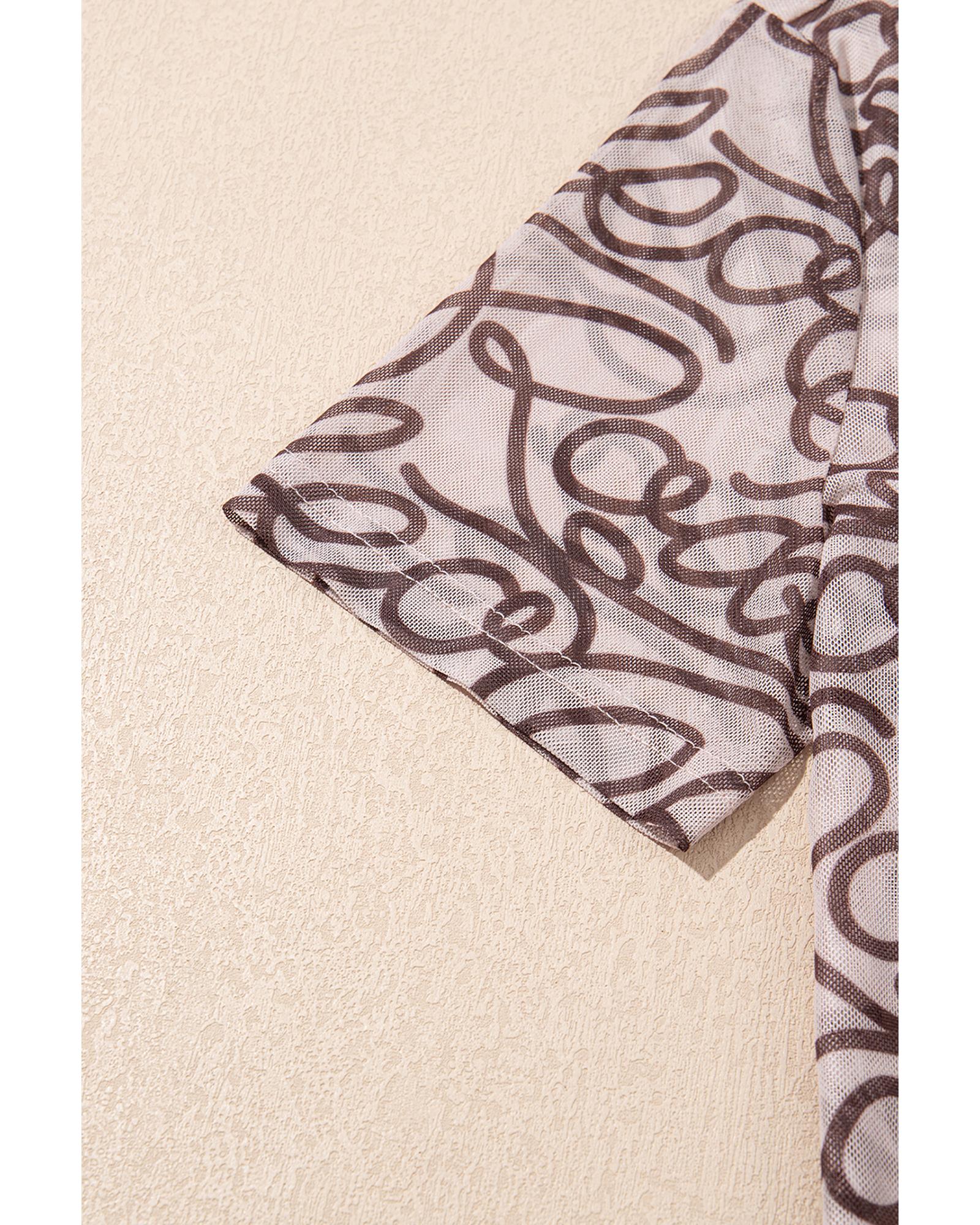 Brown Rodeo Print Round Neck Slim Fit Mesh T Shirt – L