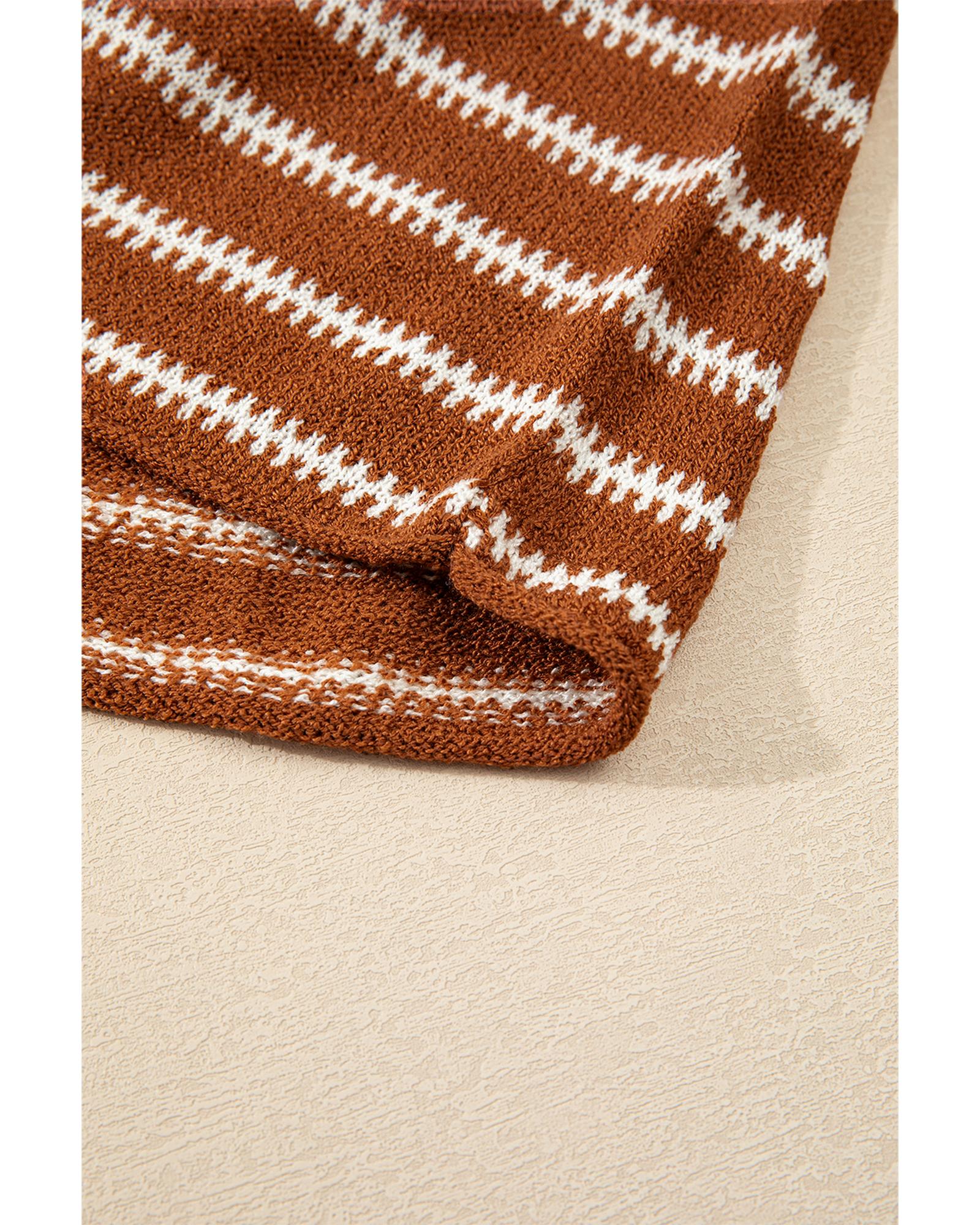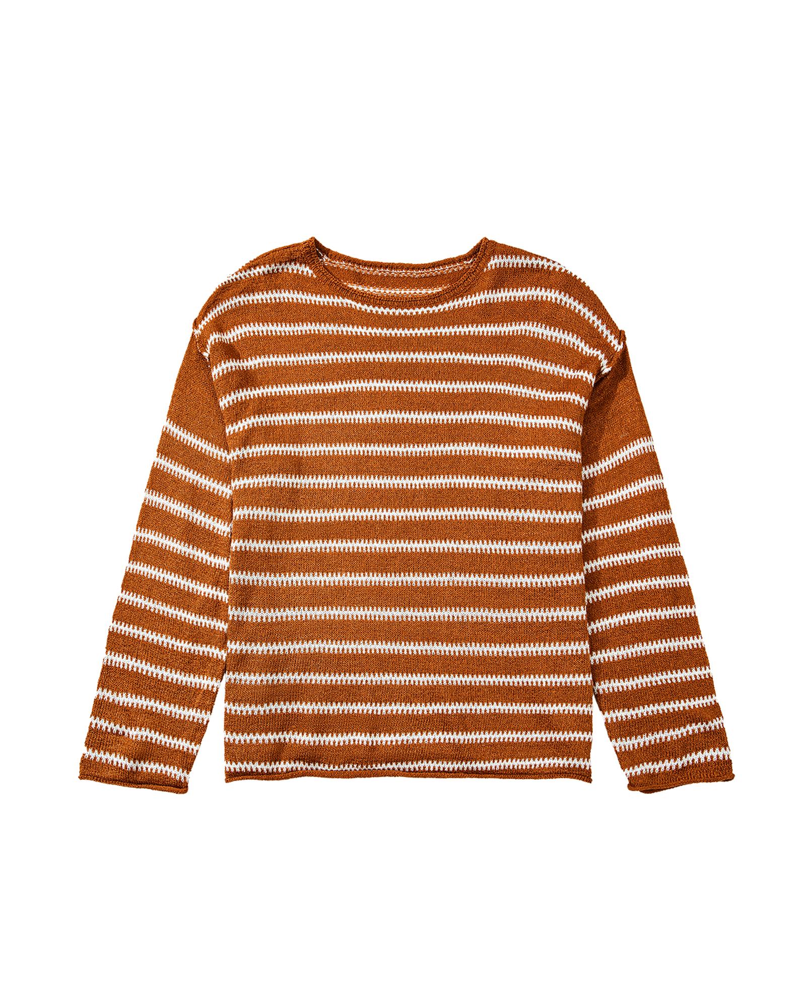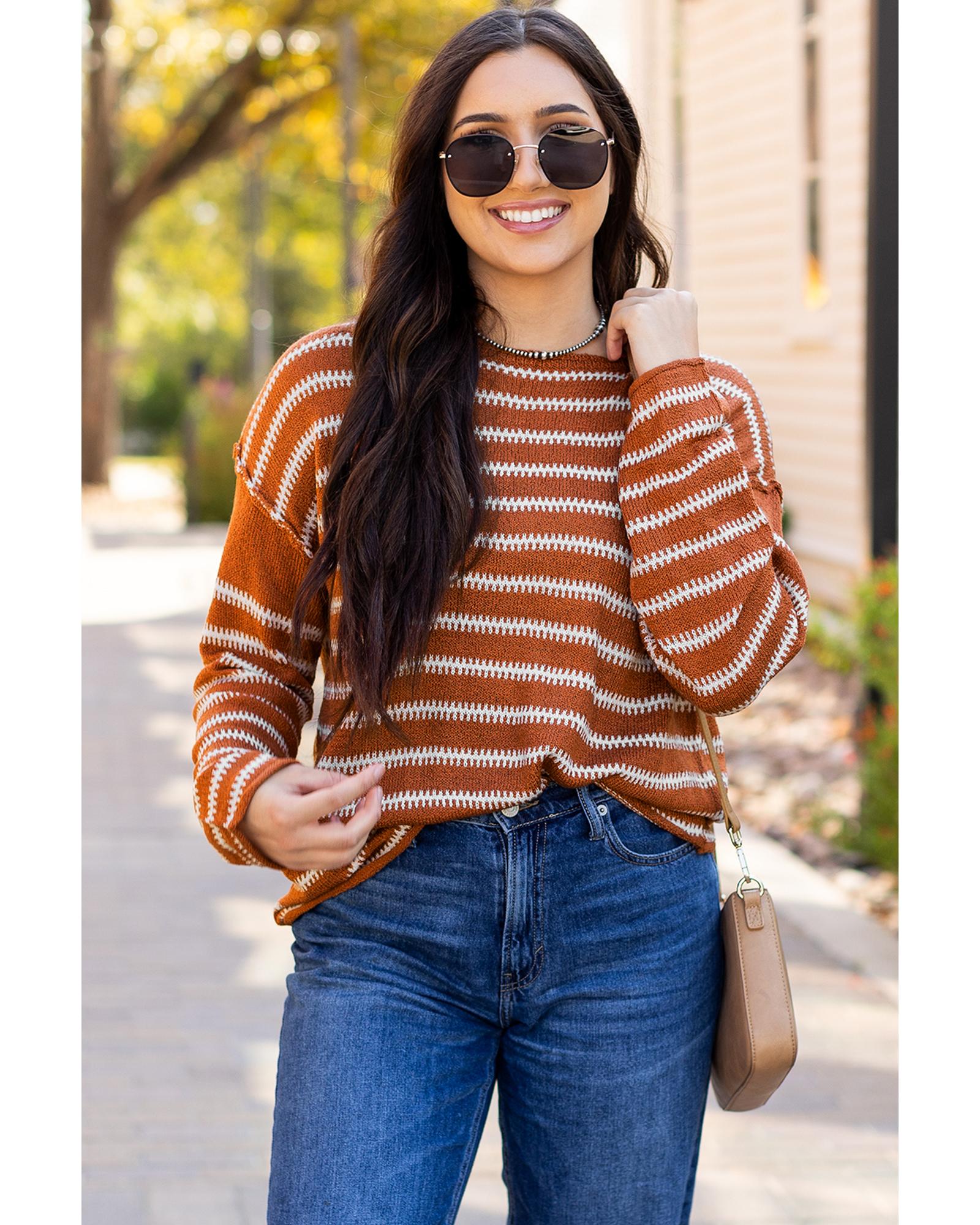 Brown Stripe Drop Shoulder Casual Sweater – XL