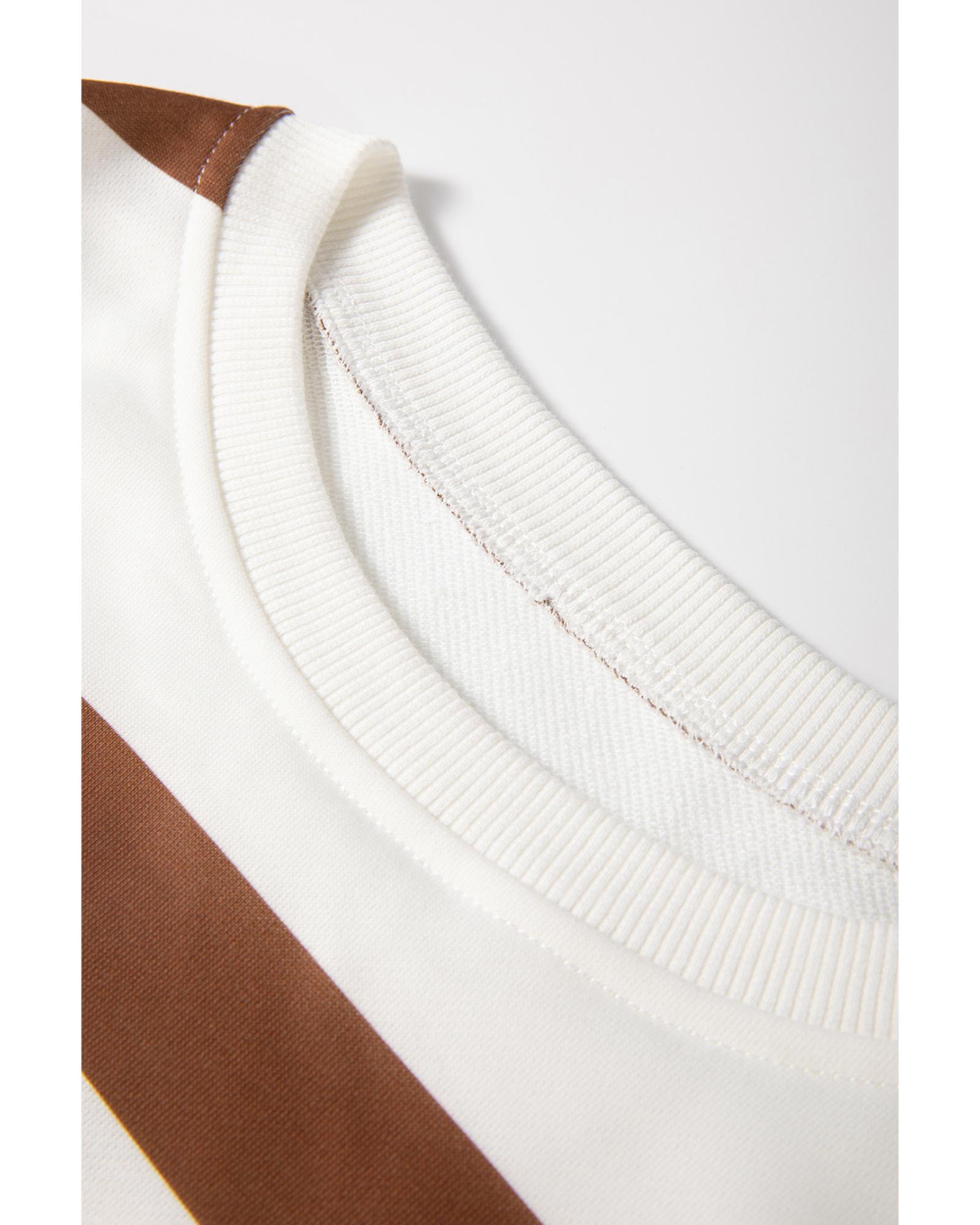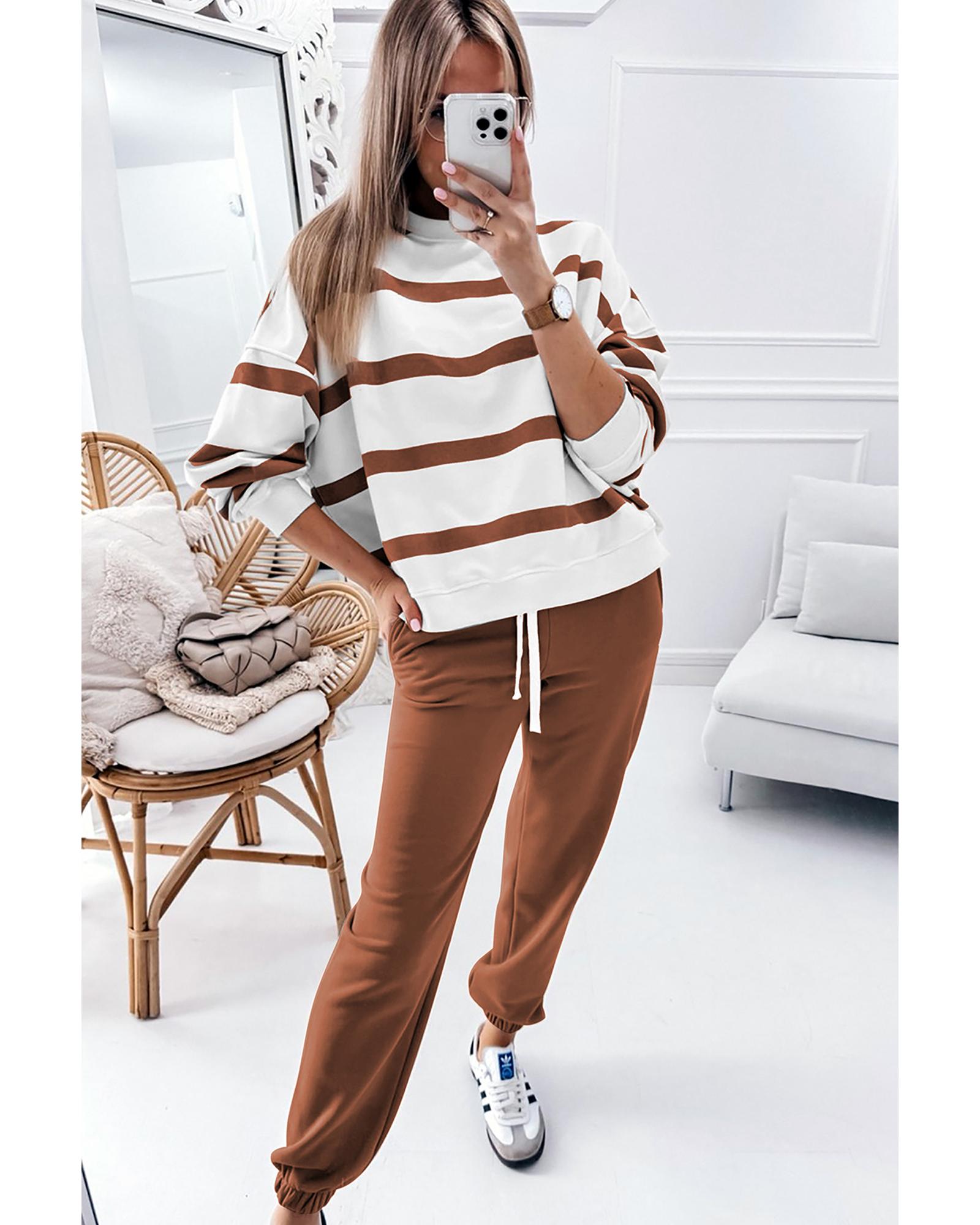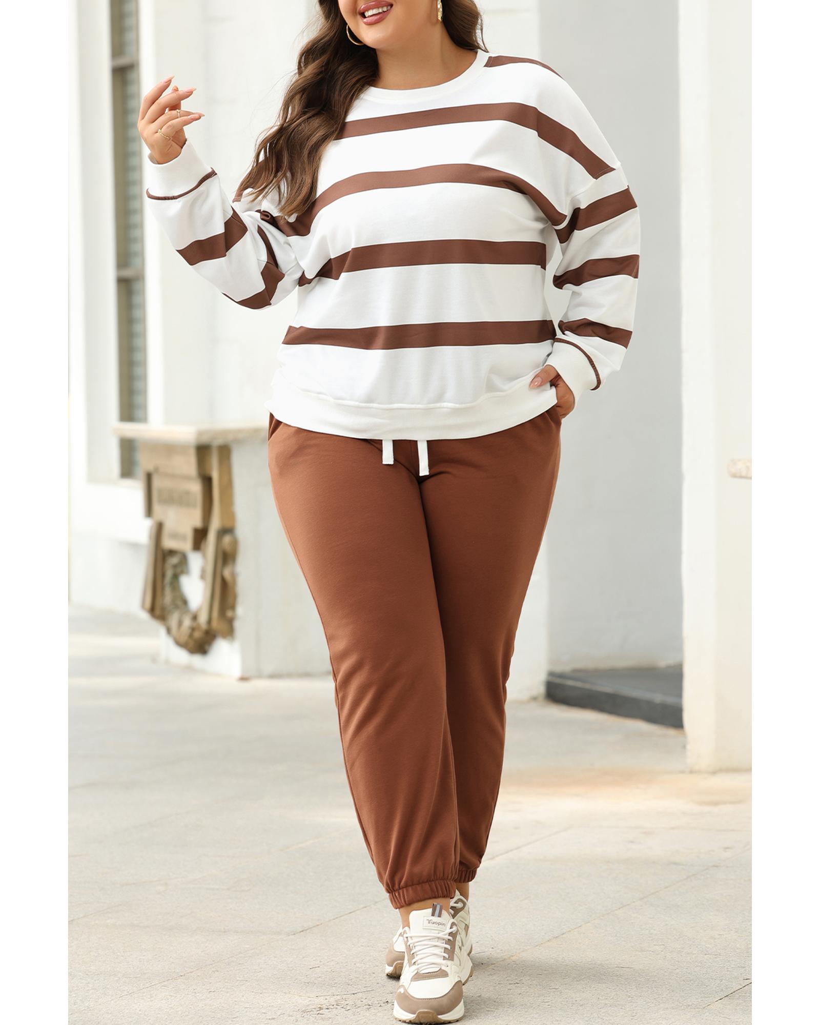 Brown Stripe Striped Drop Shoulder Pullover and Jogger Pants Set – XL