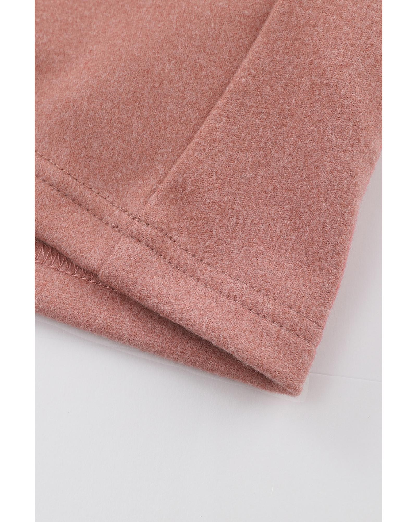 Brown Waffle Knit Patchwork Drawstring V Neck Hoodie – M